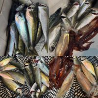 ポイントに着くと潮緩く25号スタート🛥️ 集魚灯が効き出すと魚探に反応が入り出し、反応に仕掛けを合わすとアジが …