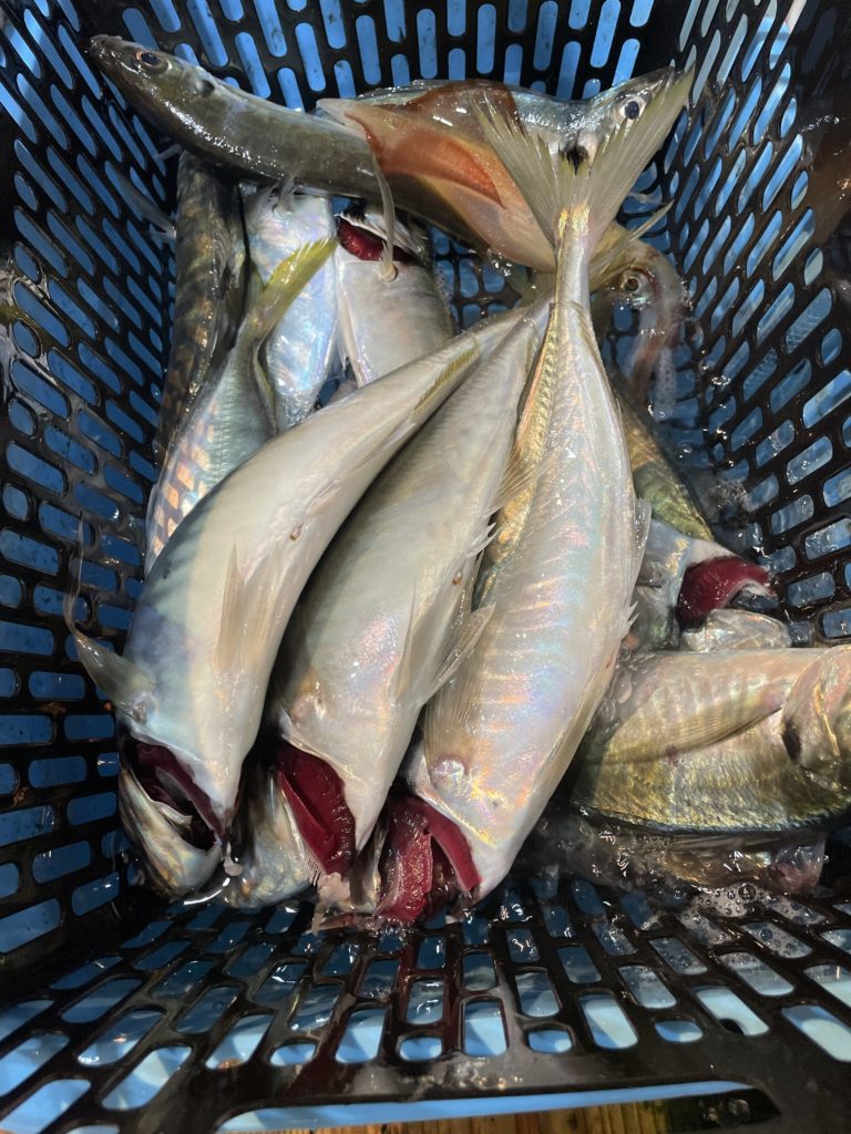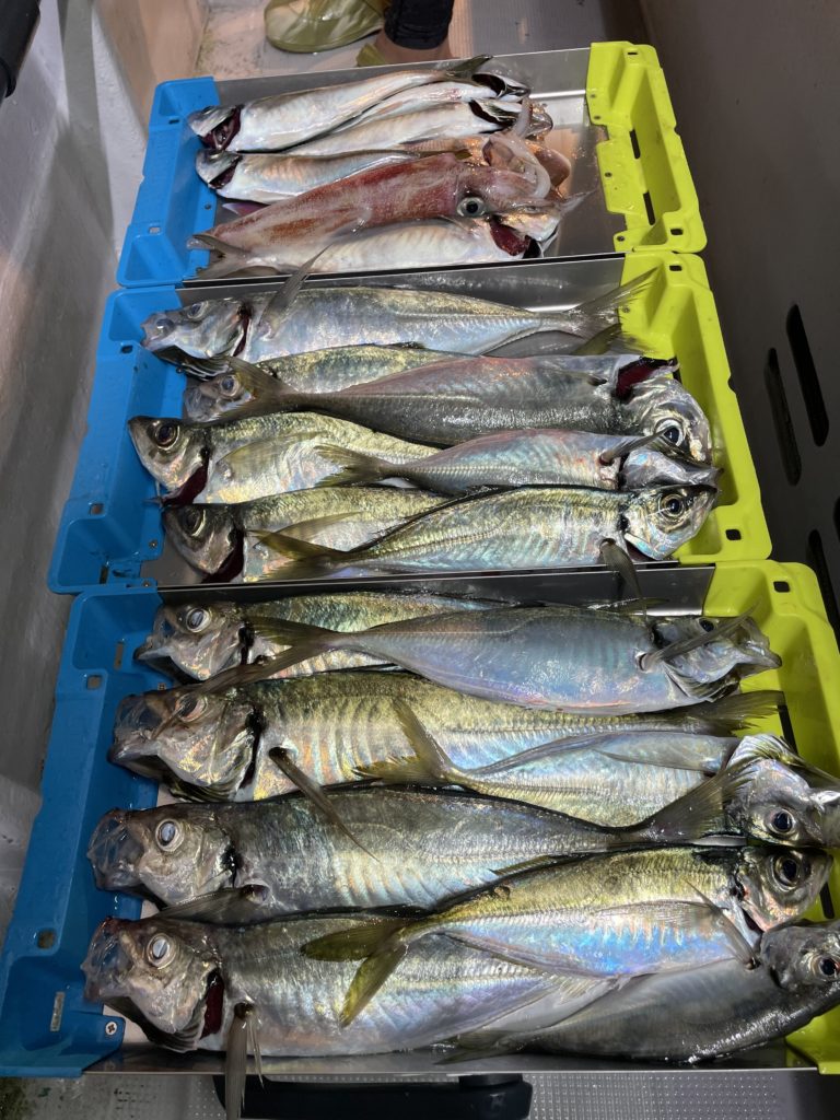 今日もポイントに着いてすぐにバチコンでアジがバタバタとアタリだし、いいスタートが切れました👌