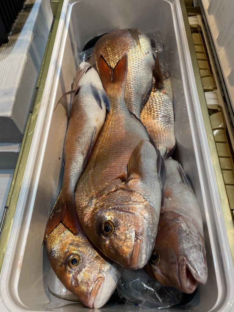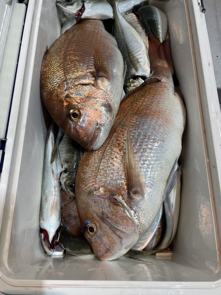 今日は真鯛の活性が良く、多い人で8枚と真鯛でクーラー🈵になりました👏
