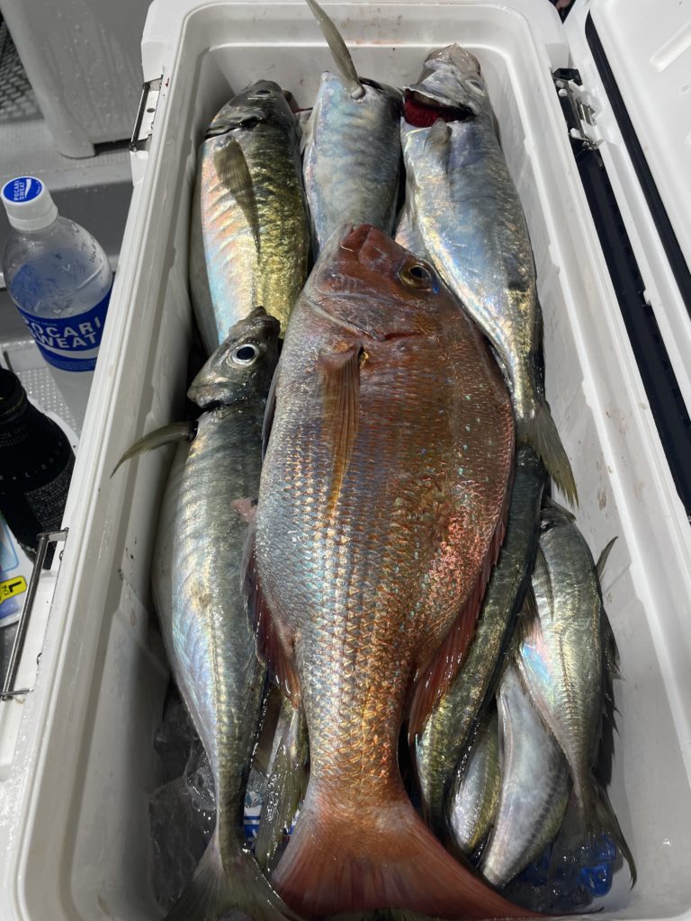 アジの反応が入り出すとバチコンに切換え、サイズはバラバラでしたが最後まで止まる事無く、みんなでワイワイと楽しんで頂けました!