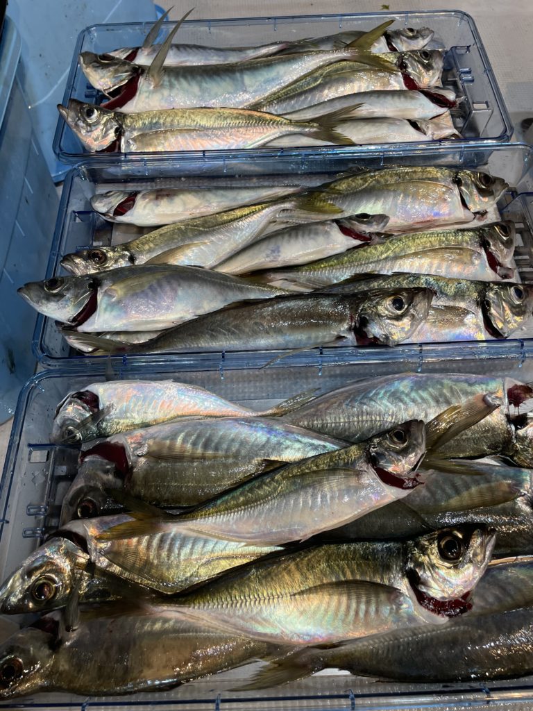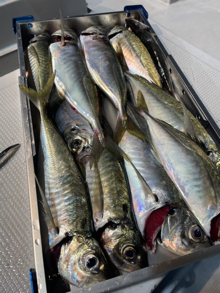 ケンサキイカがポツポツ土アタリ出しましたが、ボトムにアジの反応が入り出すと皆さんにバチコンに切換え、それから入れ食いタイム〜✨