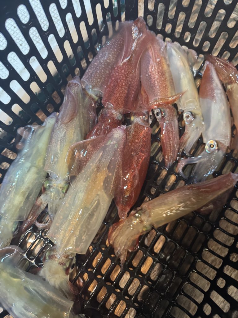 明るい時間帯にバチコンで良型サイズのアジをゲット🐟集魚灯が効き出したタイミングでケンサキイカがバタバタと🦑🦑