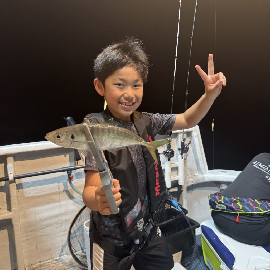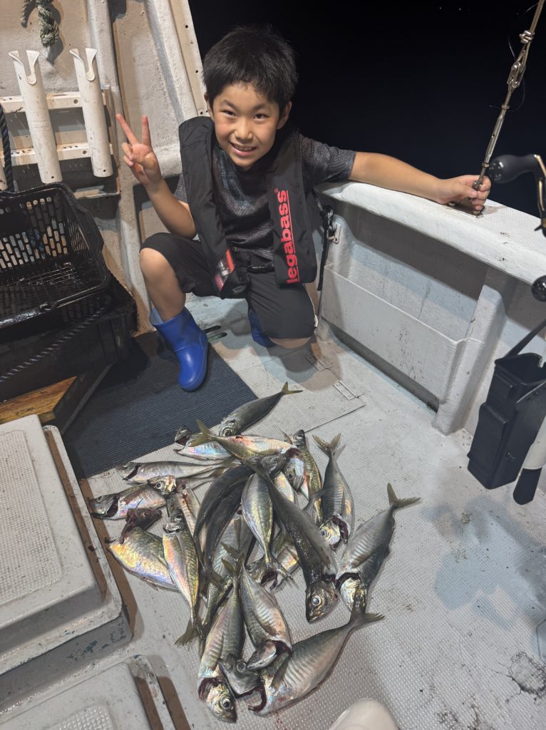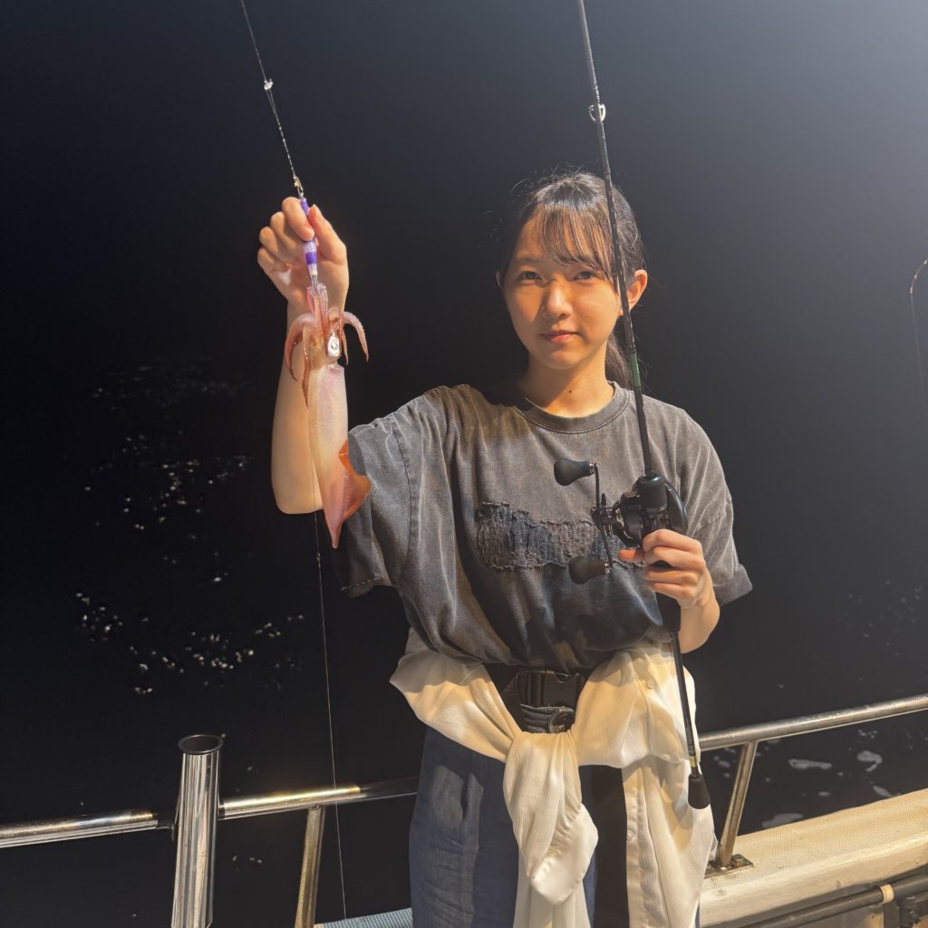 集魚灯を点けてしばらくすると、浅棚で勢いよく連発ヒット🦑🦑 棚浅く前半の地合いでワイワイと良いスタートがきれました😁