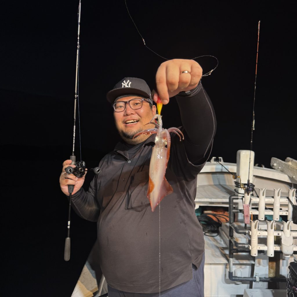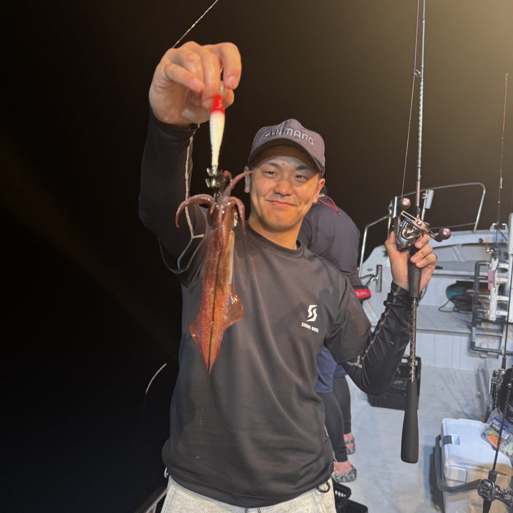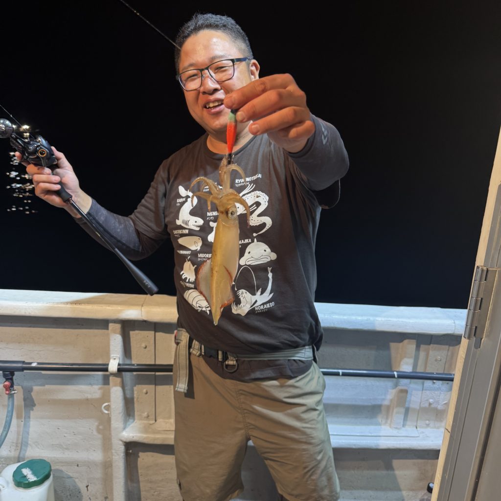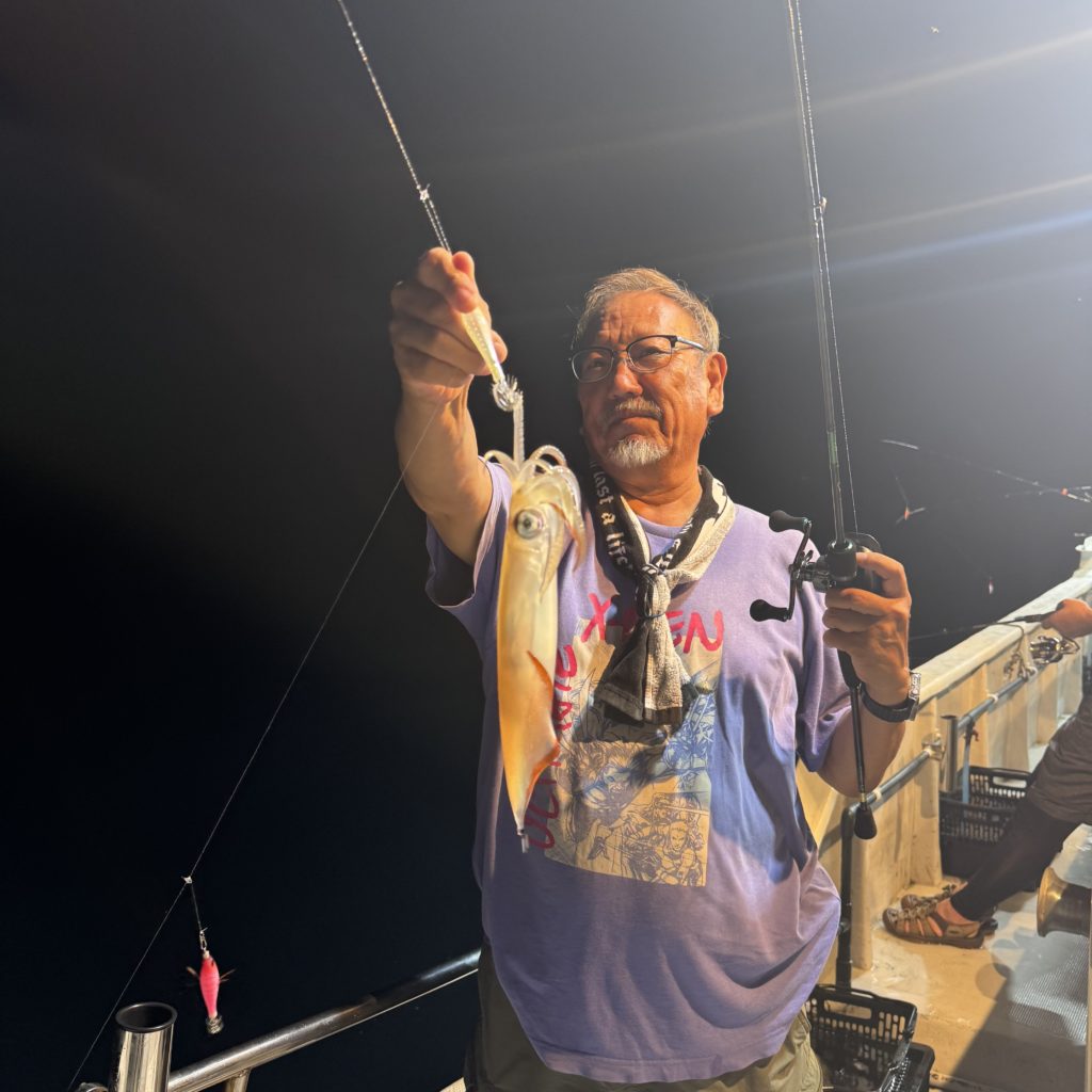いつもよりスロースタートでしたが、集魚灯が効き出すと浅棚でポツポツとヒット🦑