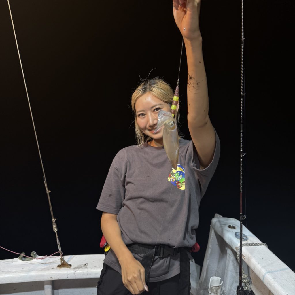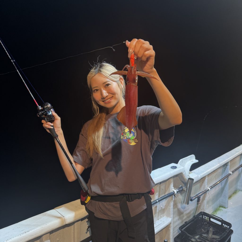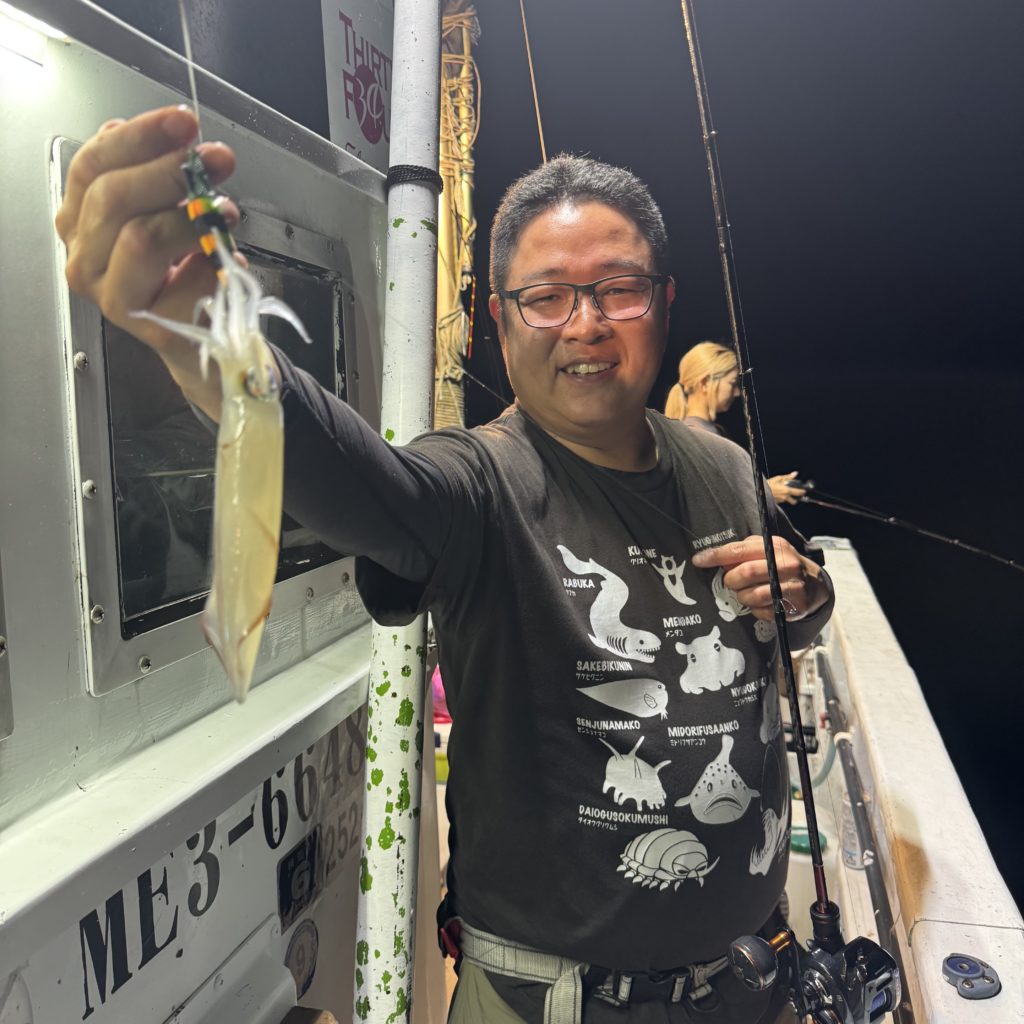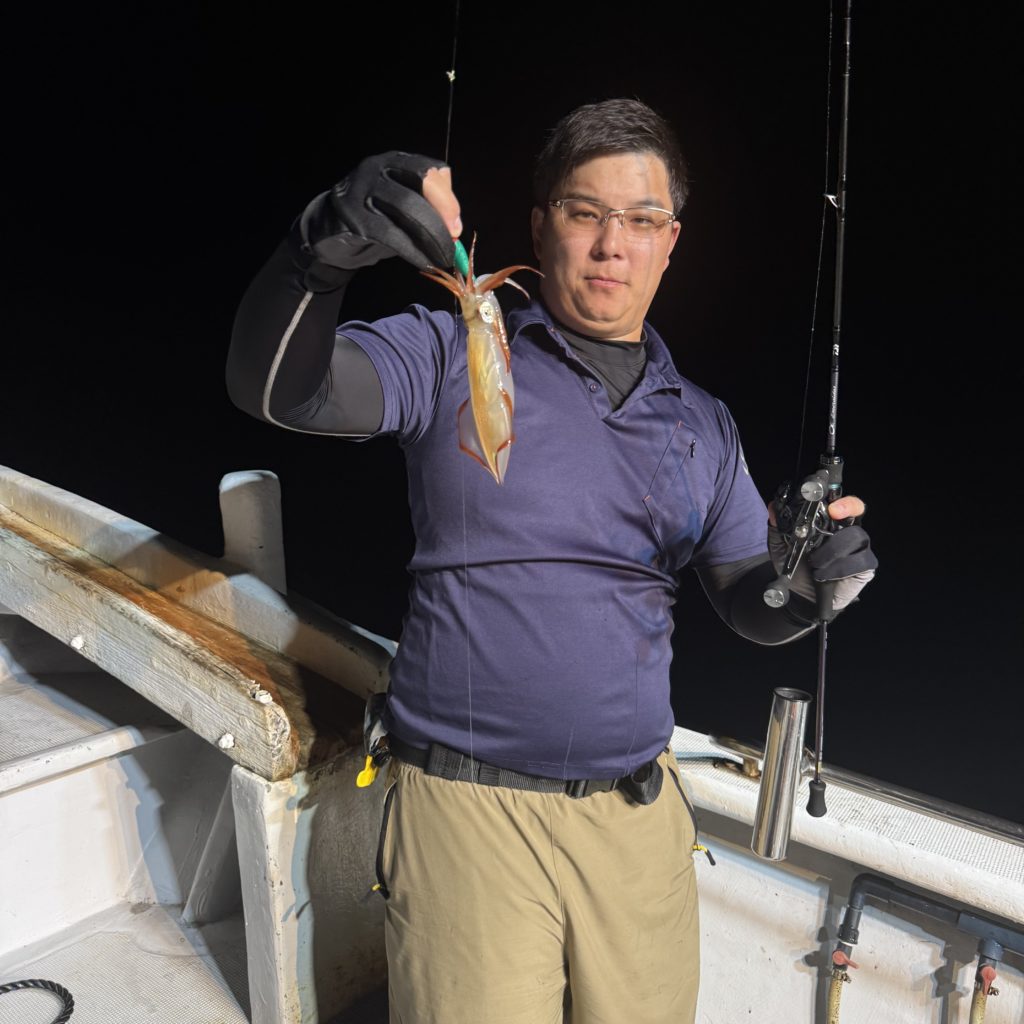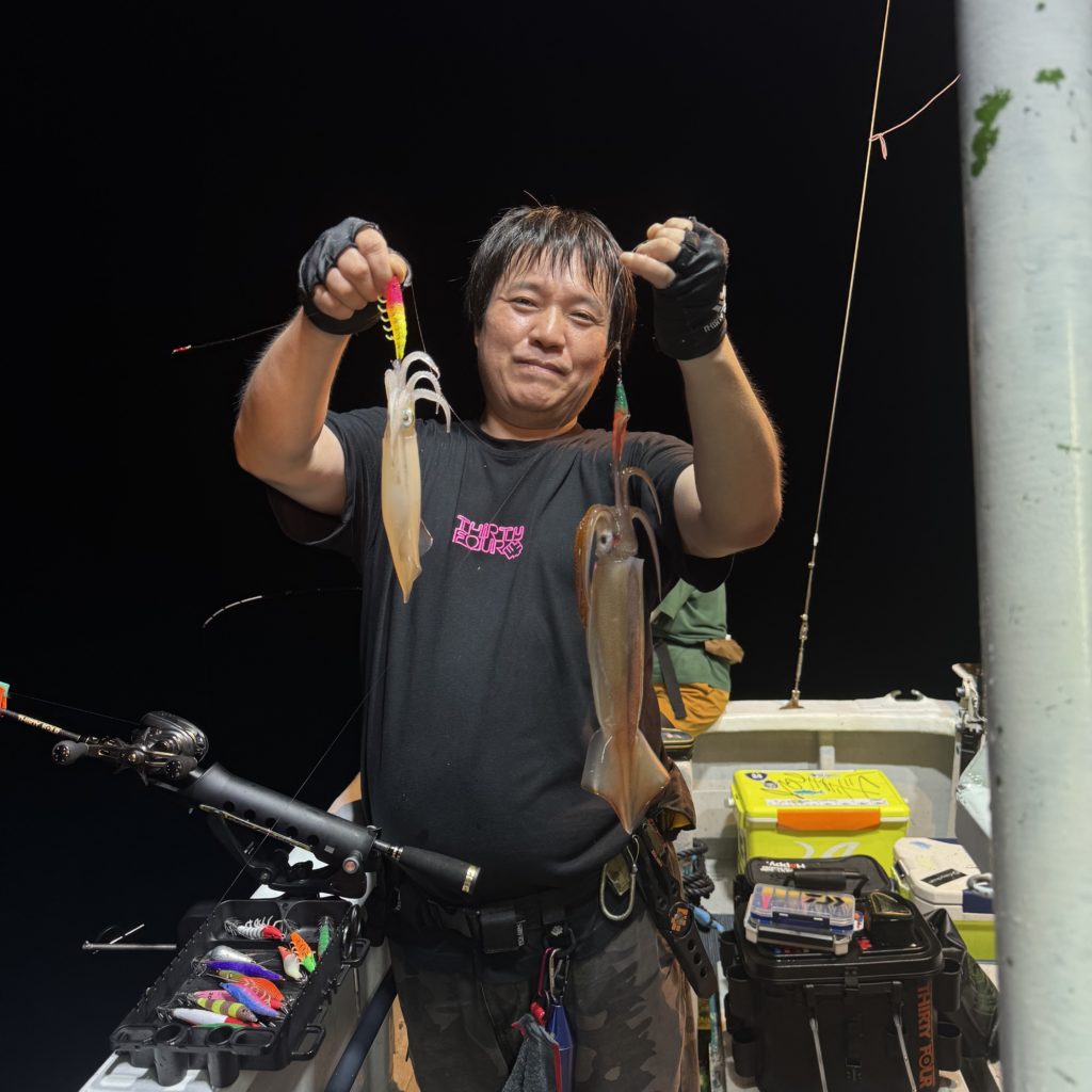 いつもよりスロースタートでしたが、集魚灯が効き出すと浅棚でポツポツとヒット🦑