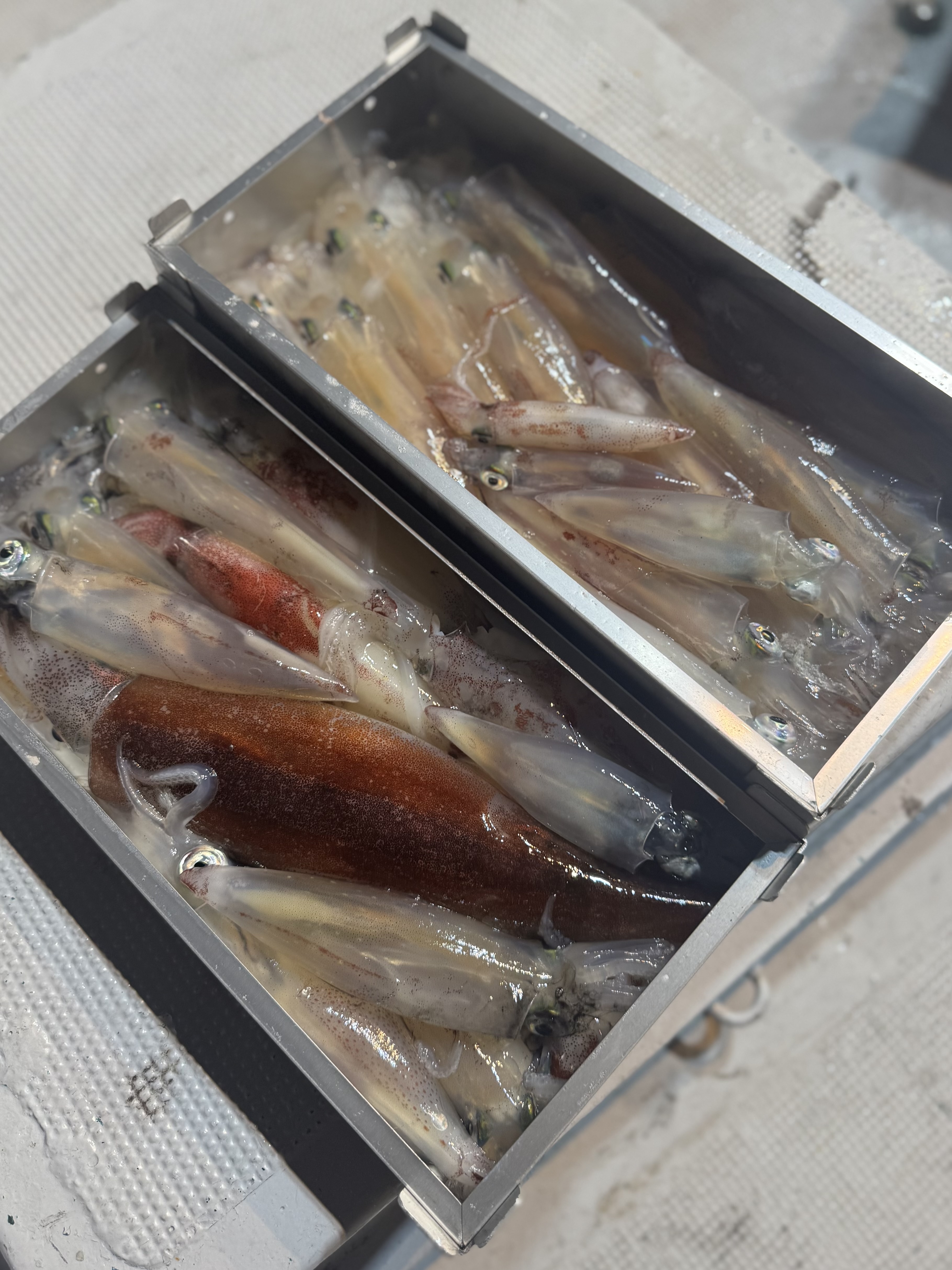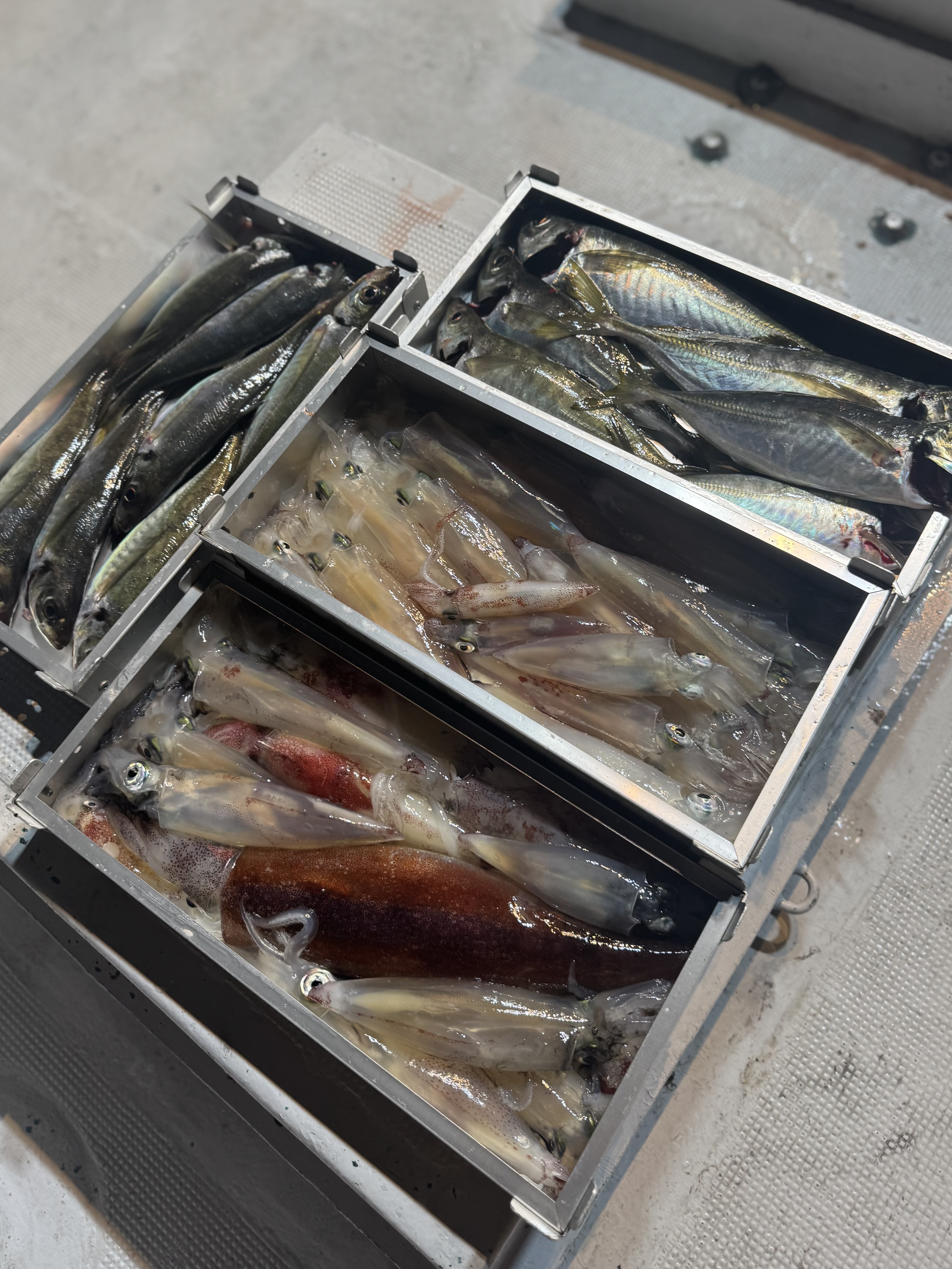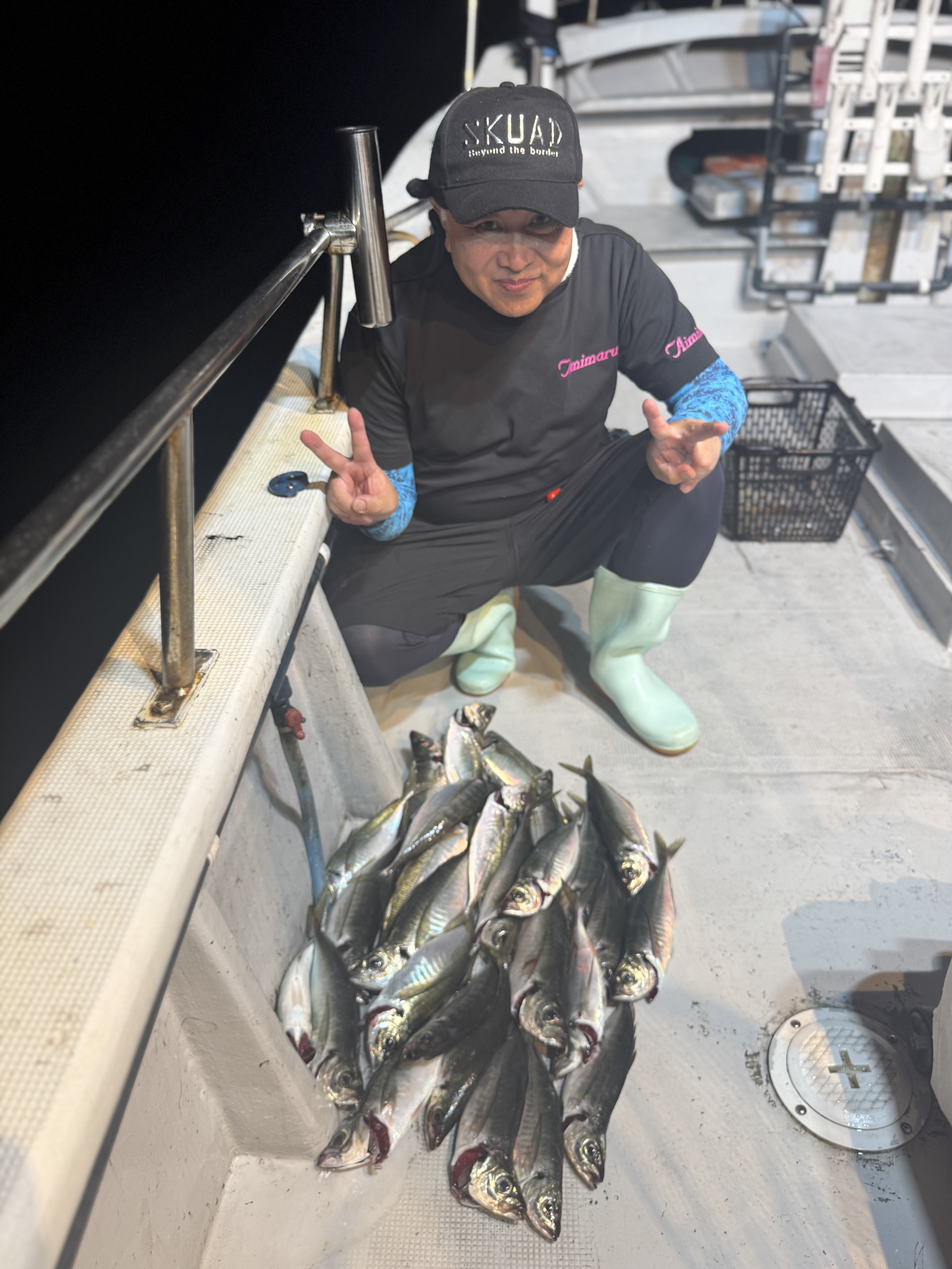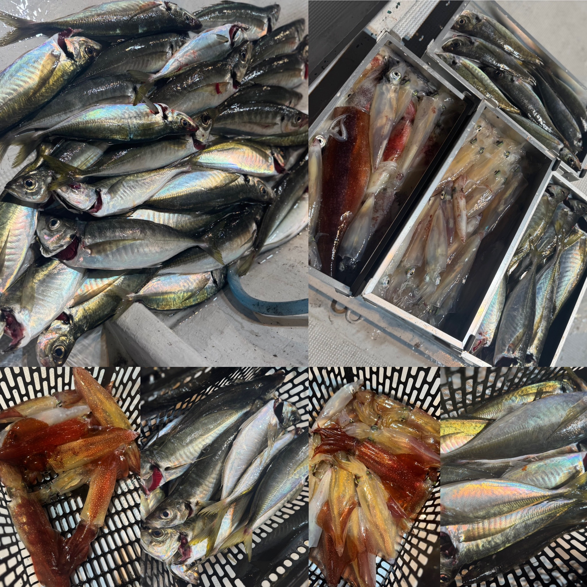 ポイントに着いて一投目からアジがバタバタとヒット🙌 しかし、地合いも一瞬で終わり集魚灯が効き出した19時からイカメタルに切り替えると即ヒット❕