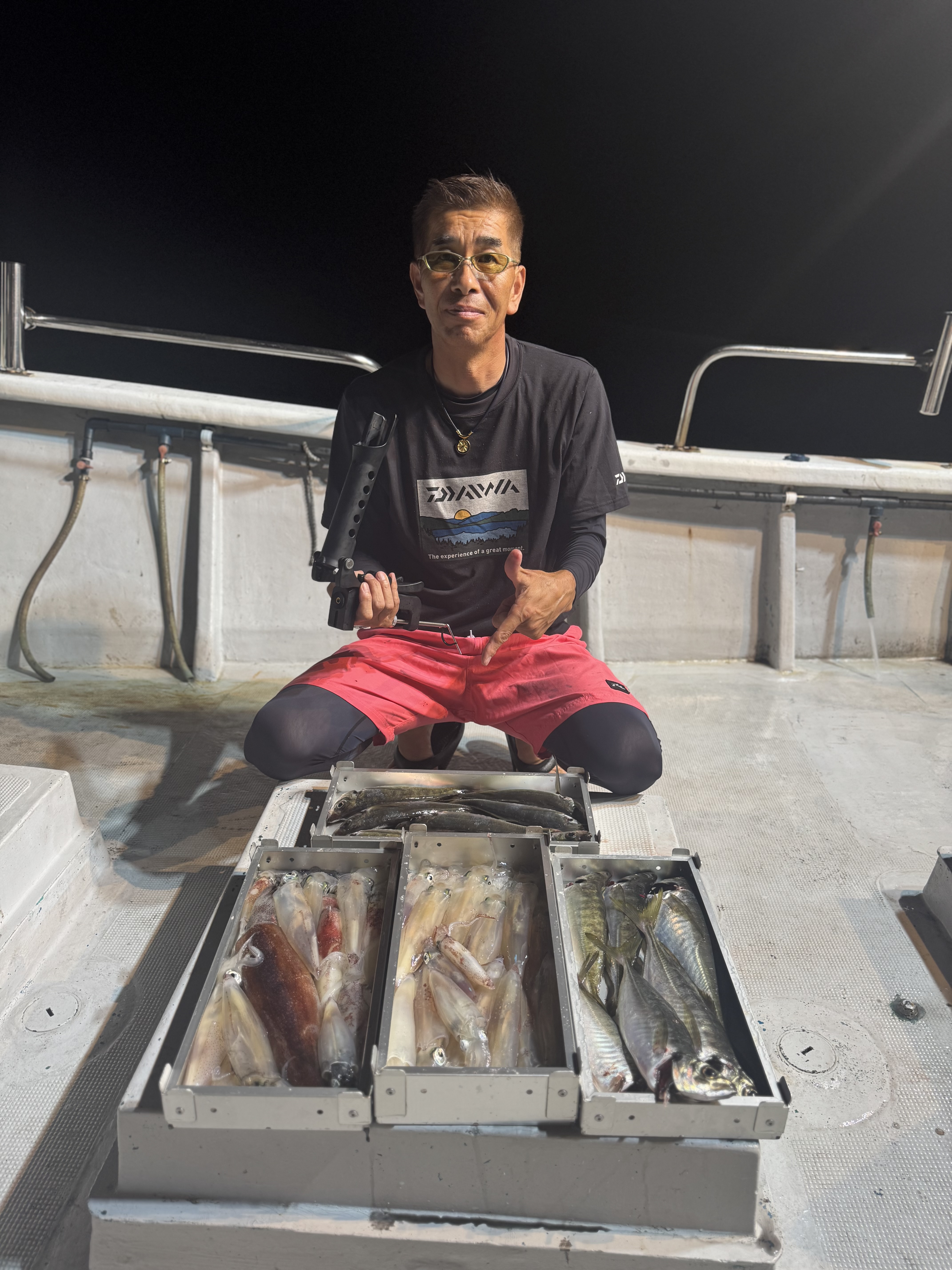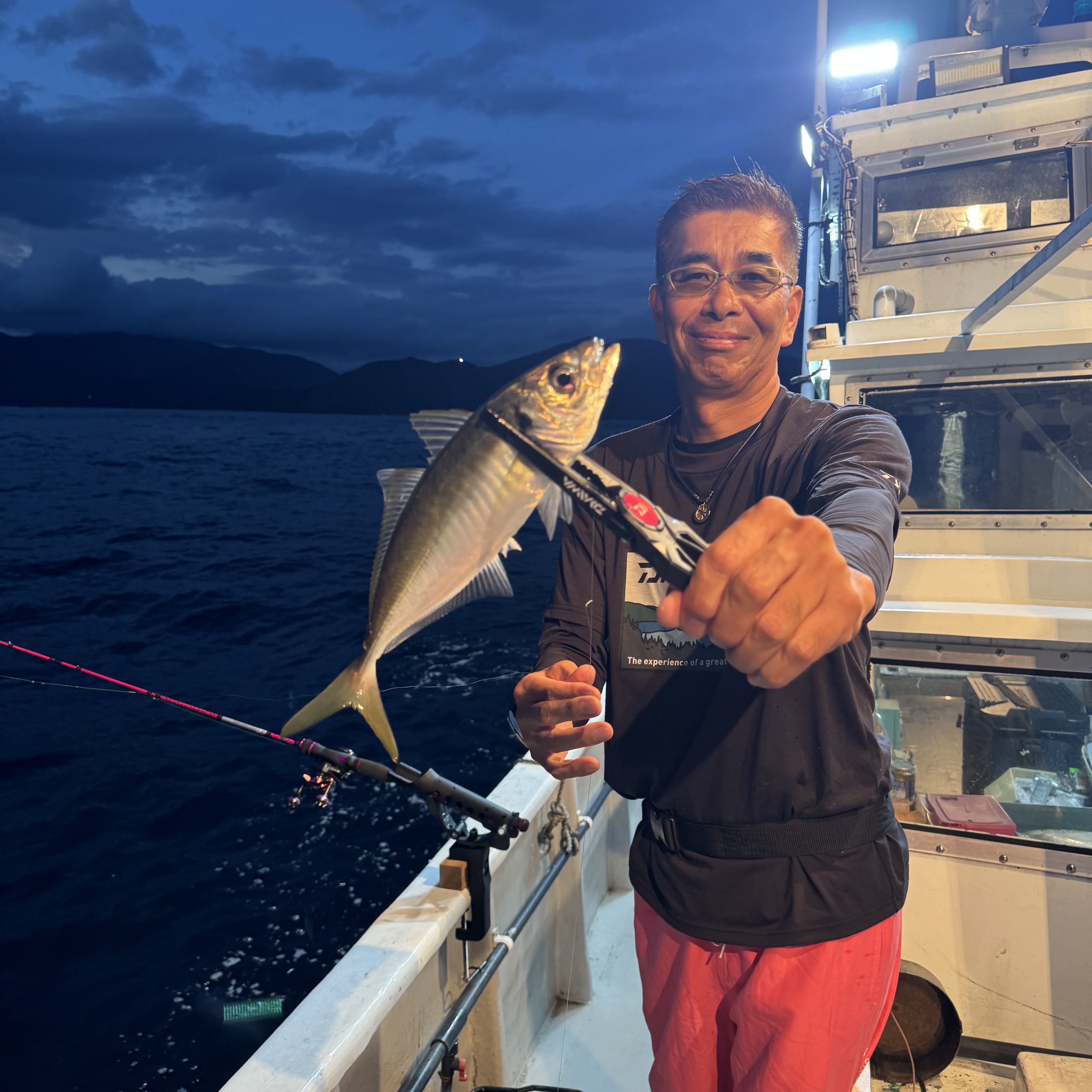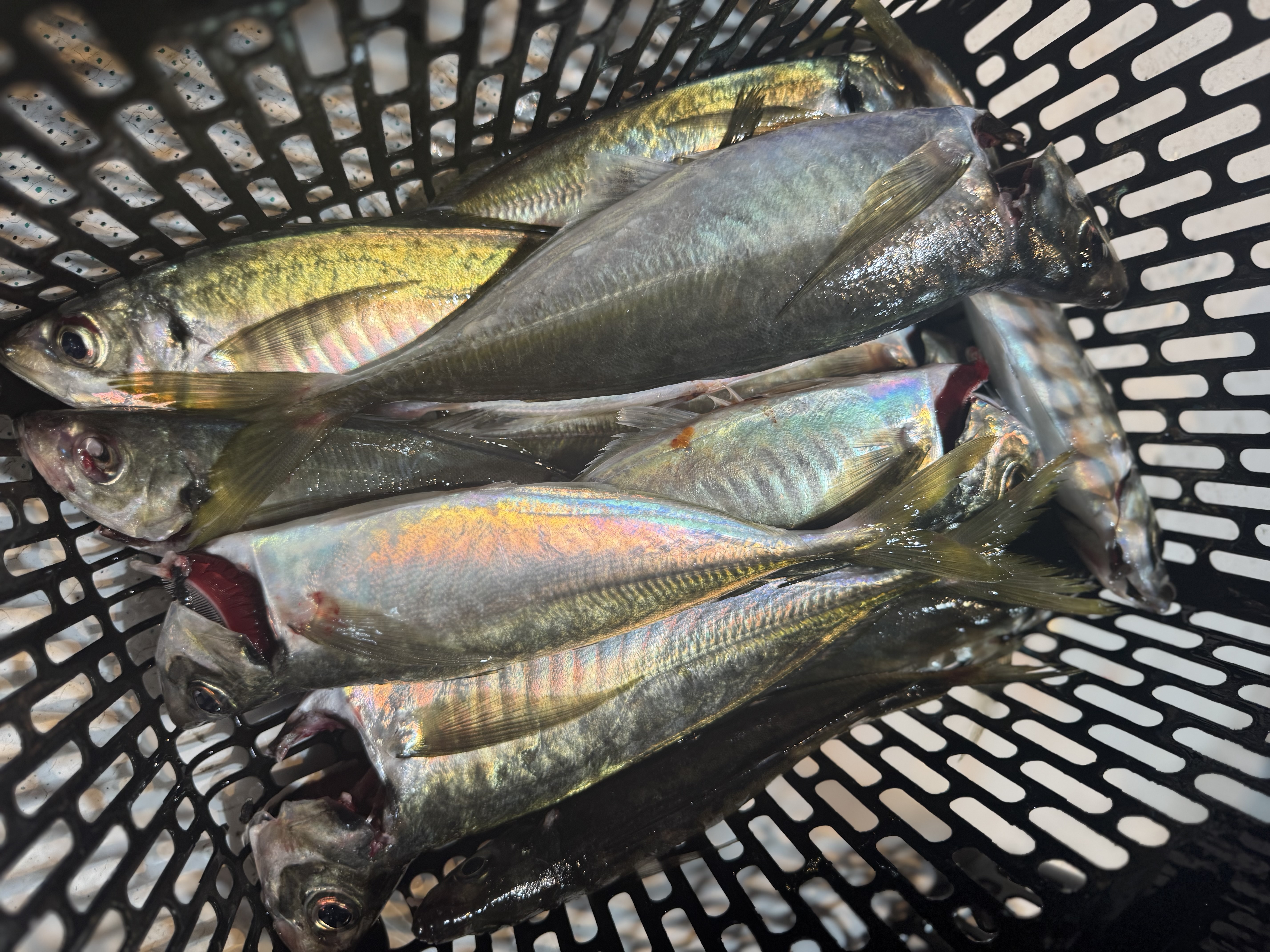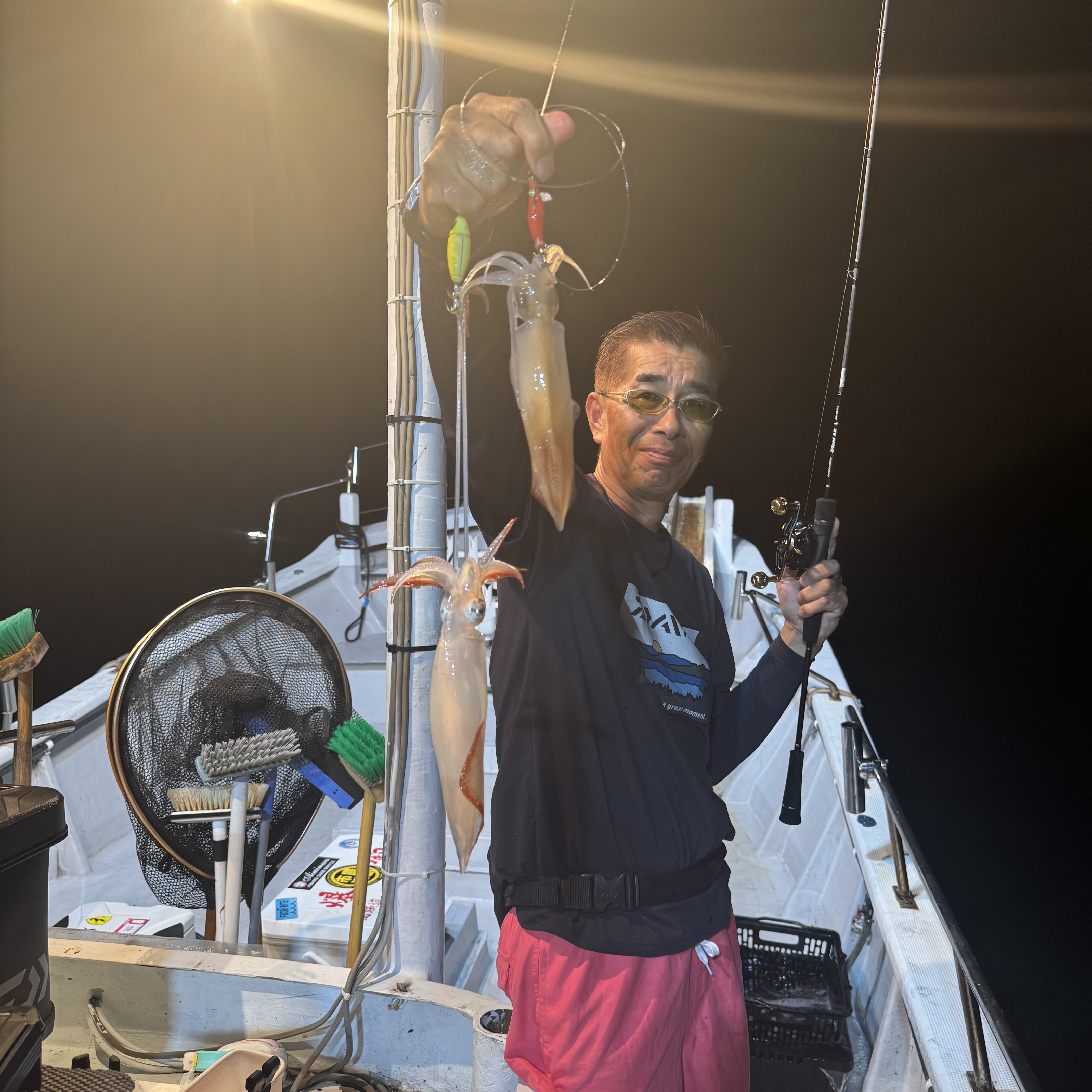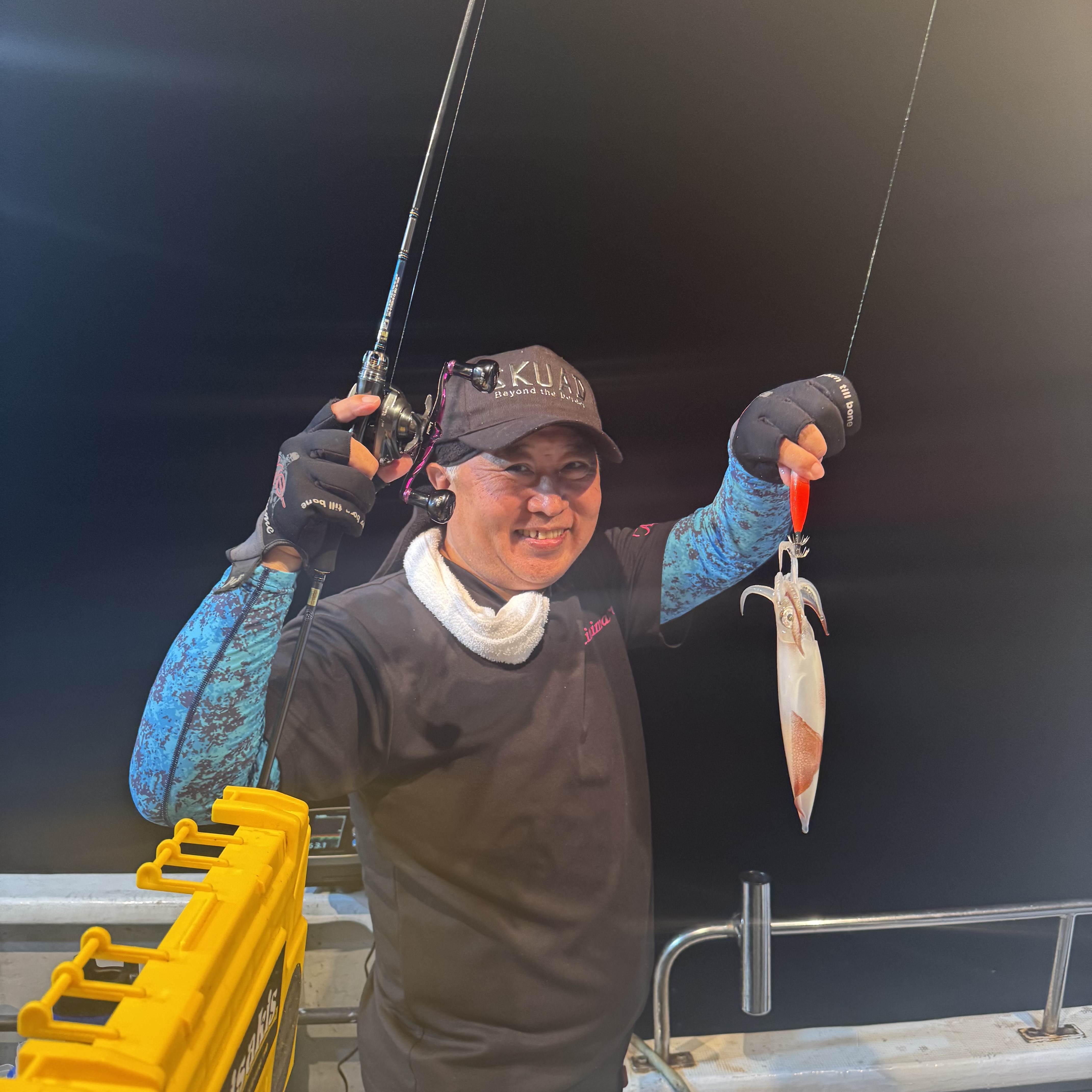 ポイントに着いて一投目からアジがバタバタとヒット🙌 しかし、地合いも一瞬で終わり集魚灯が効き出した19時からイカメタルに切り替えると即ヒット❕