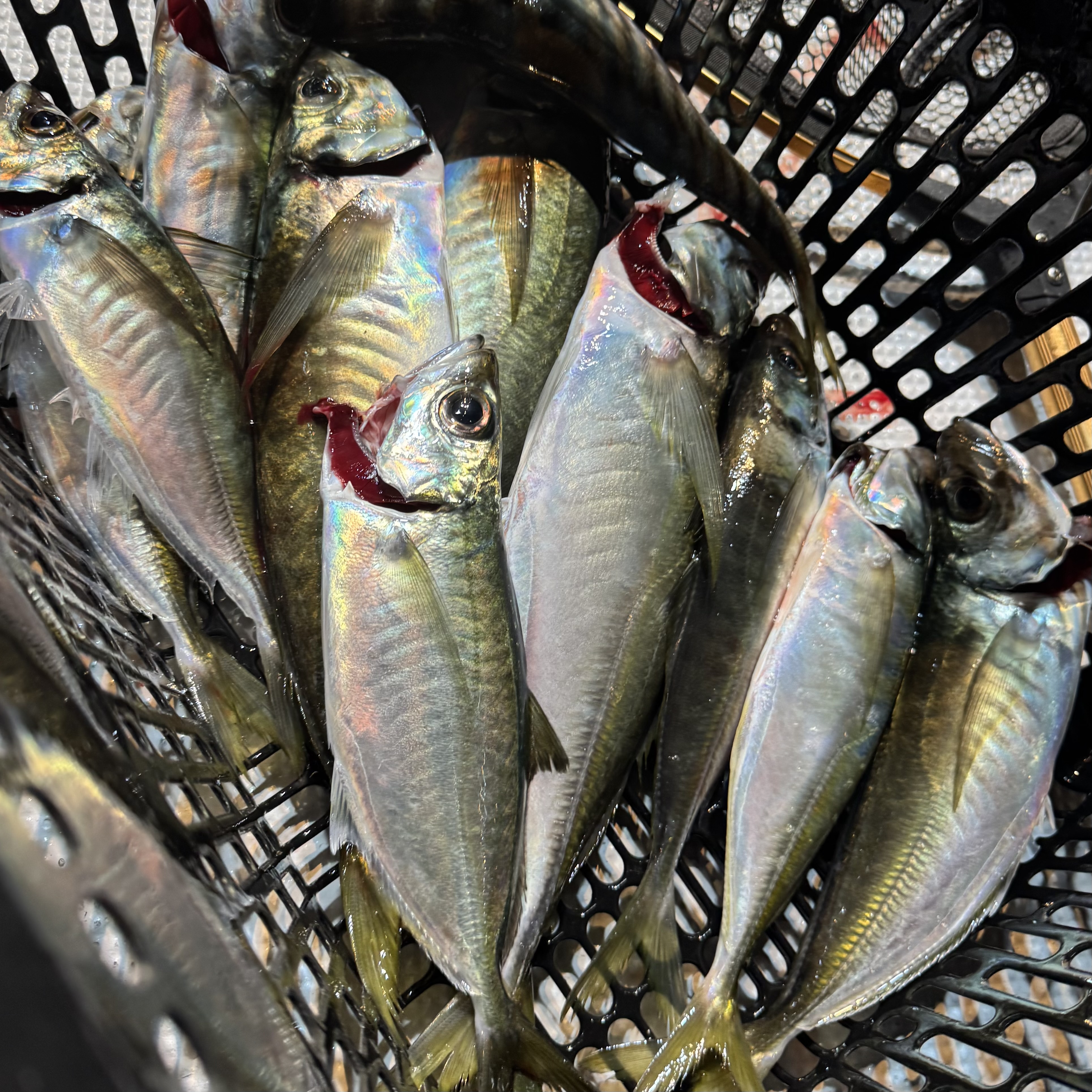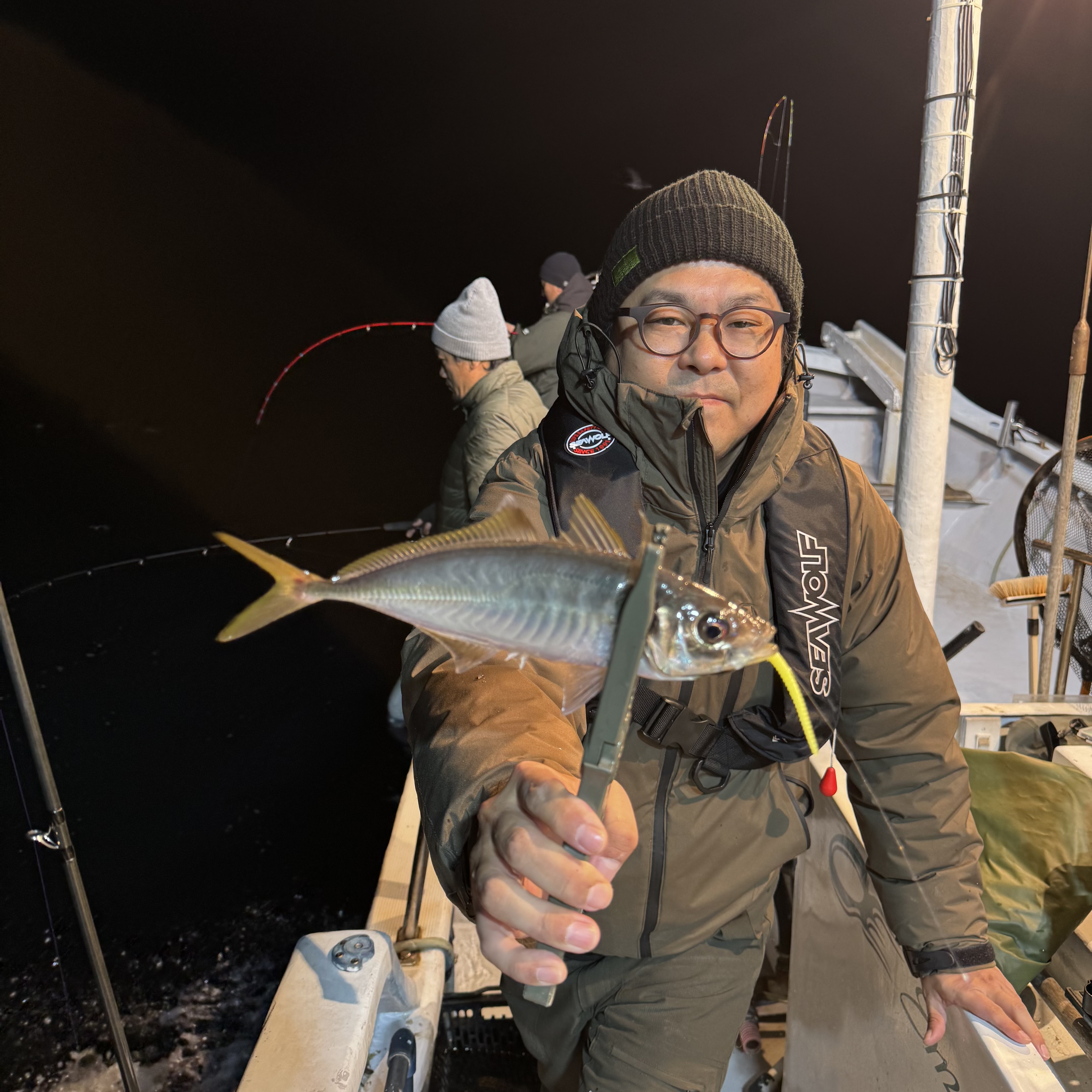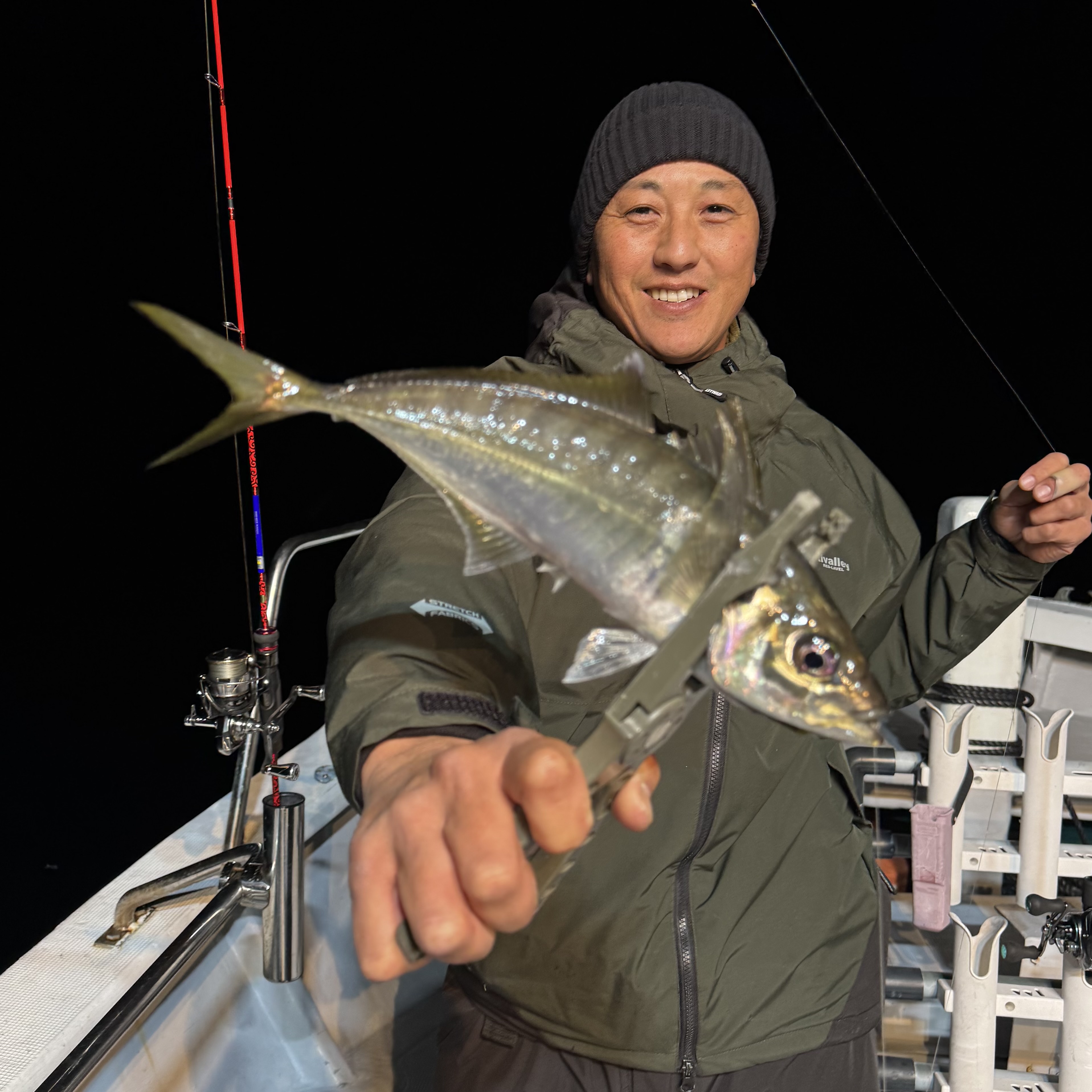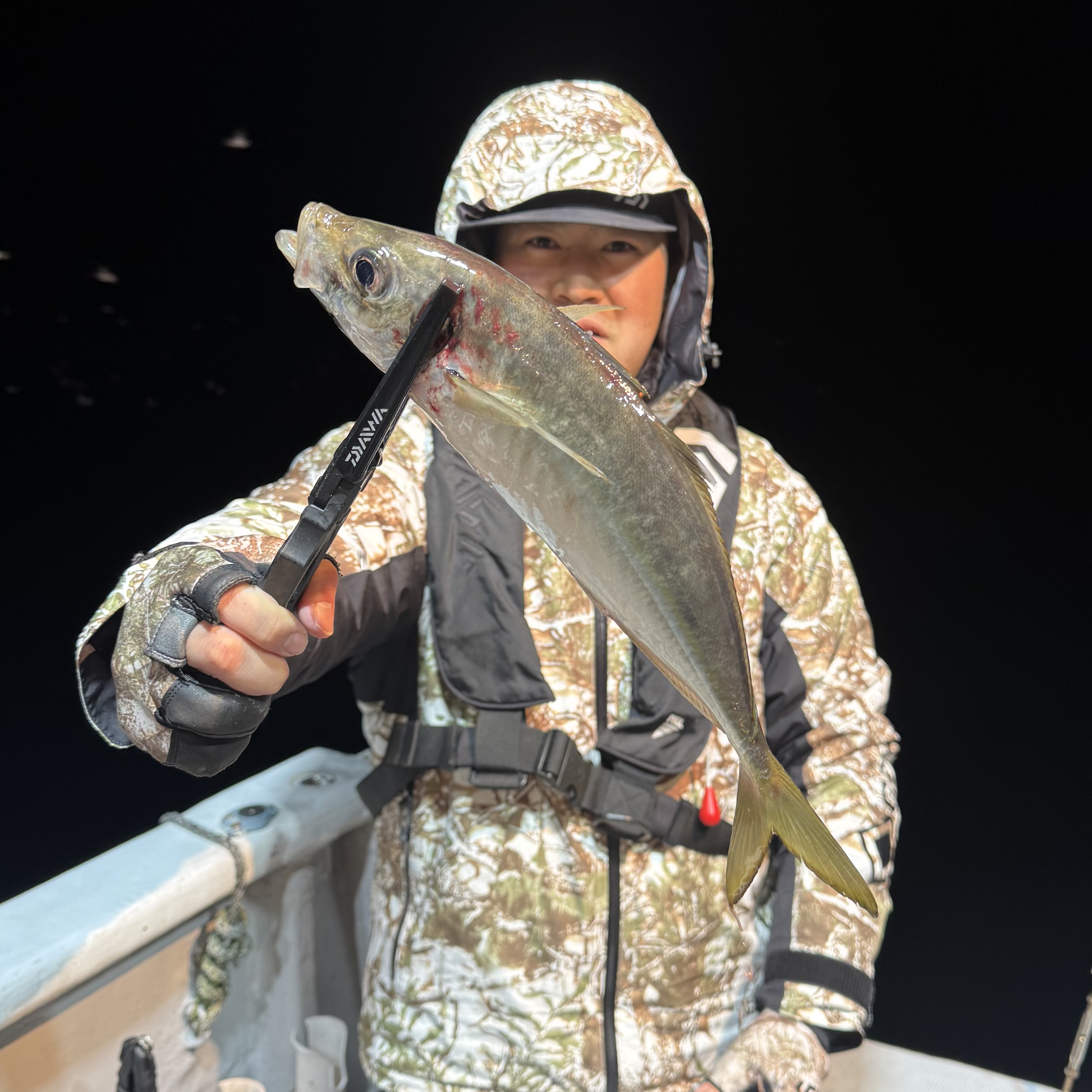 前半はバチコンからスタート🐟🎶集魚灯を点けてしばらくすると、中層でメガアジヒット😆