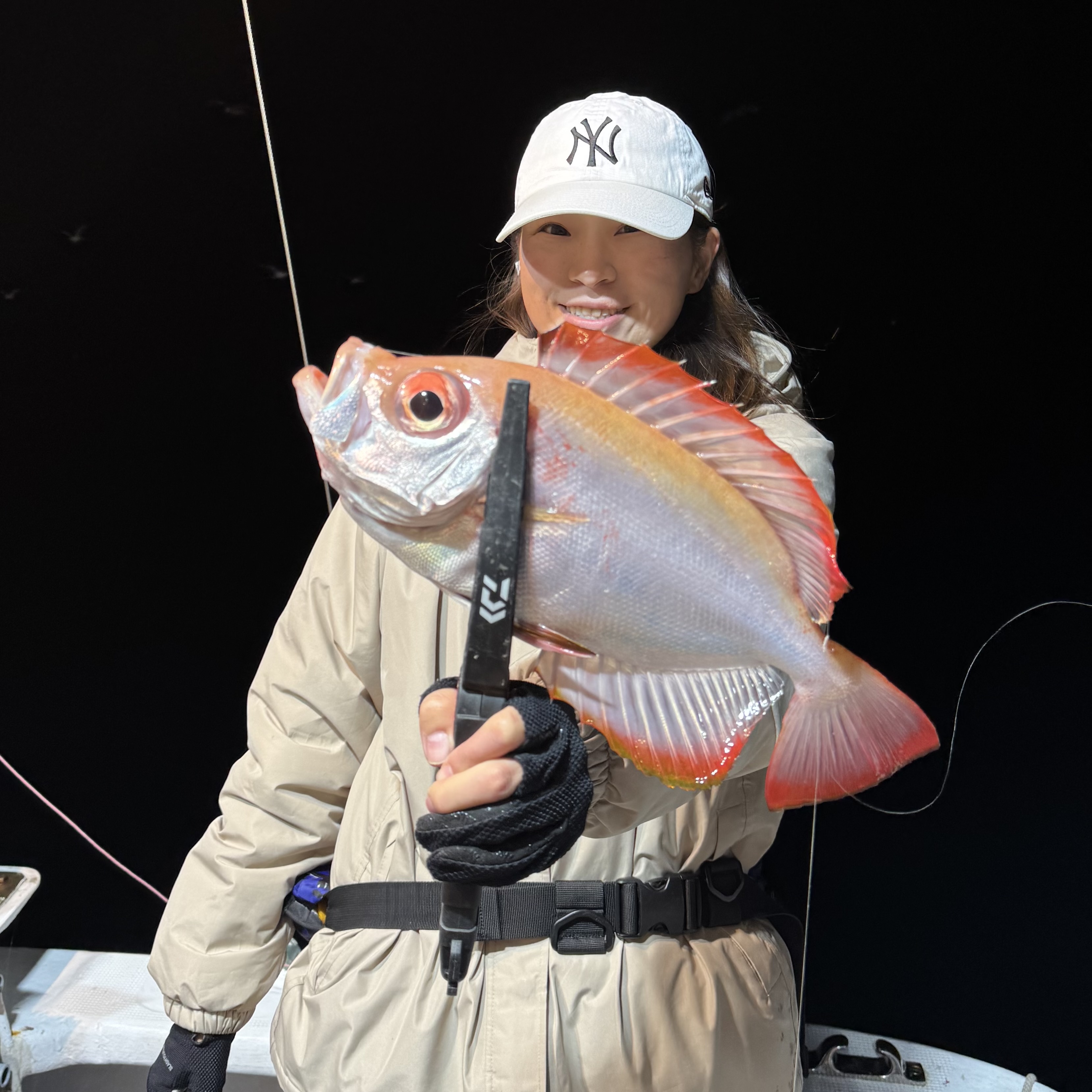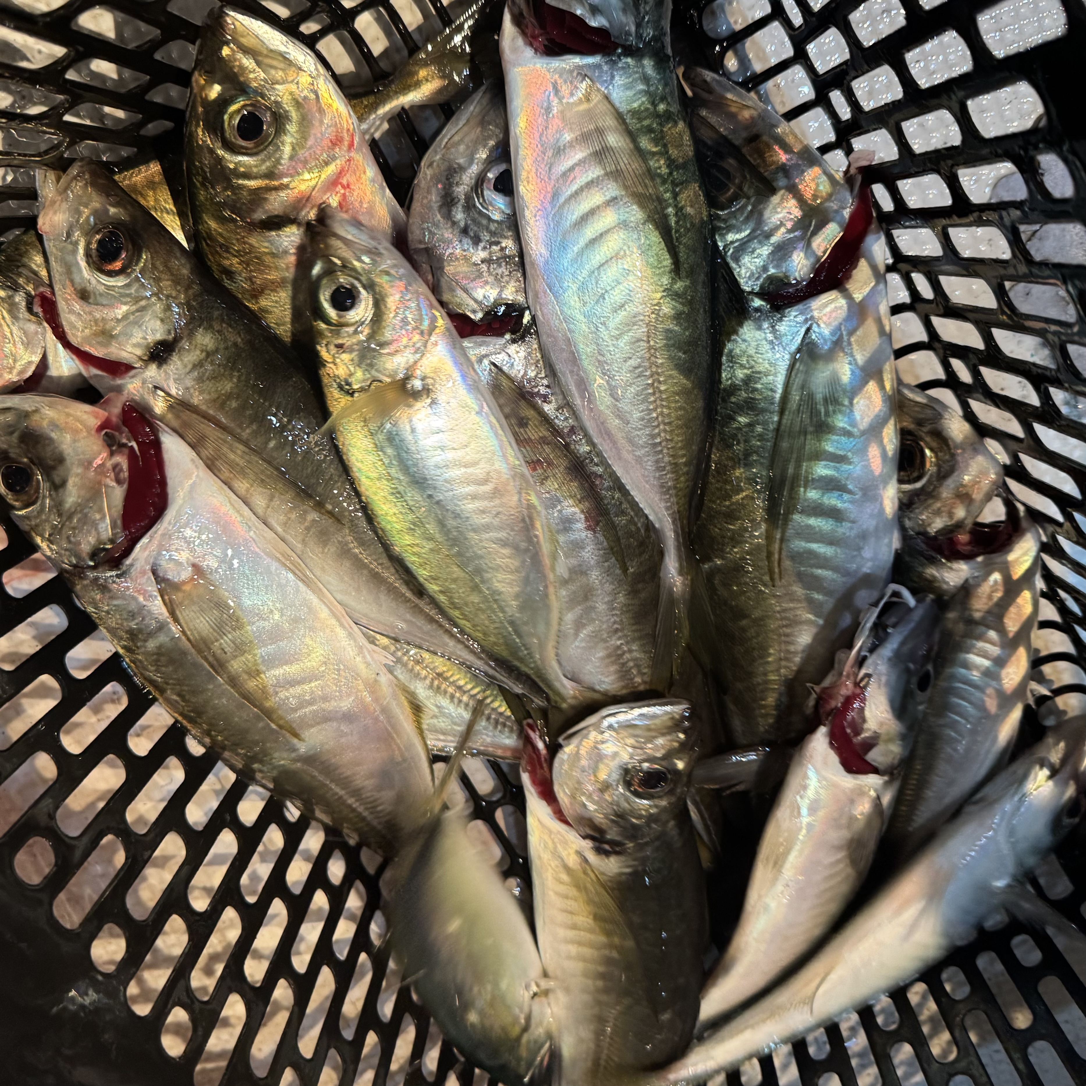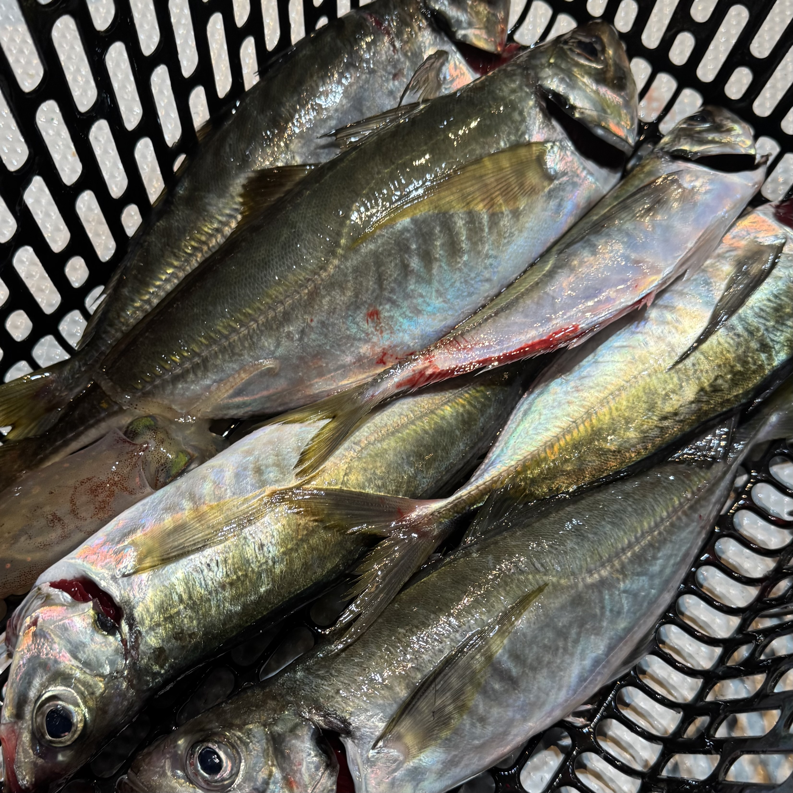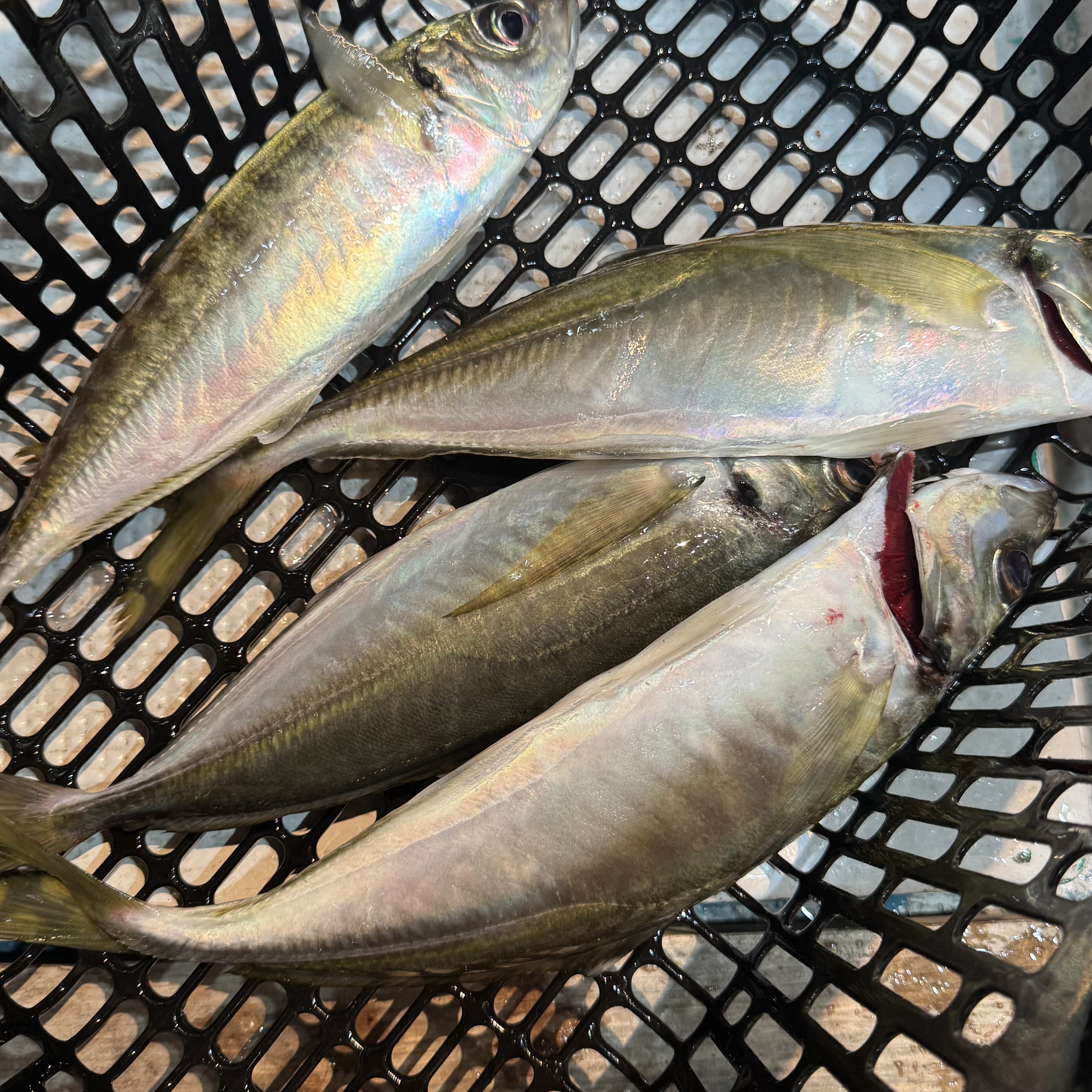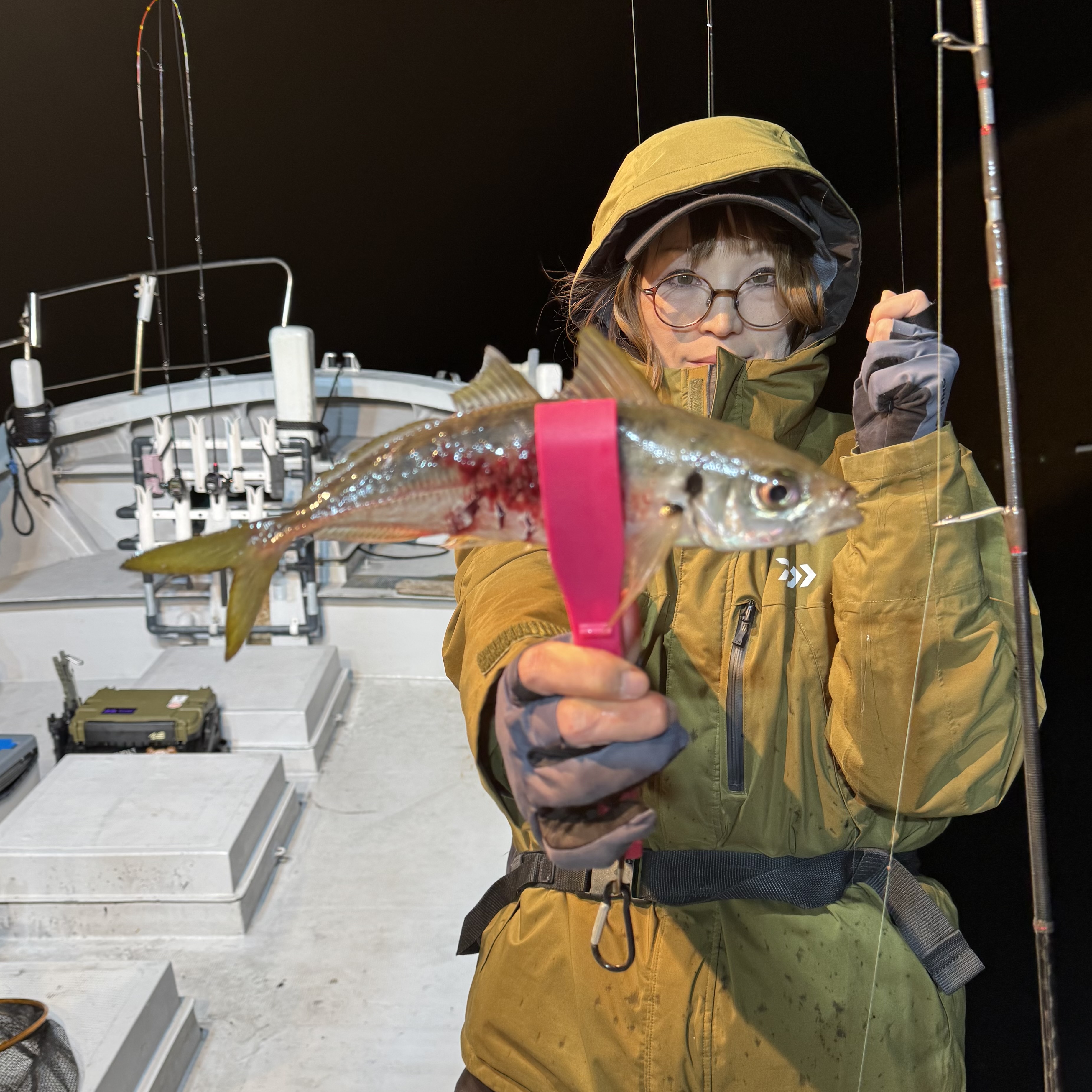 前半はバチコンからスタート🐟🎶集魚灯を点けてしばらくすると、中層でメガアジヒット😆