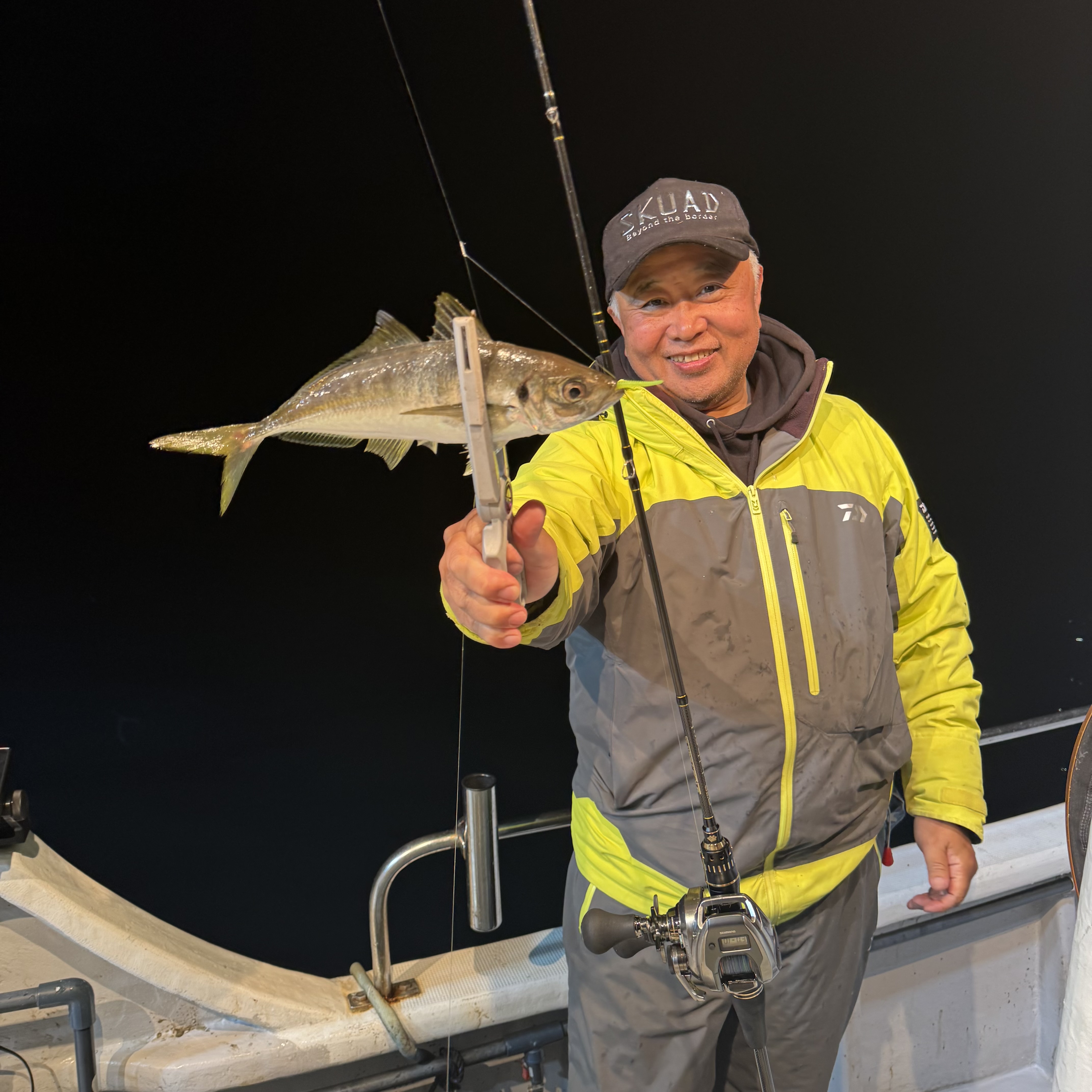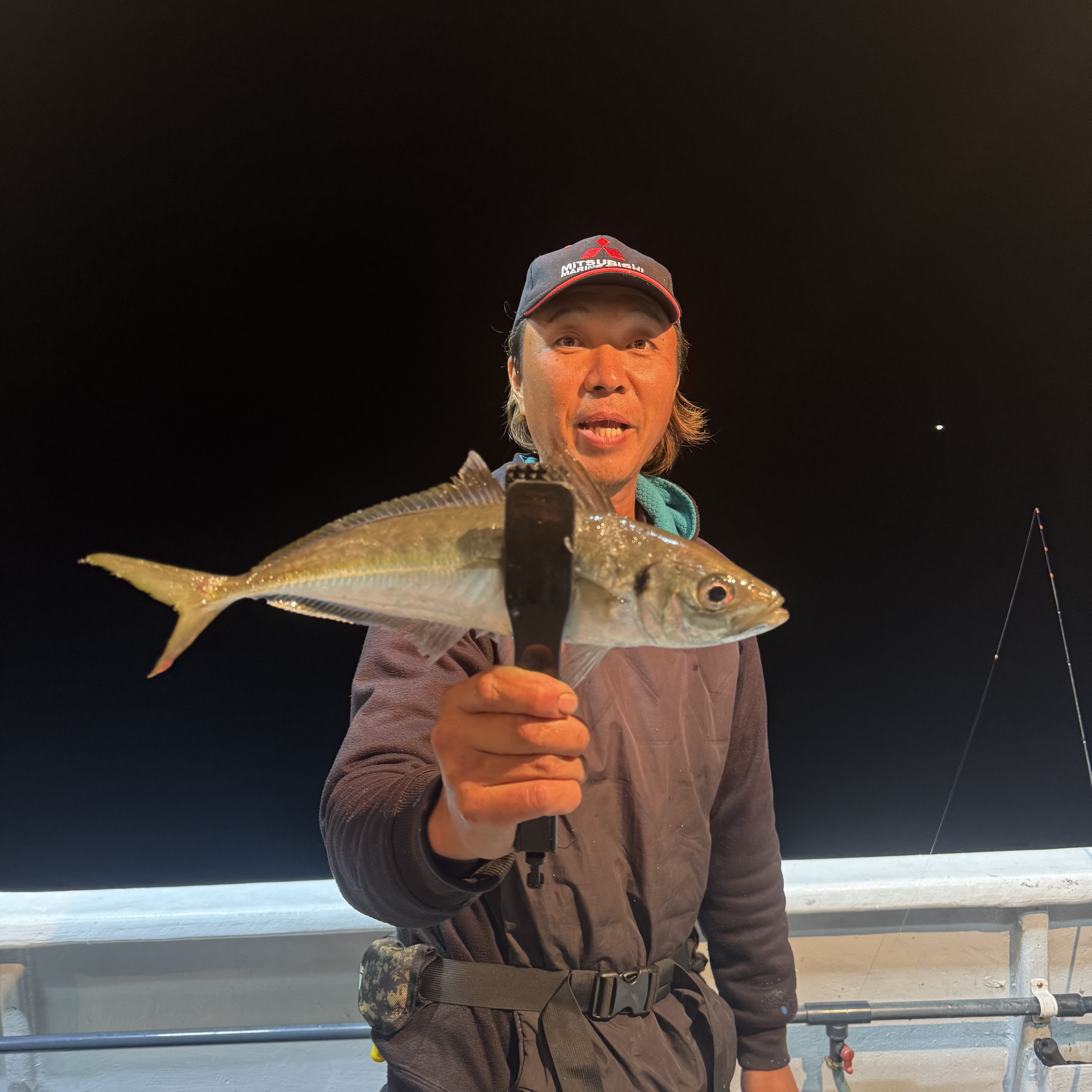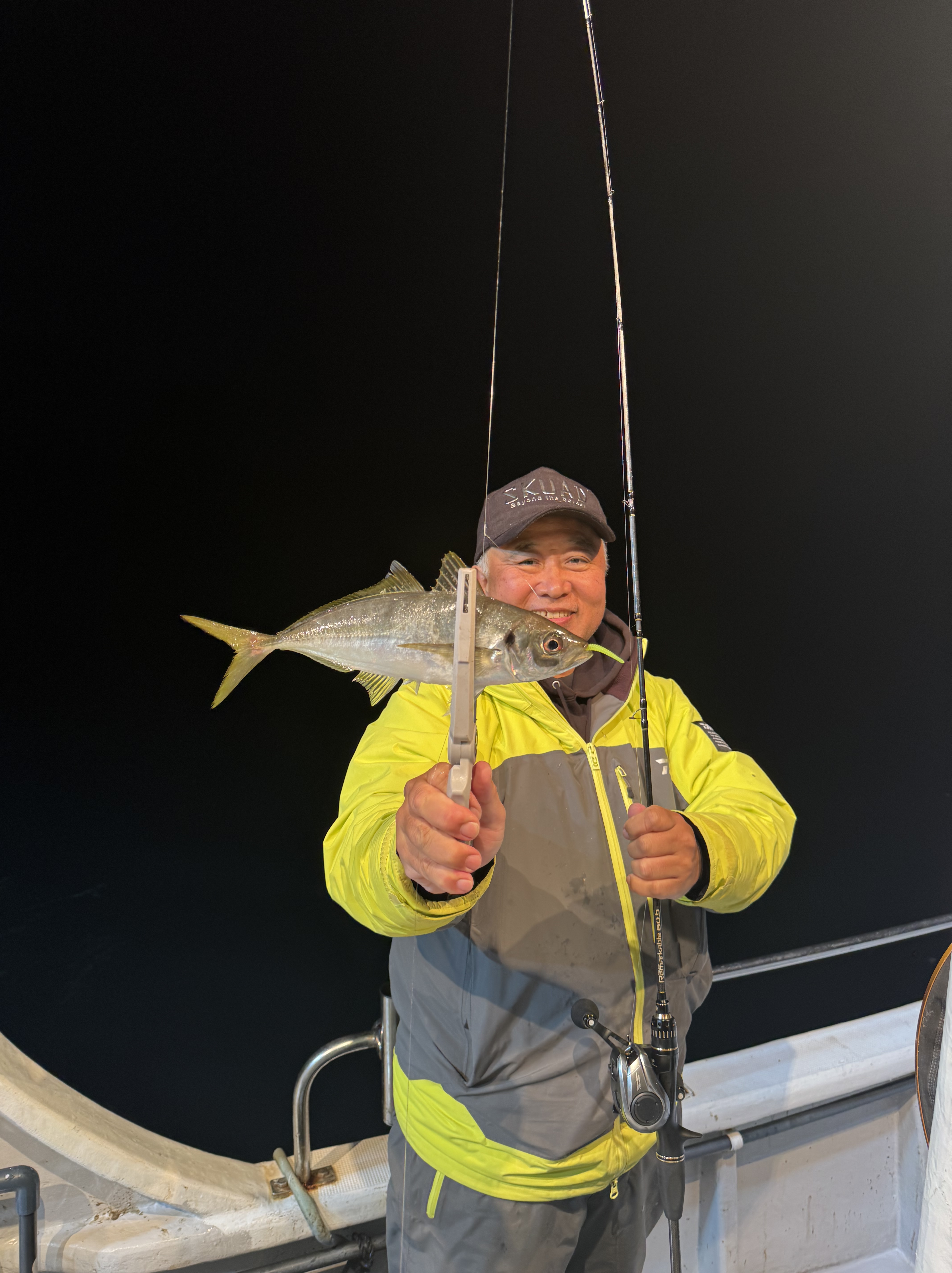 集魚灯を点けてすぐにアタリだし、いきなりラッシュ突入!