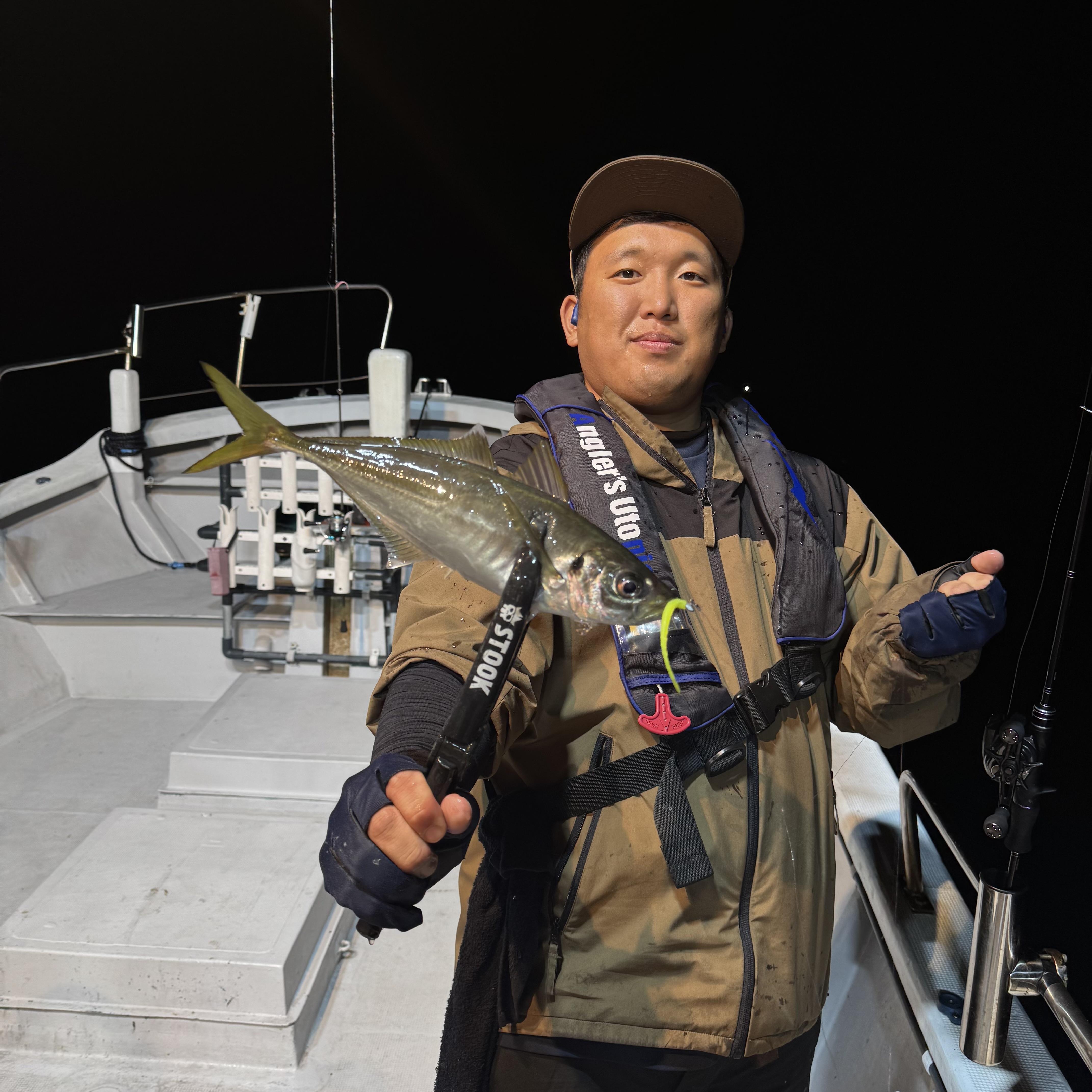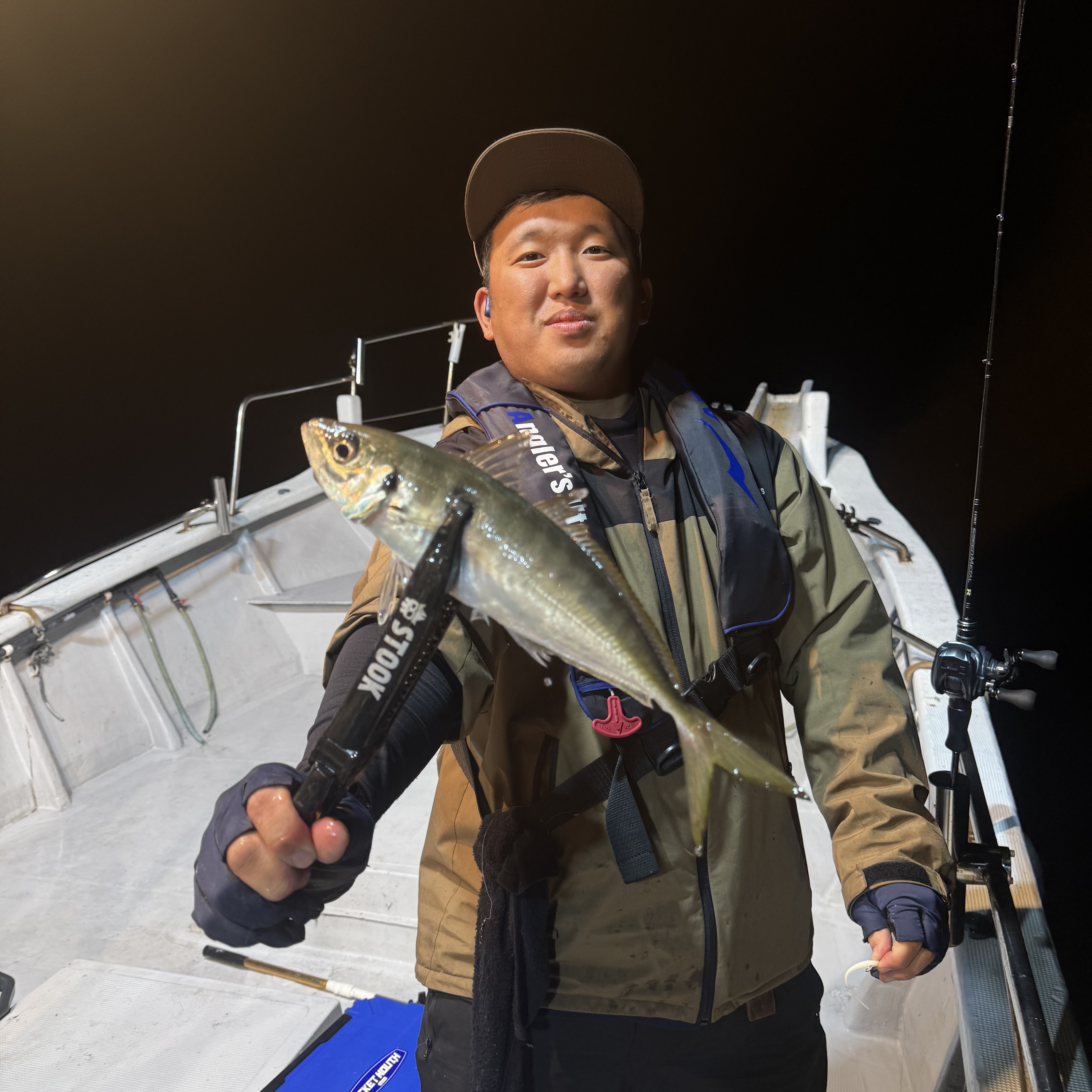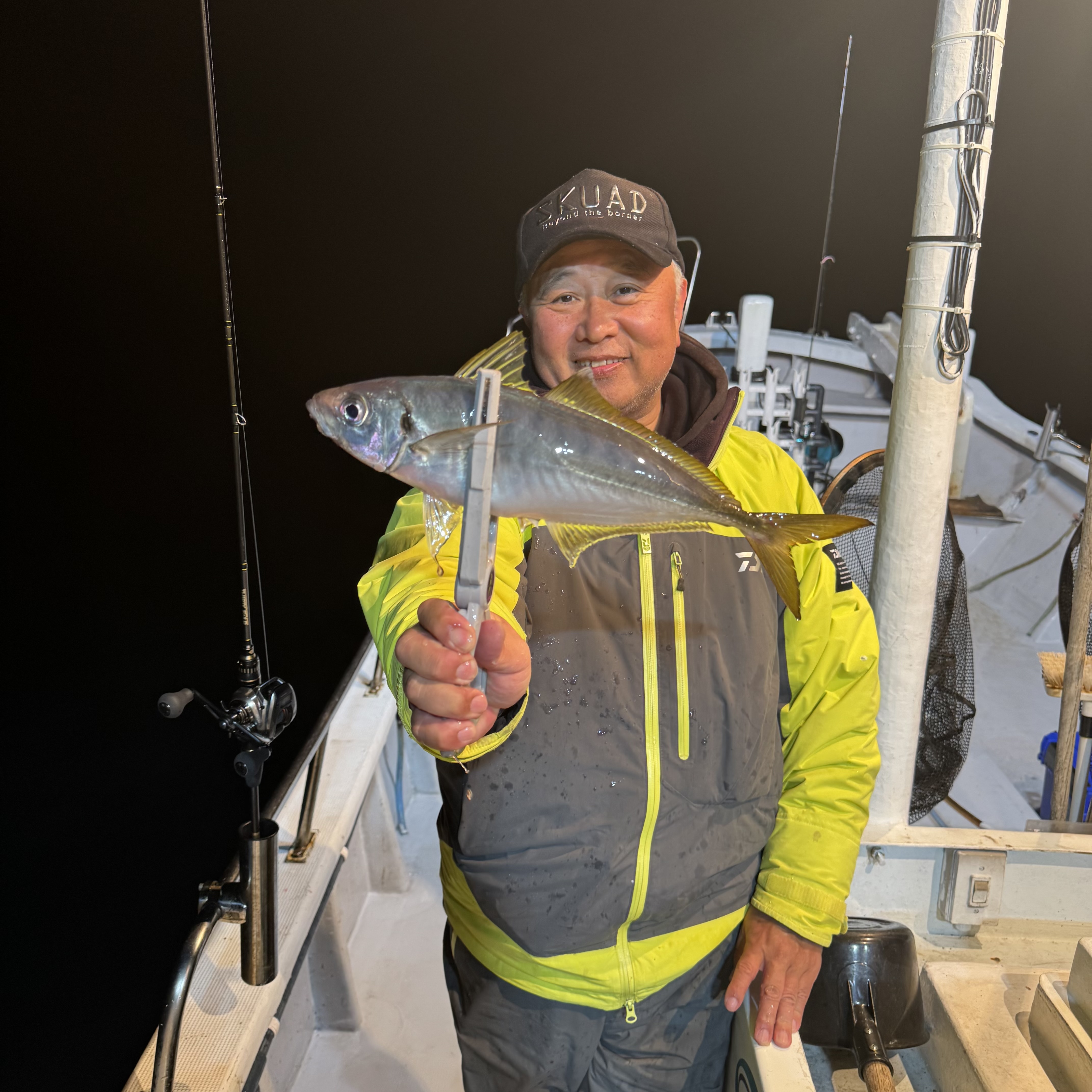 集魚灯を点けてすぐにアタリだし、いきなりラッシュ突入!