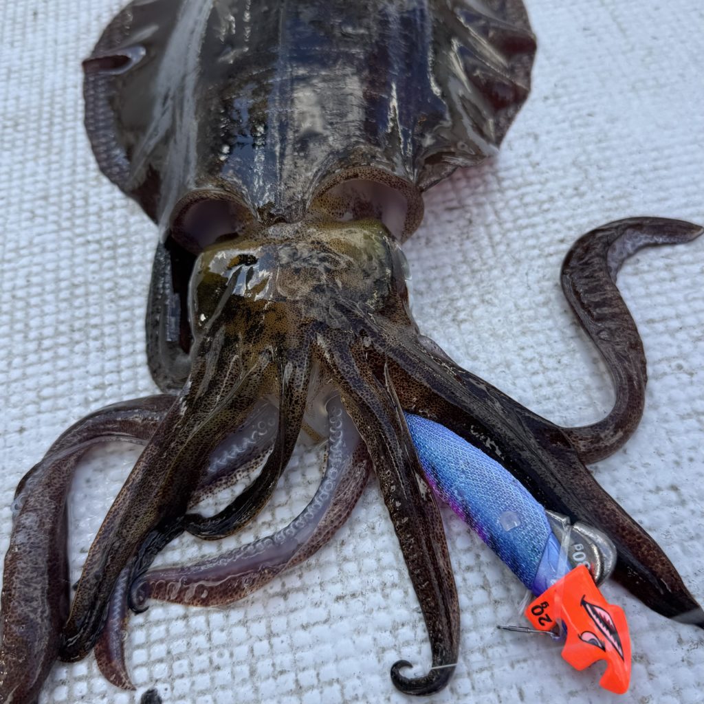 その後、潮の良く効いているポイントに移動し流し続けると良いサイズのアオリイカがヒットしました🦑😆👏