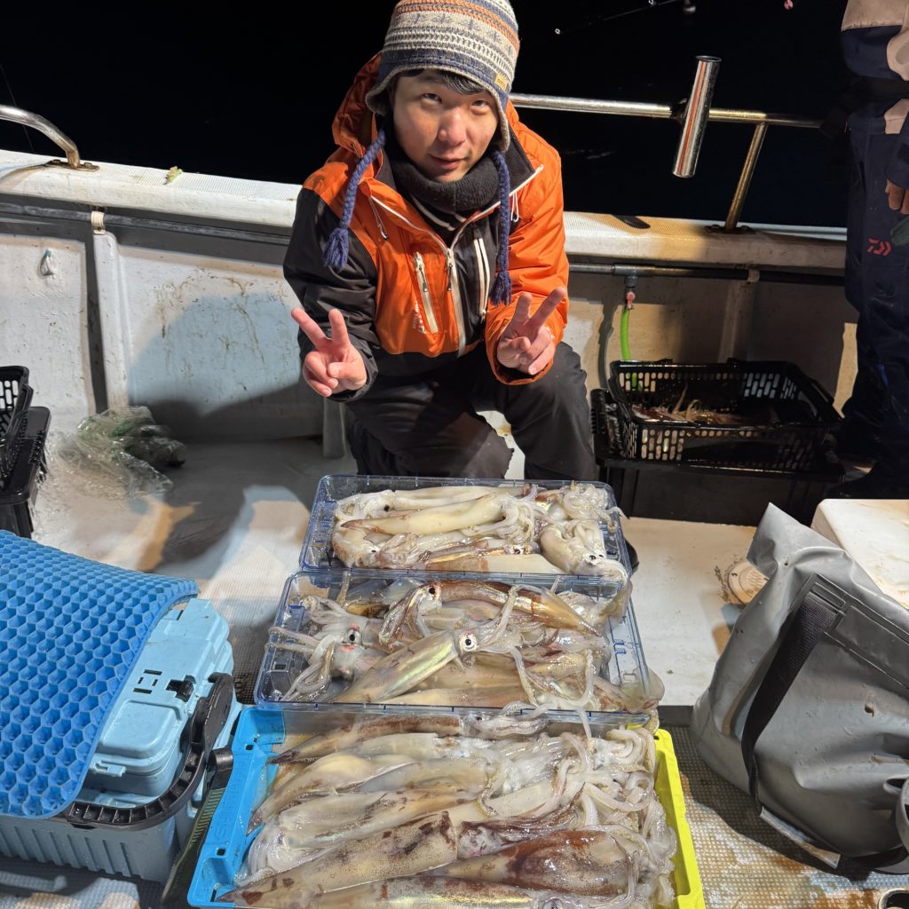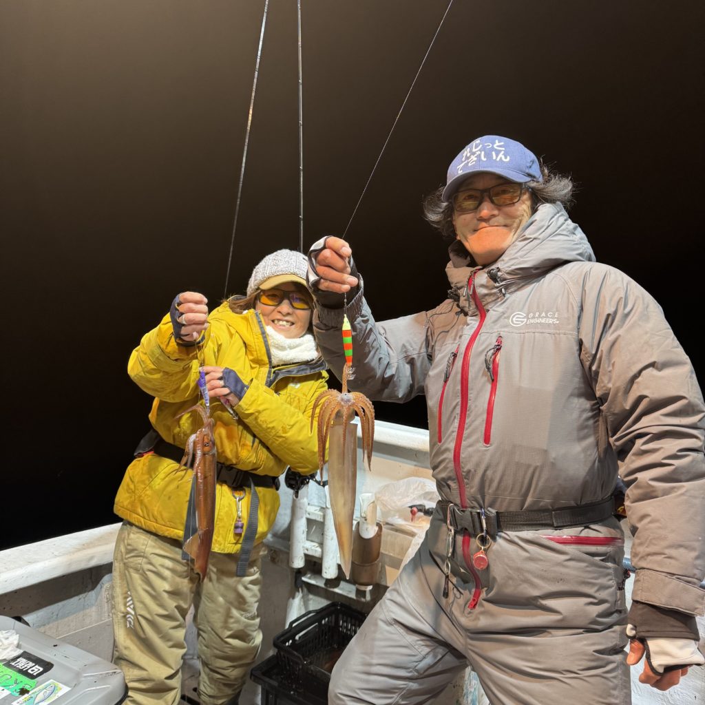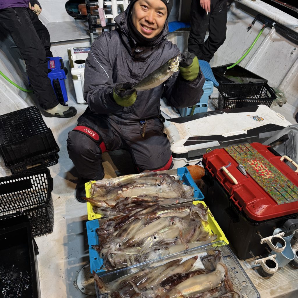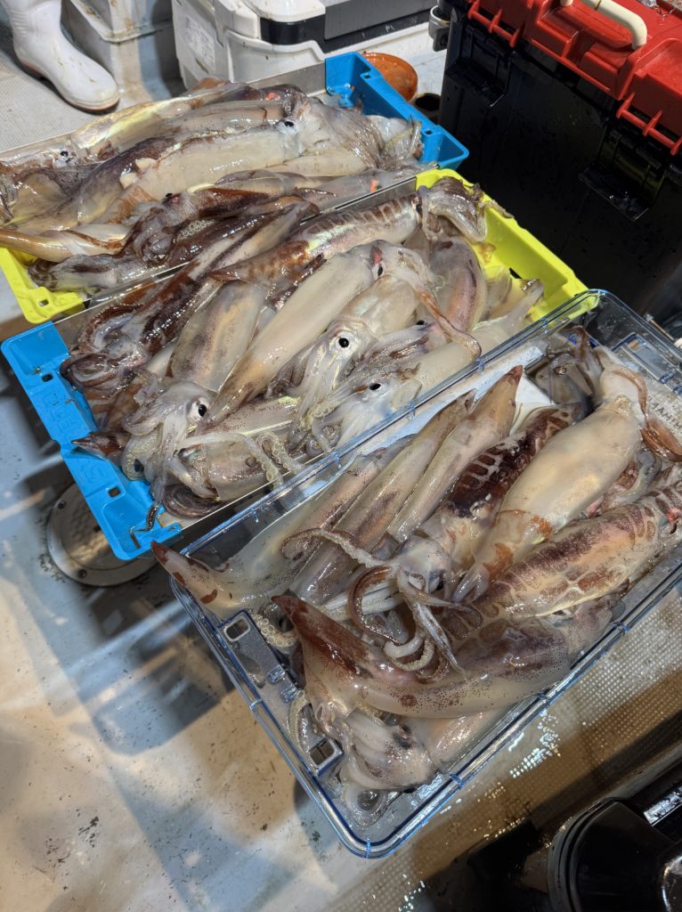 レジットデザインから新谷さん達、乗り合いの皆様とイカメタル&バチコンに出船🛥️🌈
