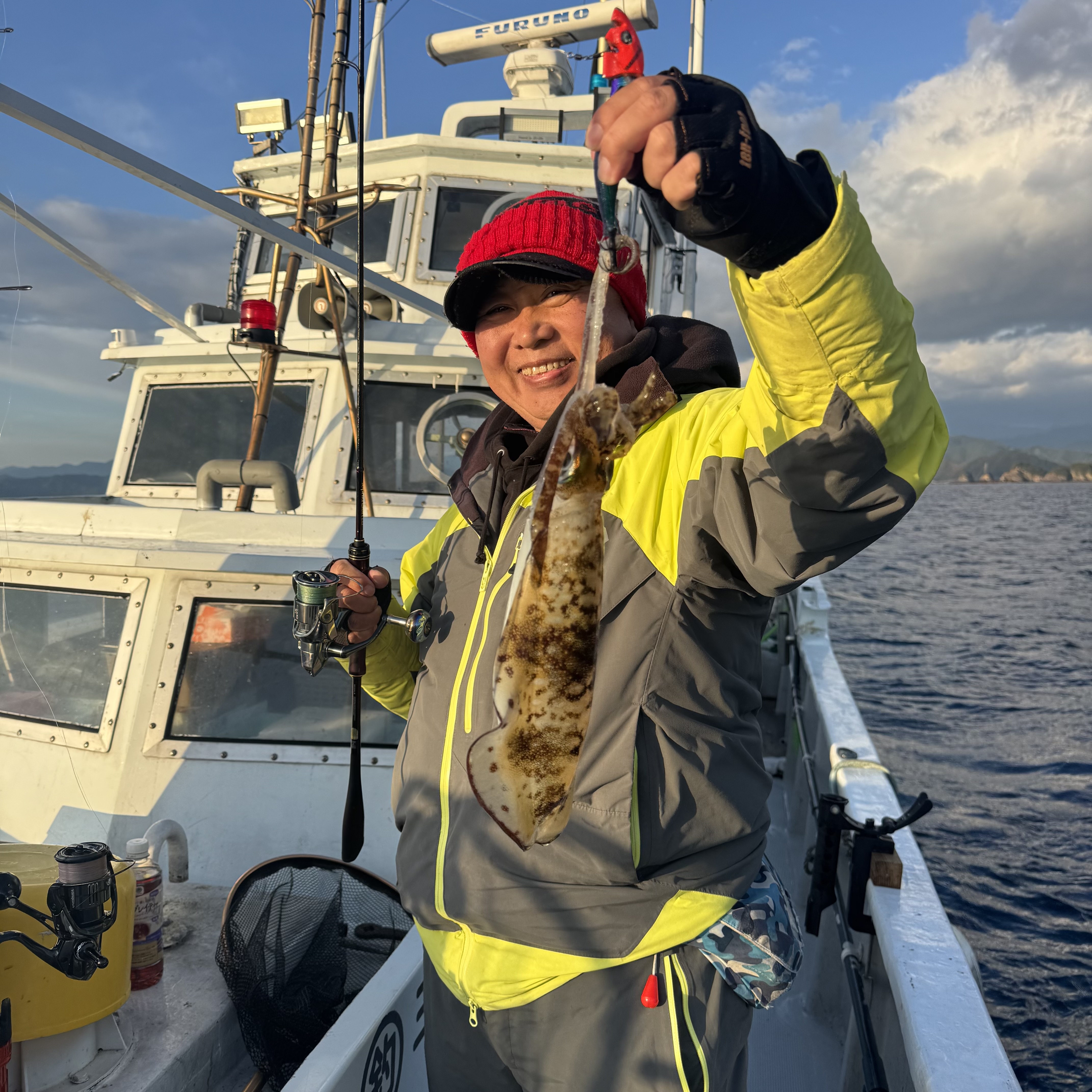 水温も下がってるので深場を選択!すると2回目の流しで700gをキャッチ🦑潮も少し効いており2杯連チャンでヒット🦑✨