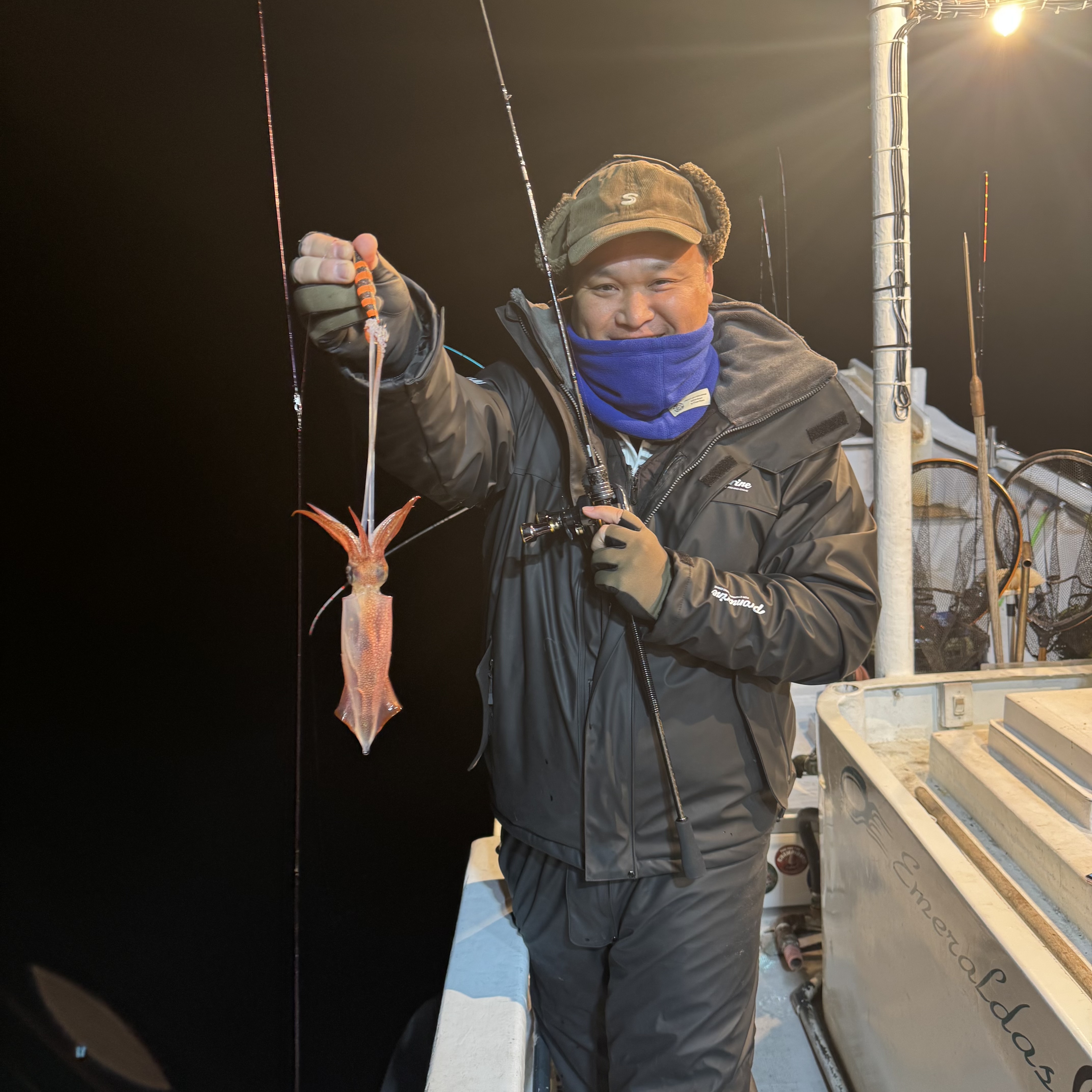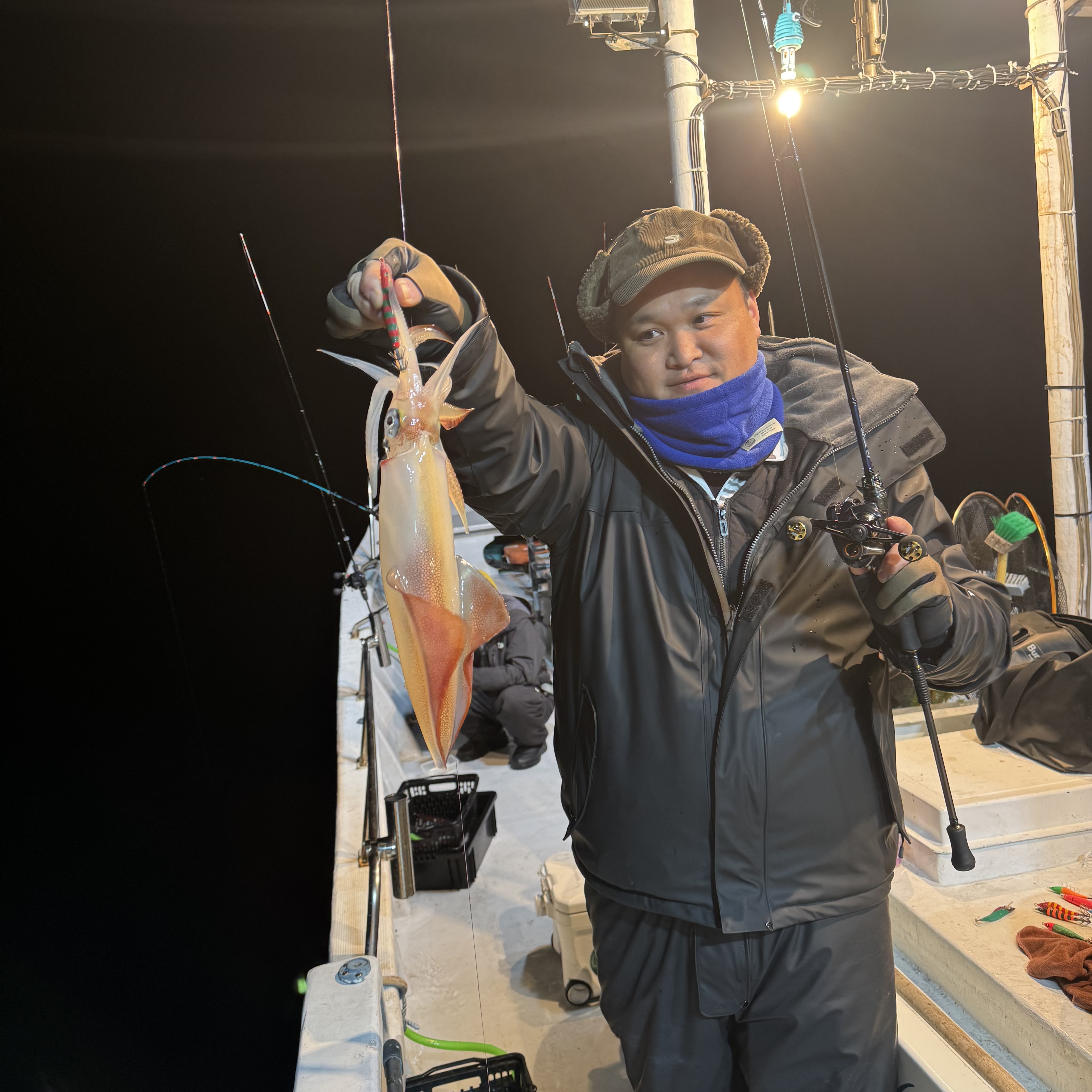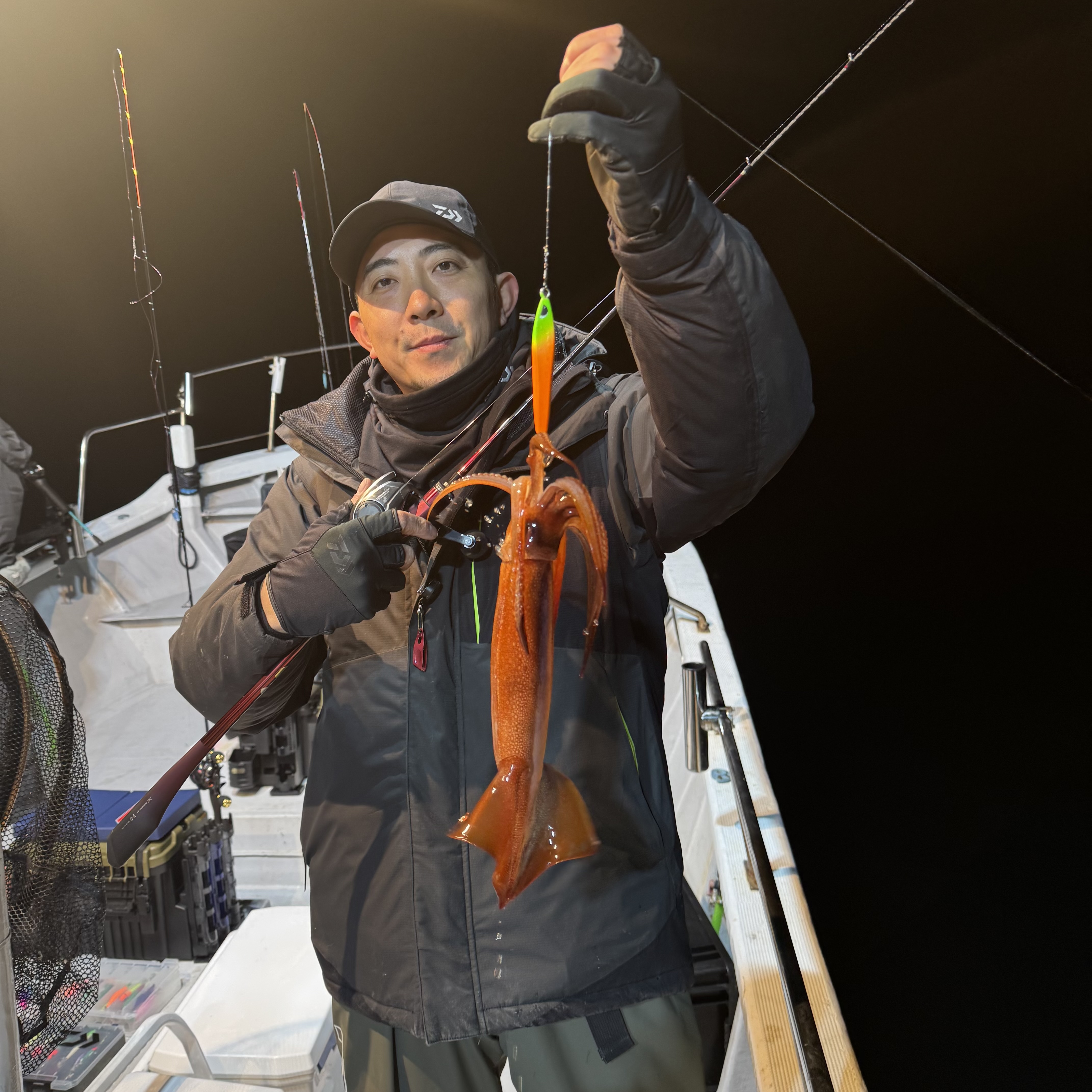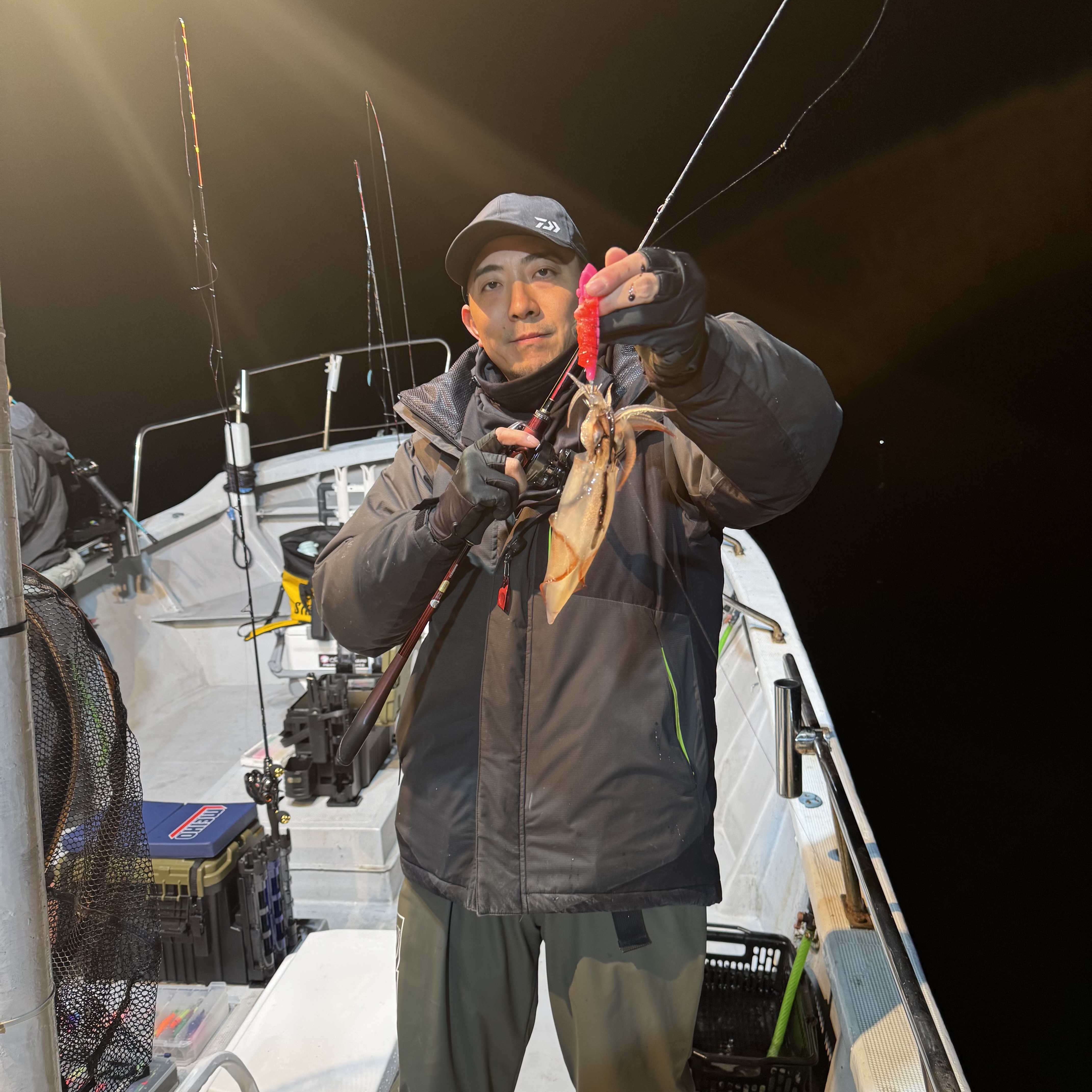 集魚灯を点けてしばらくすると、スルメイカのトリプルヒットからスタート🦑🦑🦑