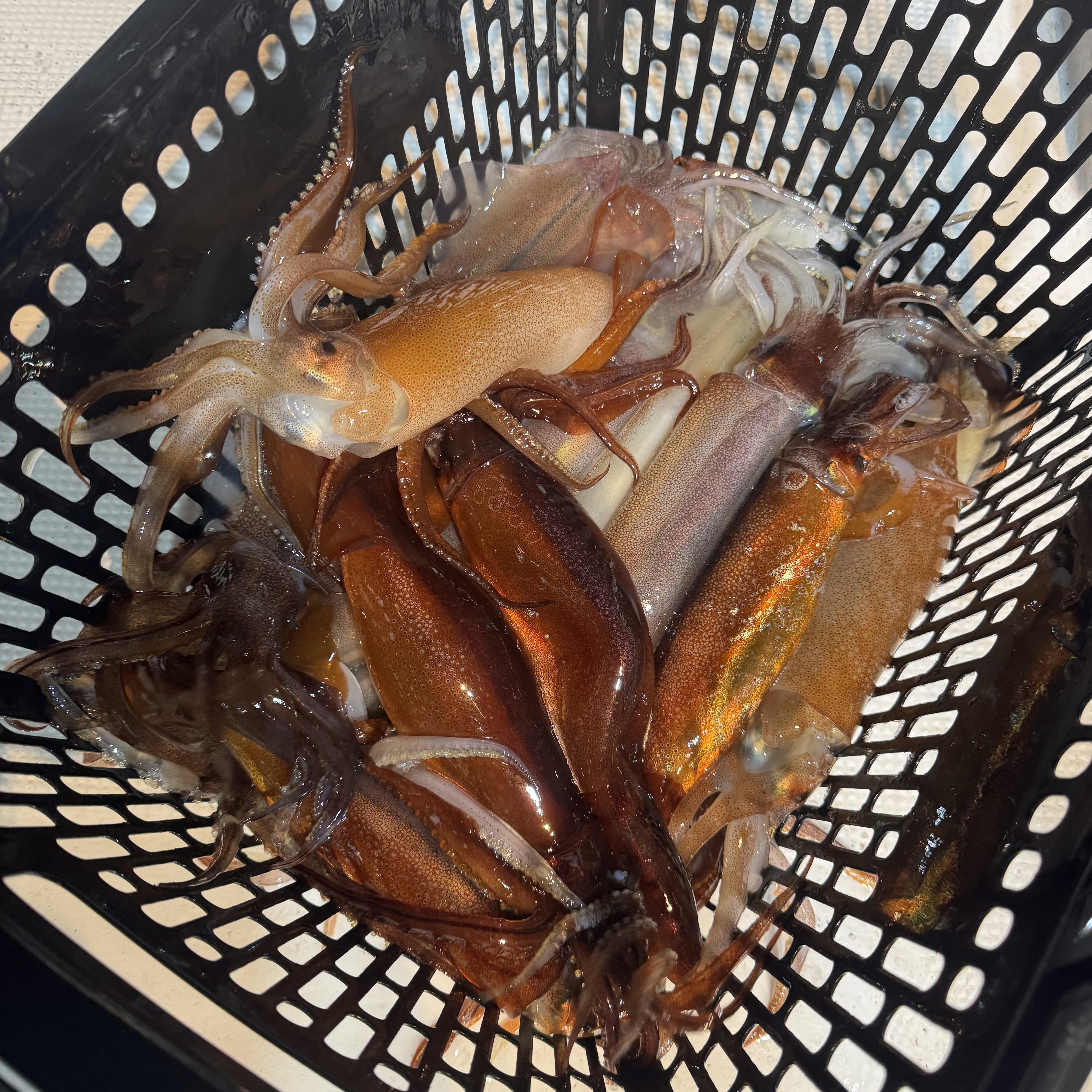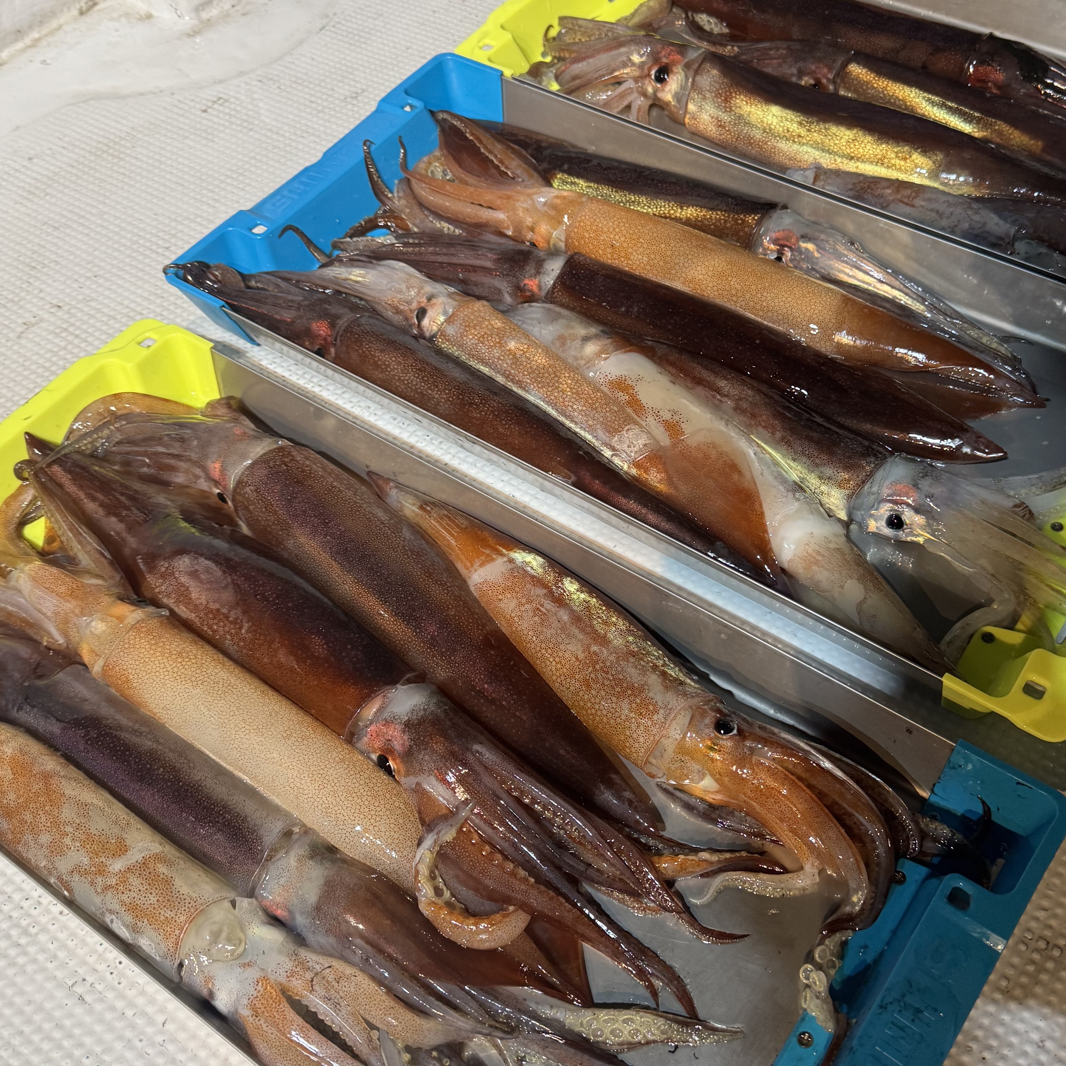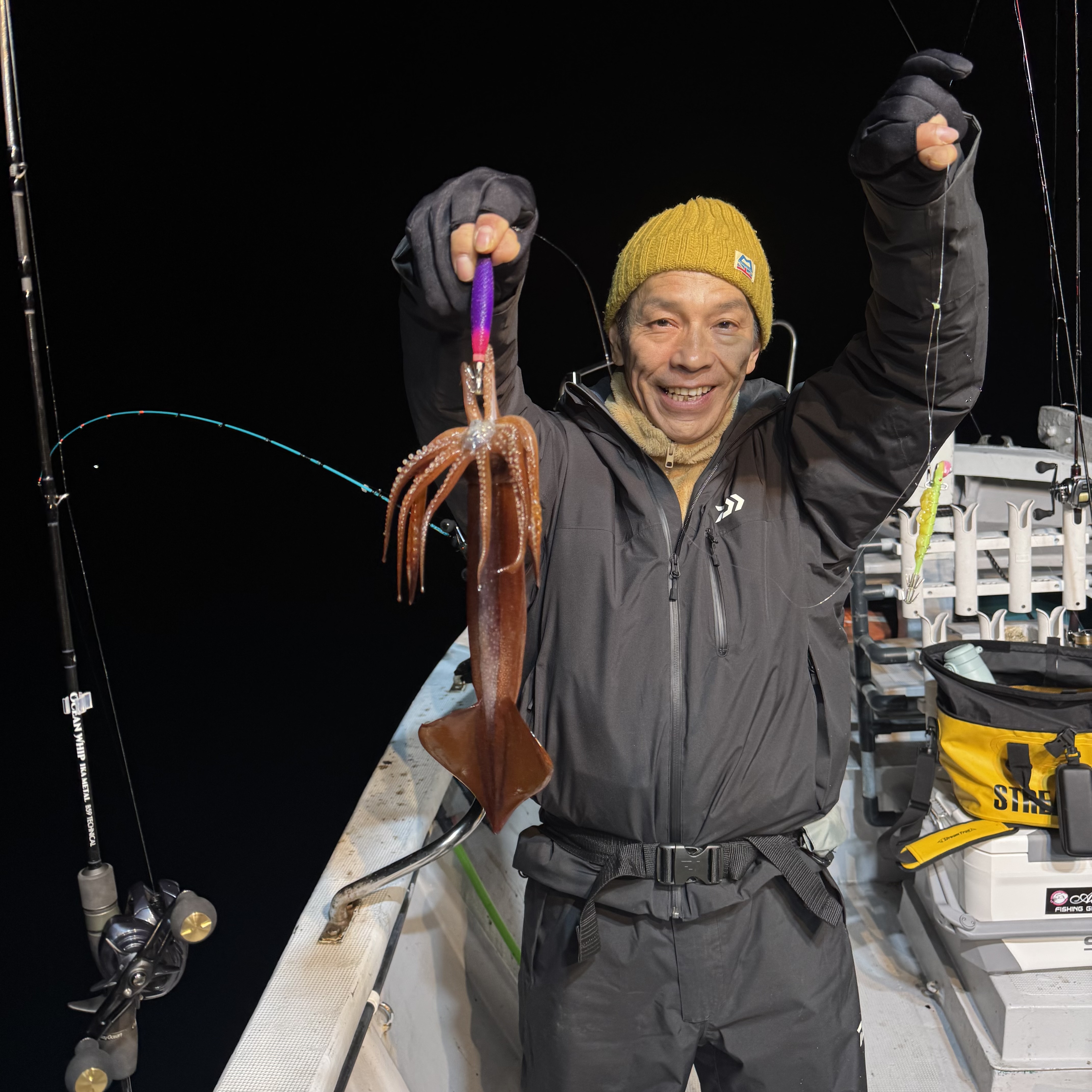 集魚灯を点けてしばらくすると、スルメイカのトリプルヒットからスタート🦑🦑🦑