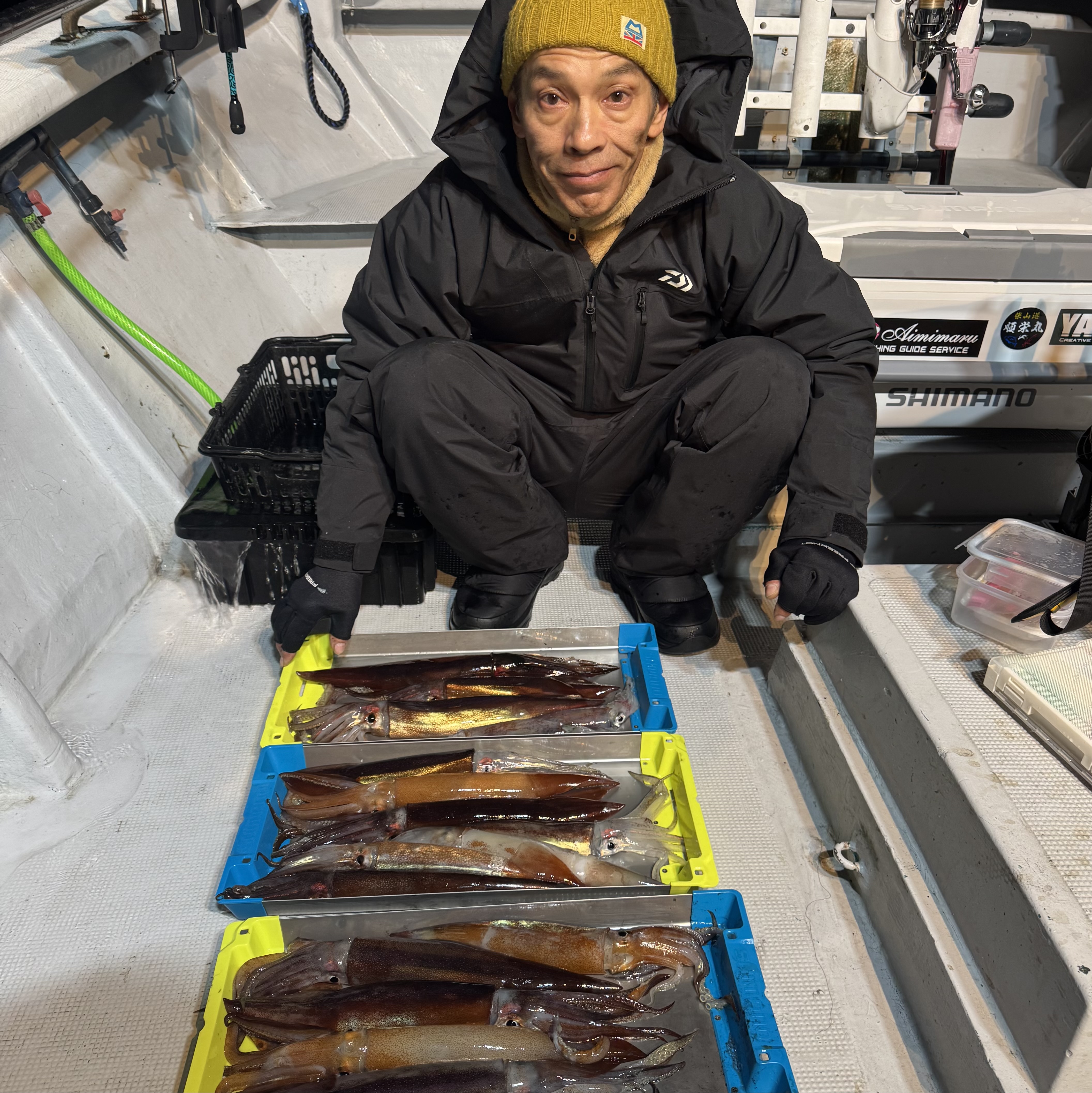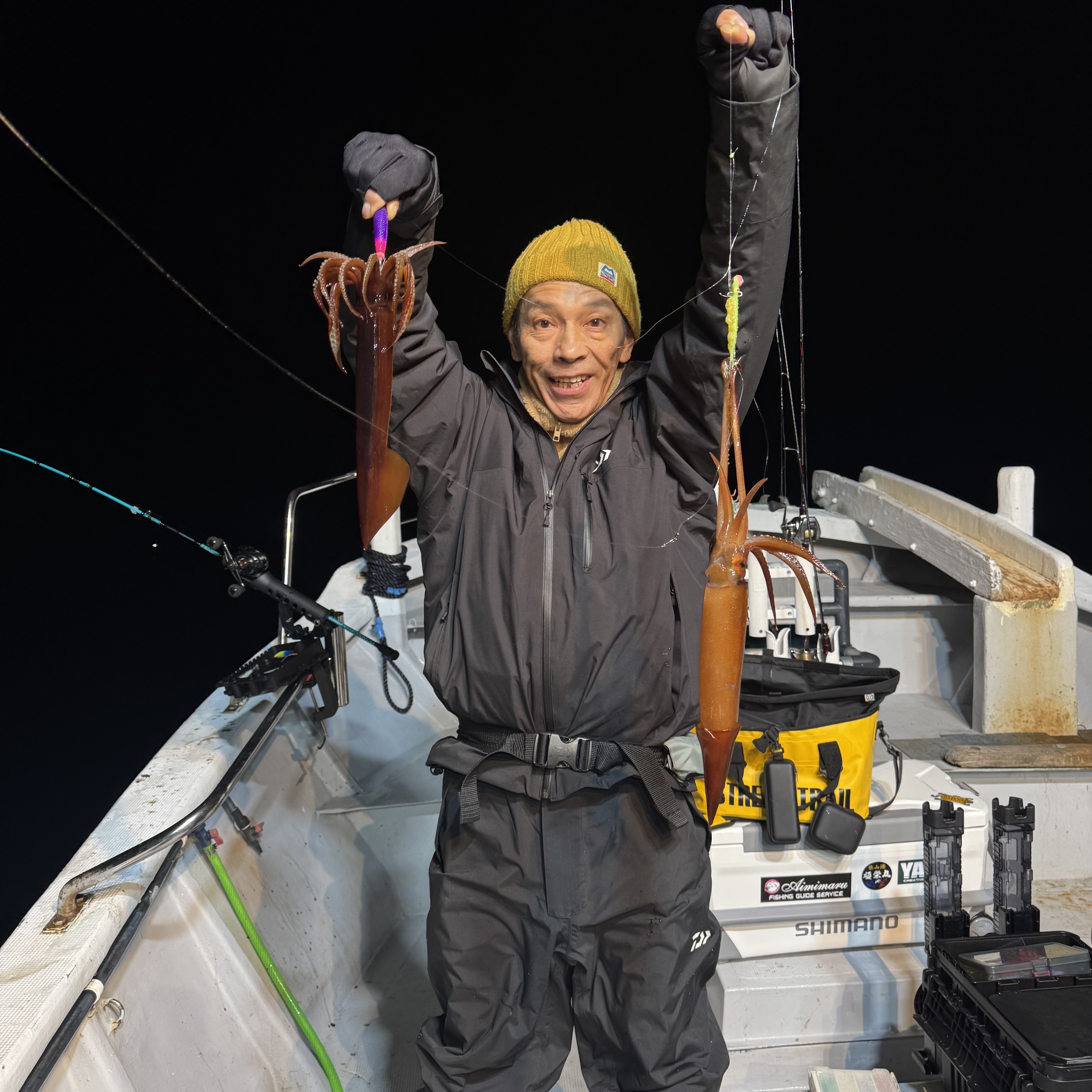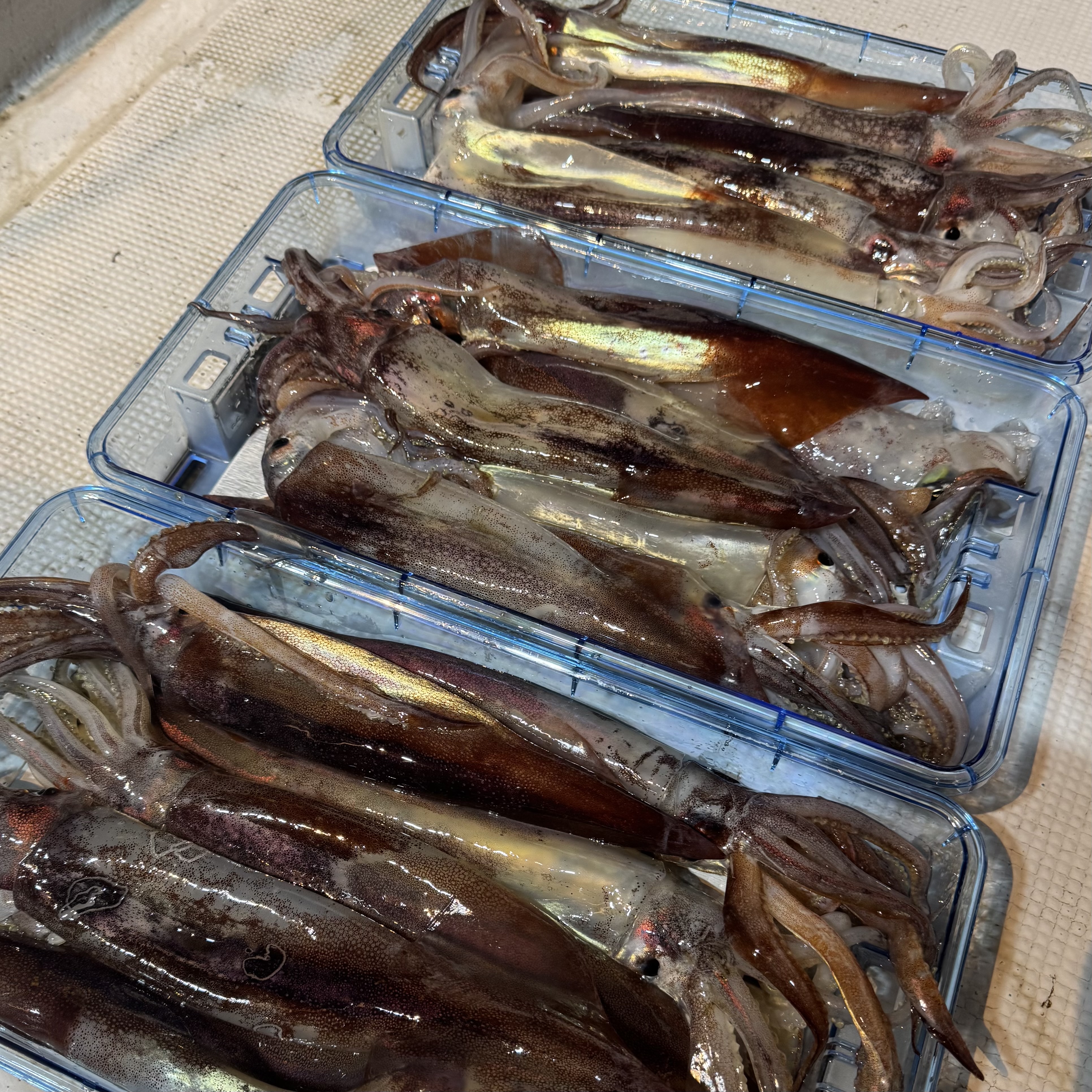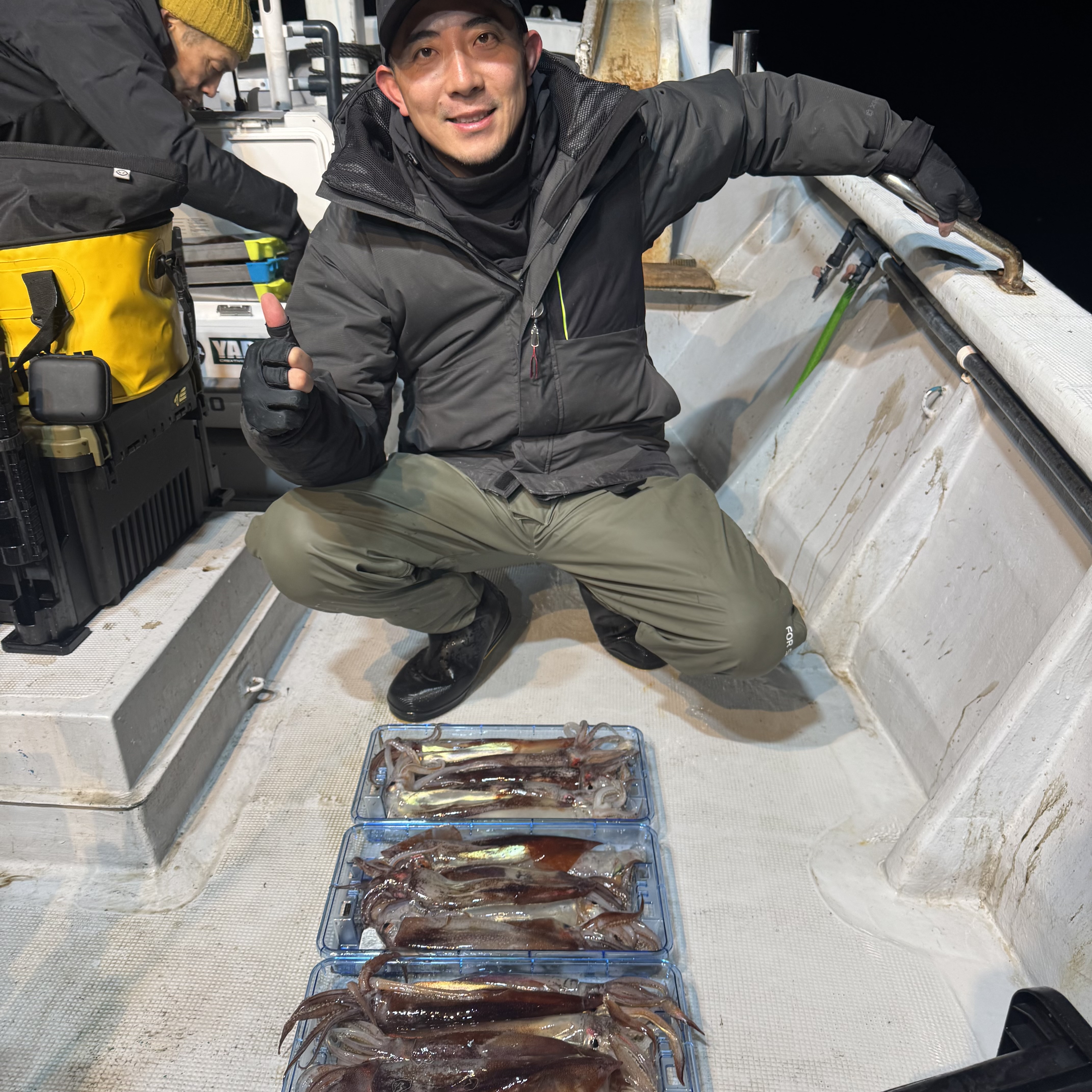 集魚灯を点けてしばらくすると、スルメイカのトリプルヒットからスタート🦑🦑🦑
