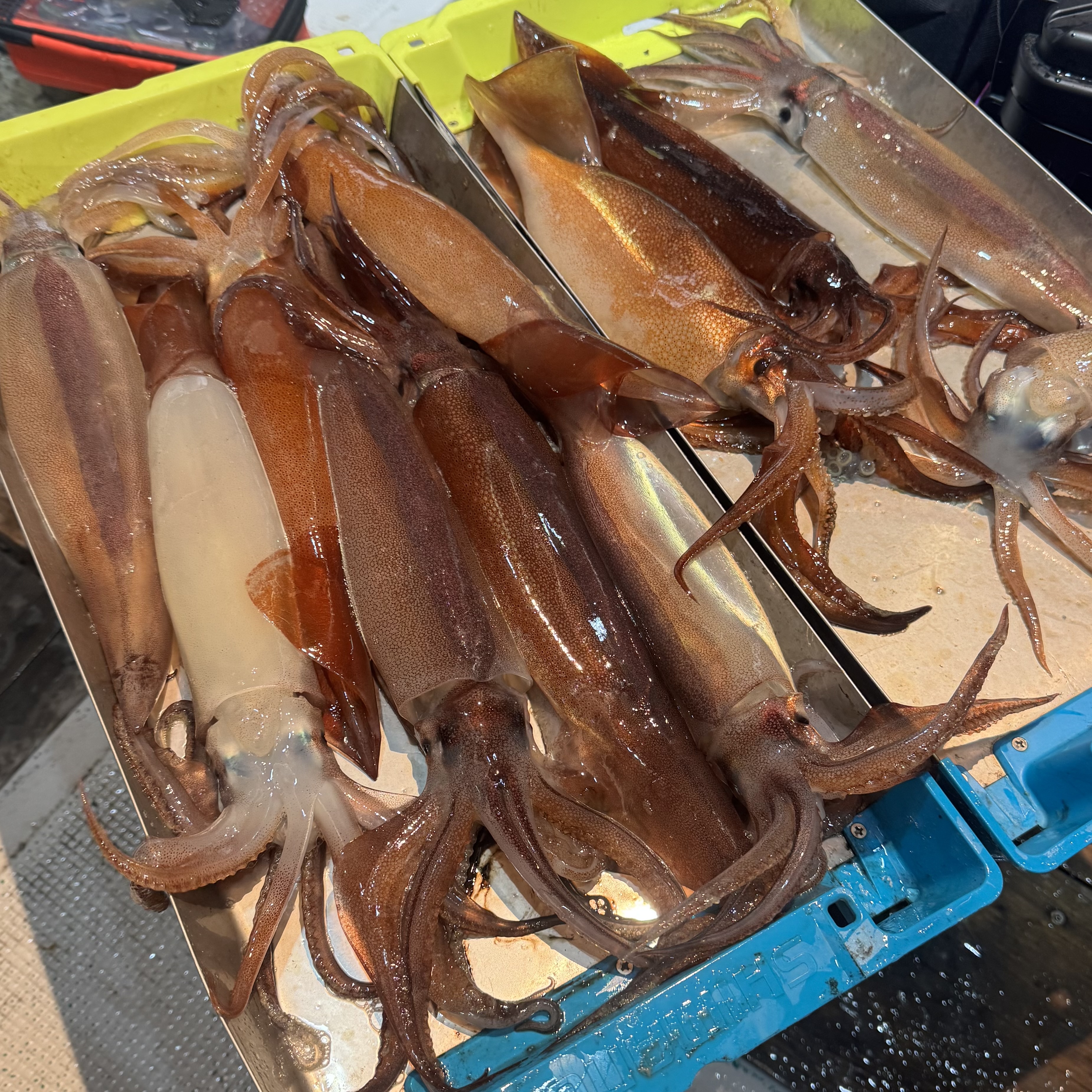 スルメイカもあたるけど、いつも通りにはいかずイカの活性が上がらない🤔単発ばかりでその合間にヤリイカがポツポツと混ざっていました🦑