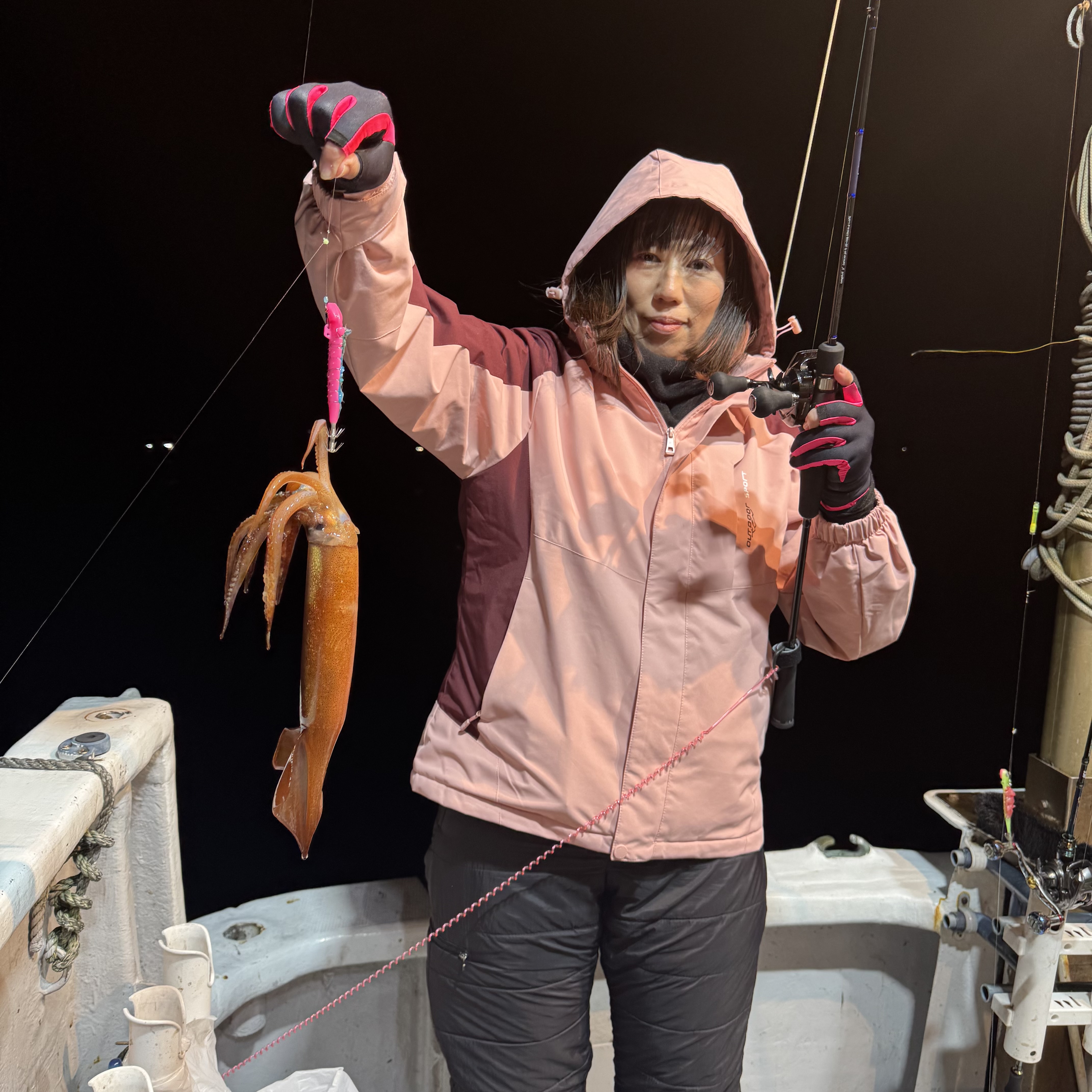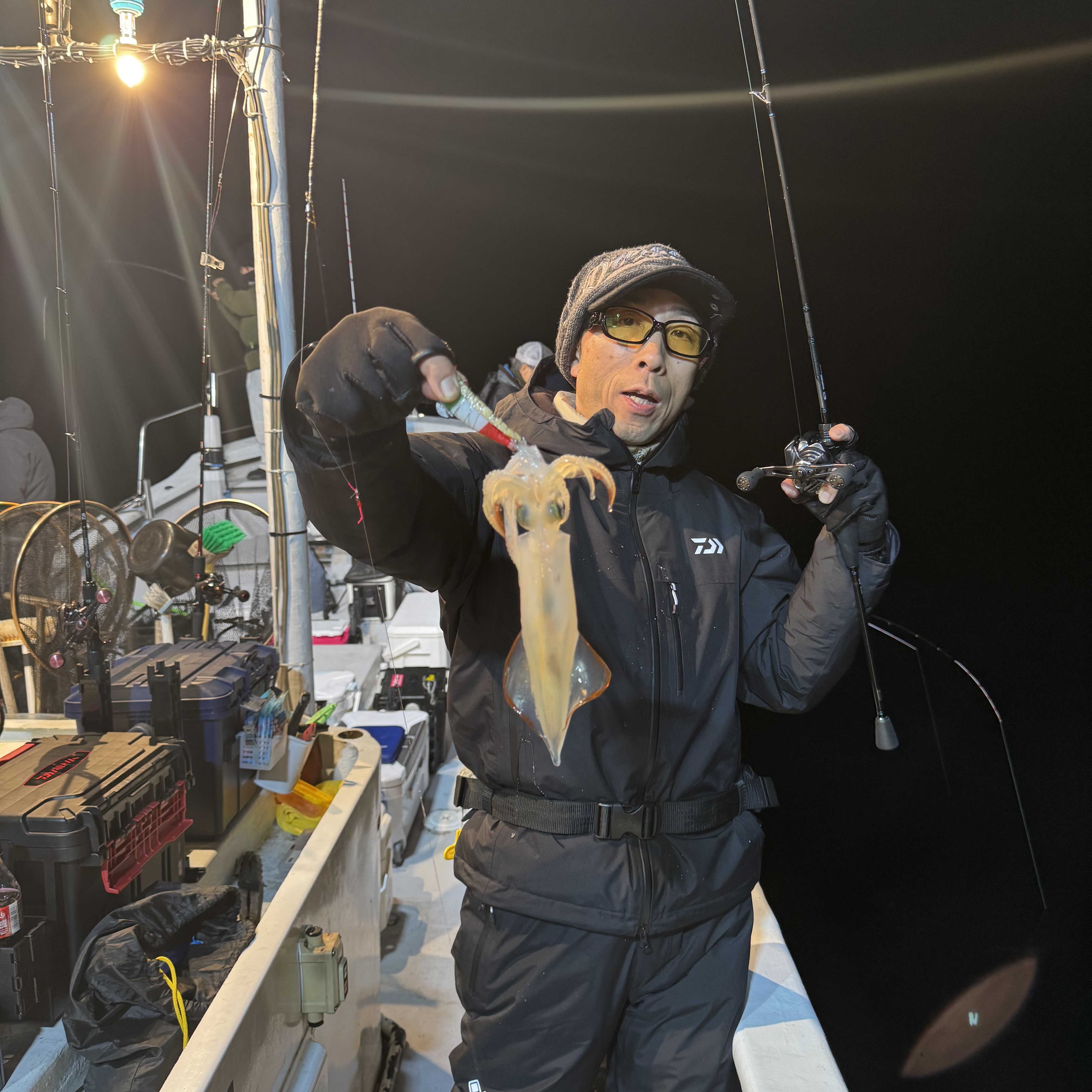 集魚灯を点けてしばらくするケンサキイカからポツポツヒット🦑🦑