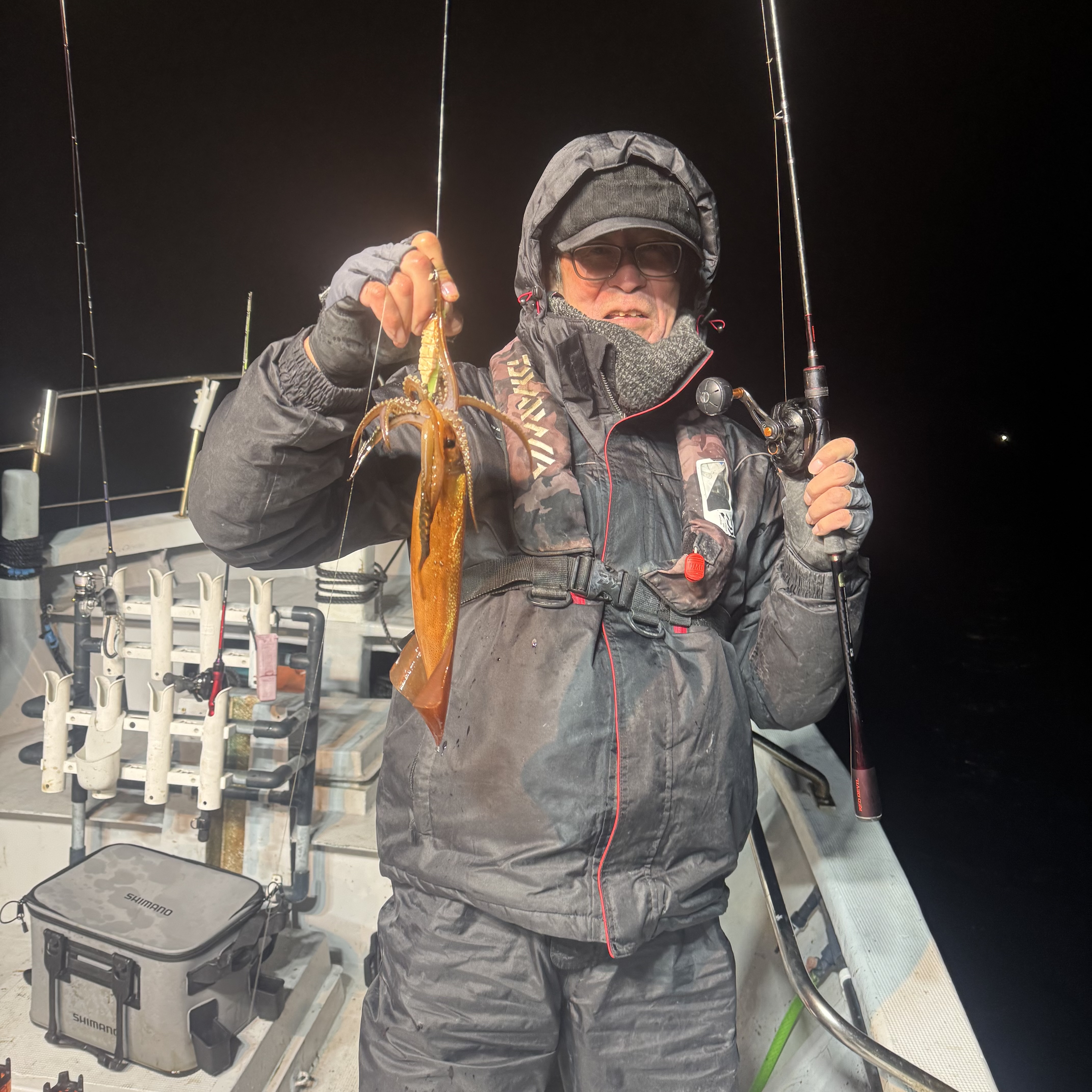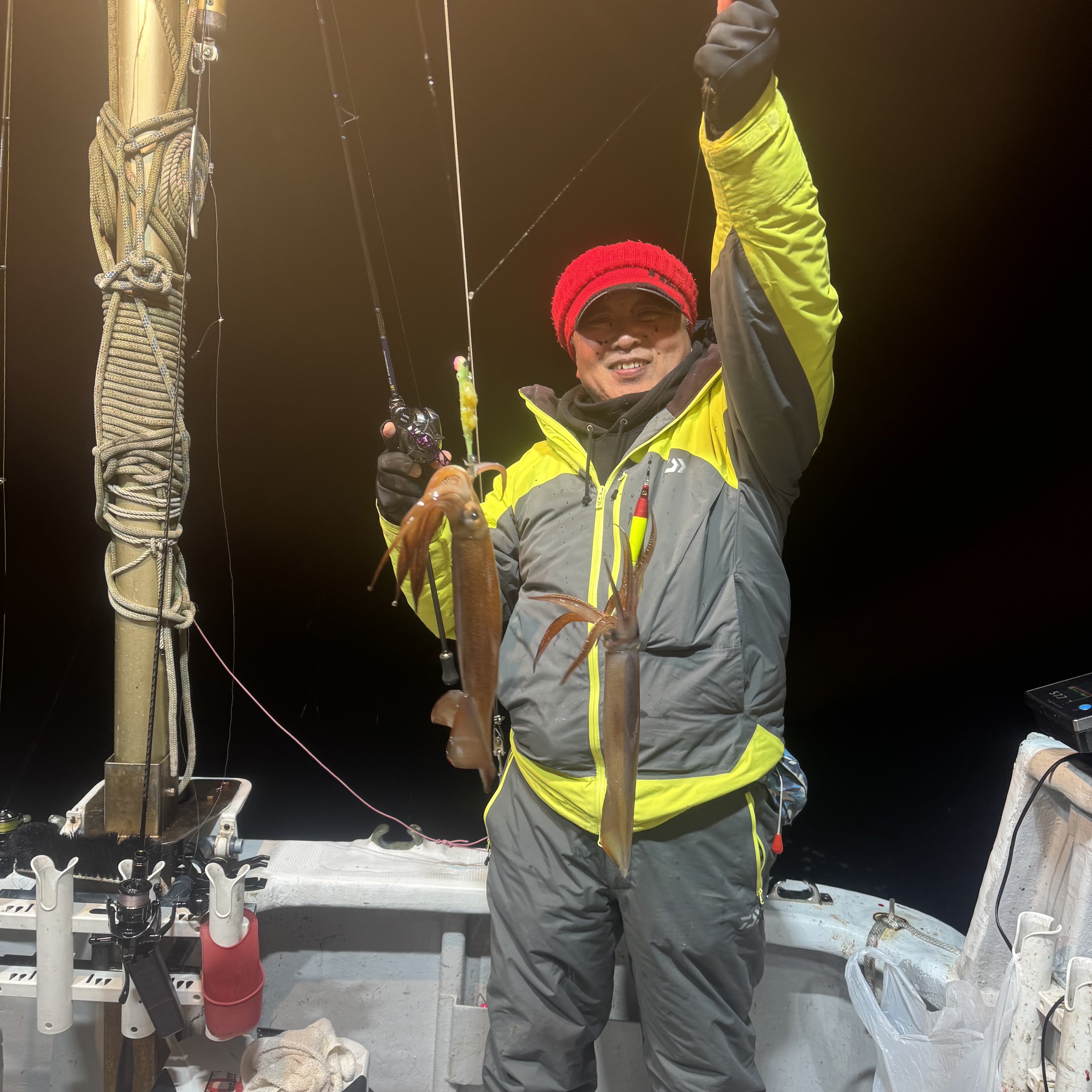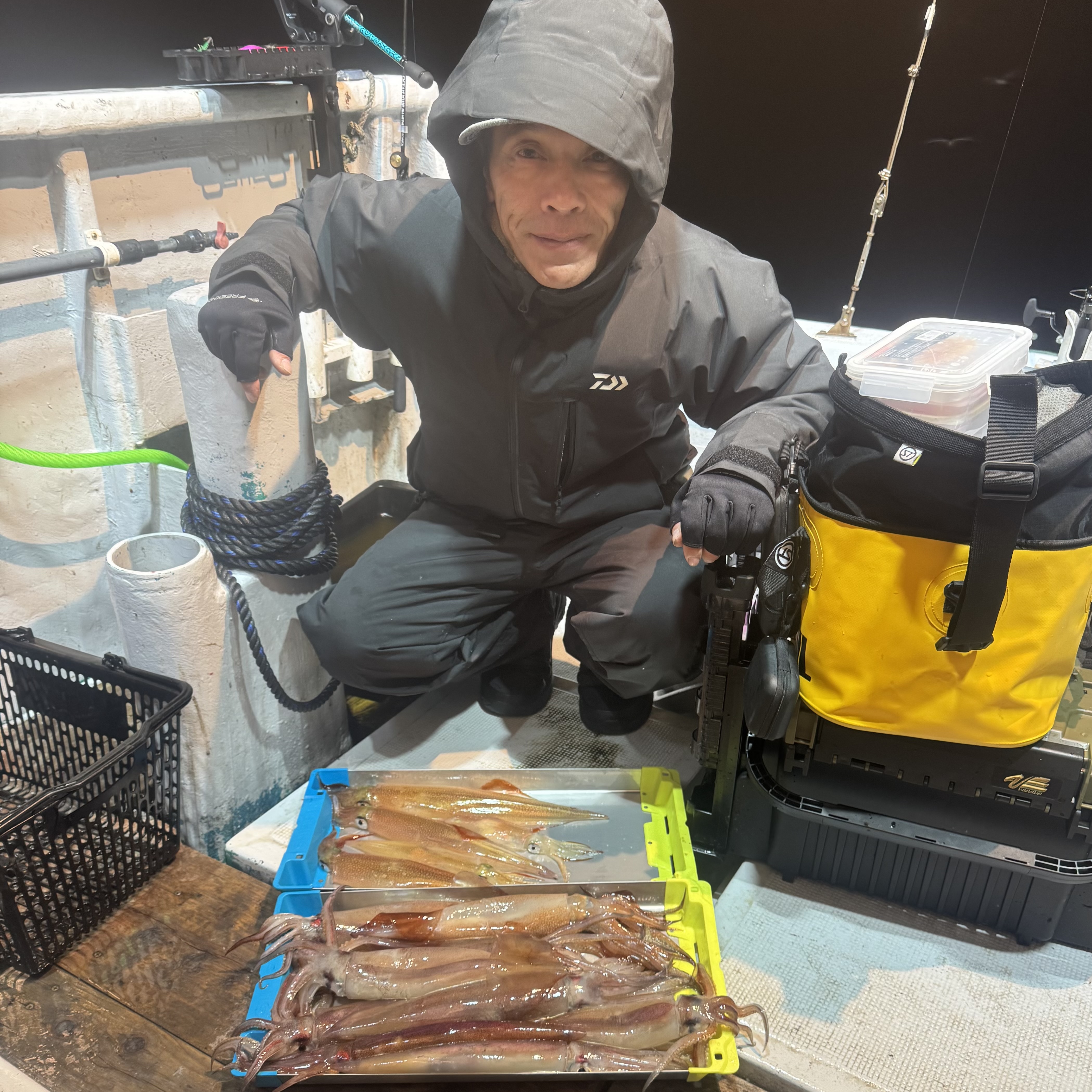 前半はケンサキイカ、ヤリイカがポツポツでしたが、中盤からベイトが固まりスルメイカの活性MAX😁