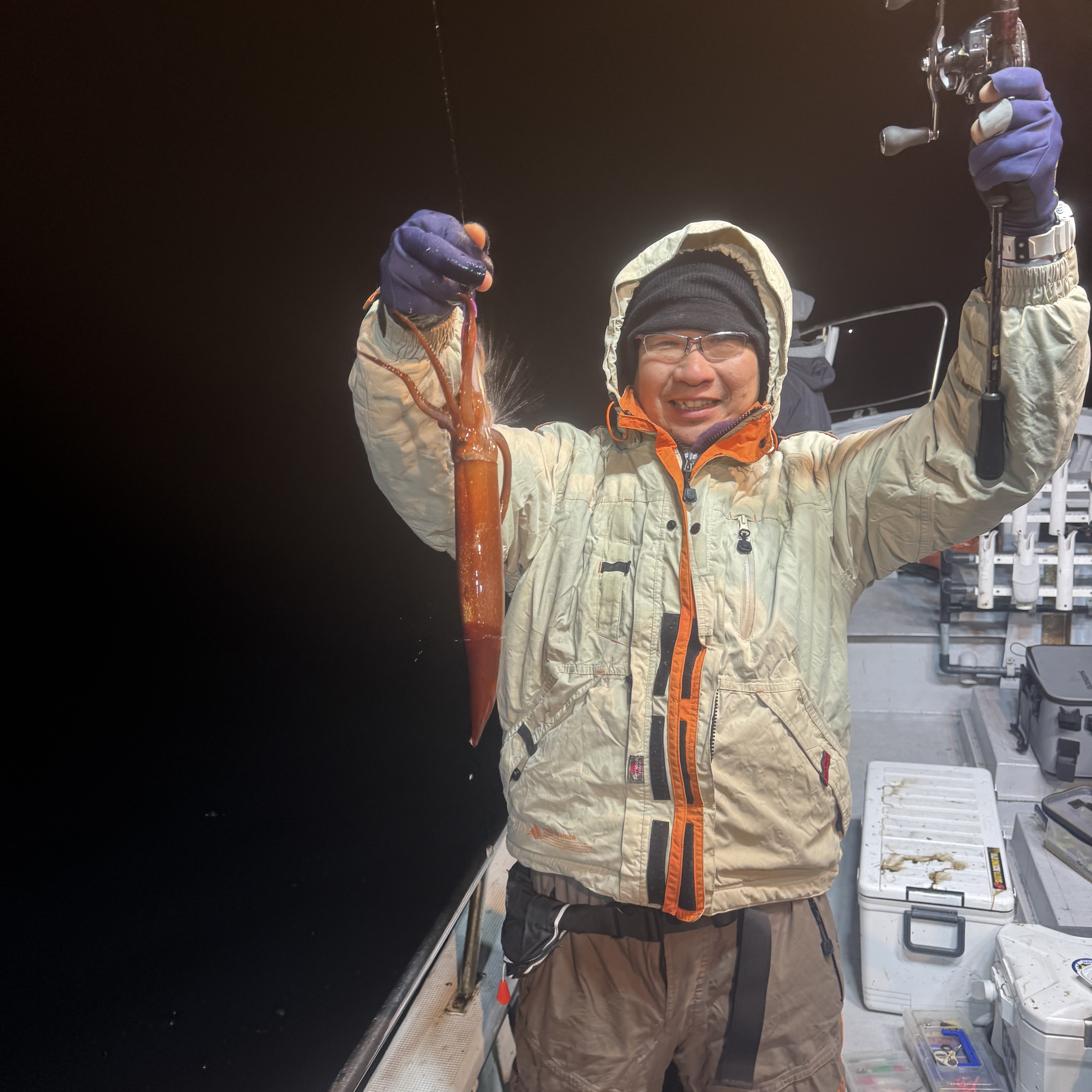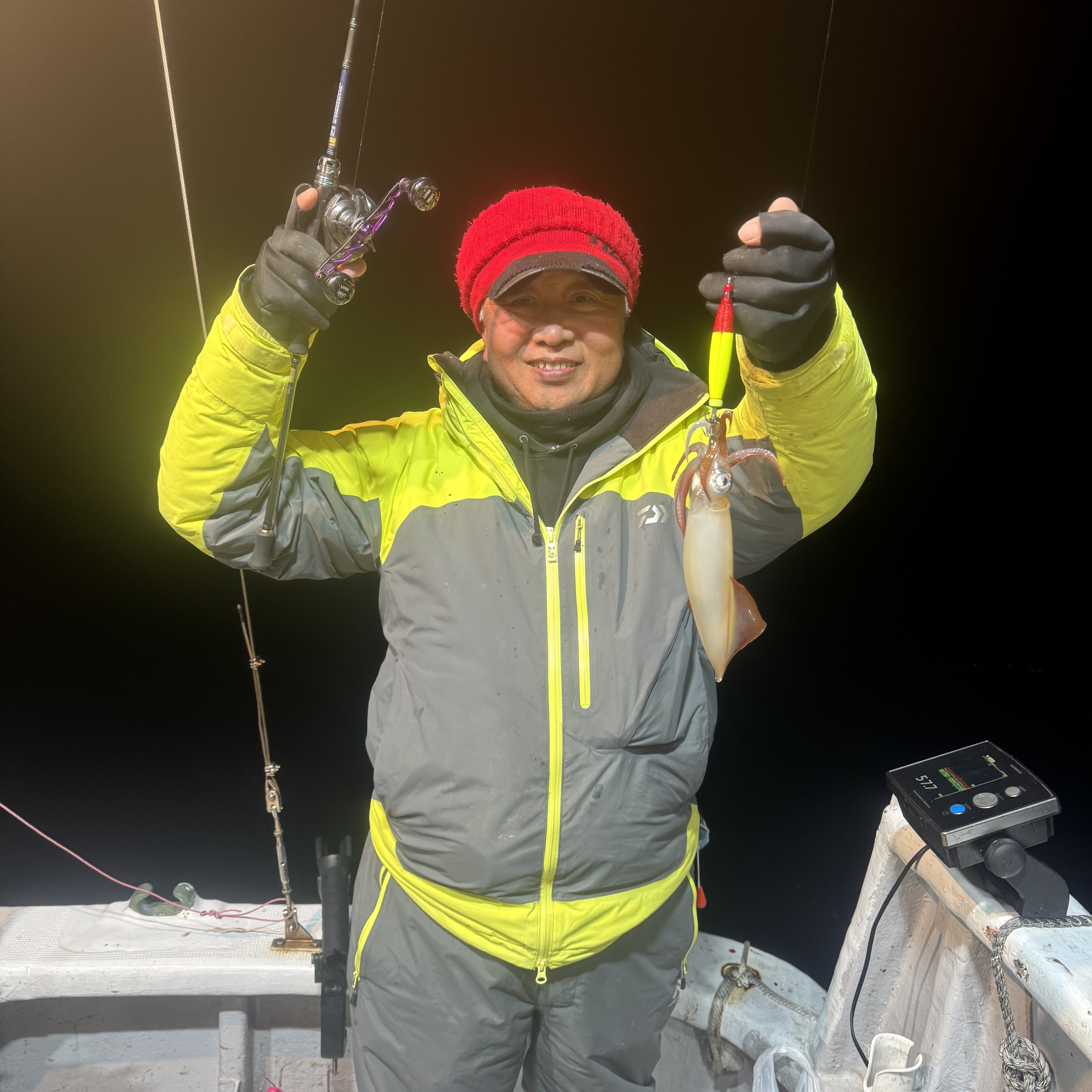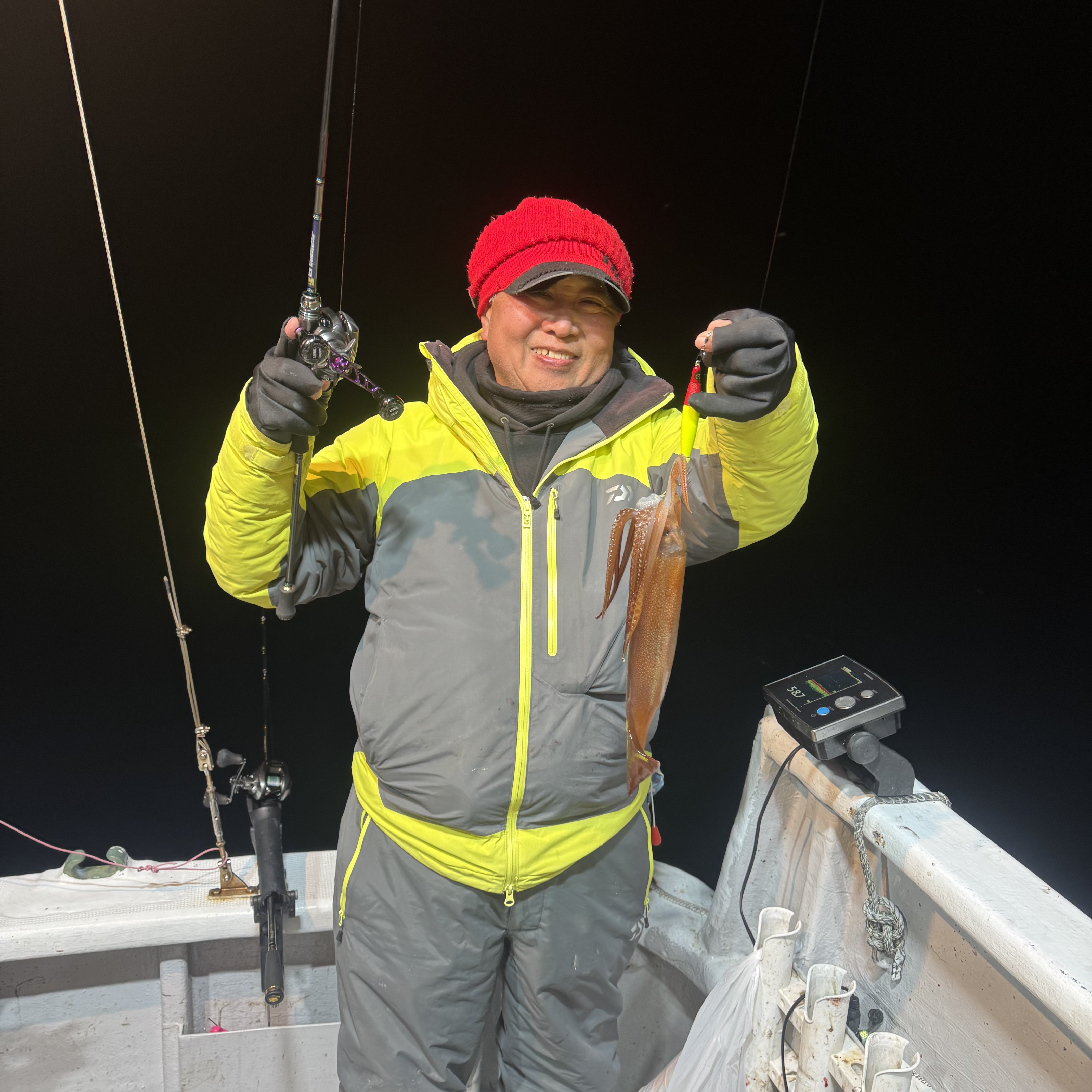 前半はケンサキイカ、ヤリイカがポツポツでしたが、中盤からベイトが固まりスルメイカの活性MAX😁
