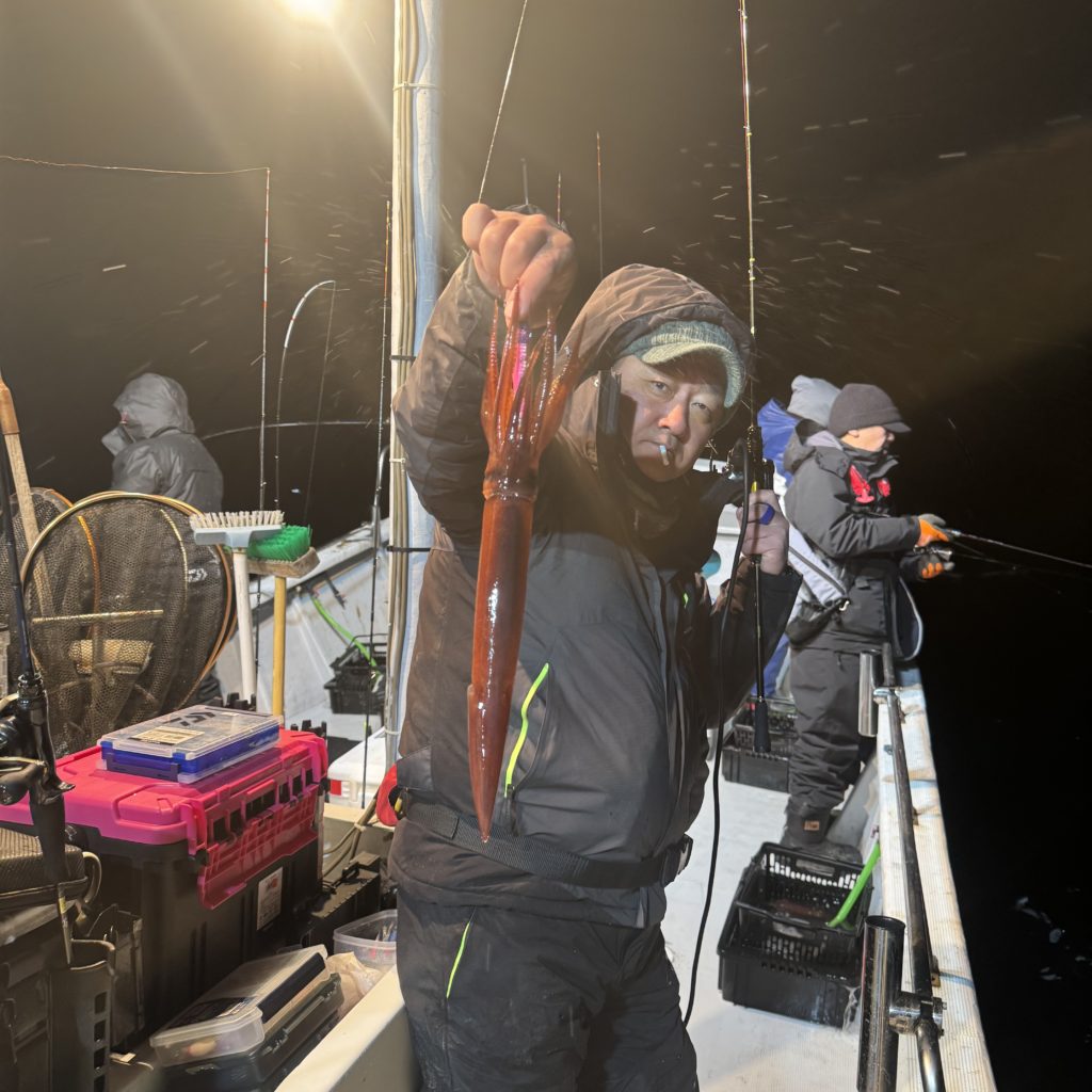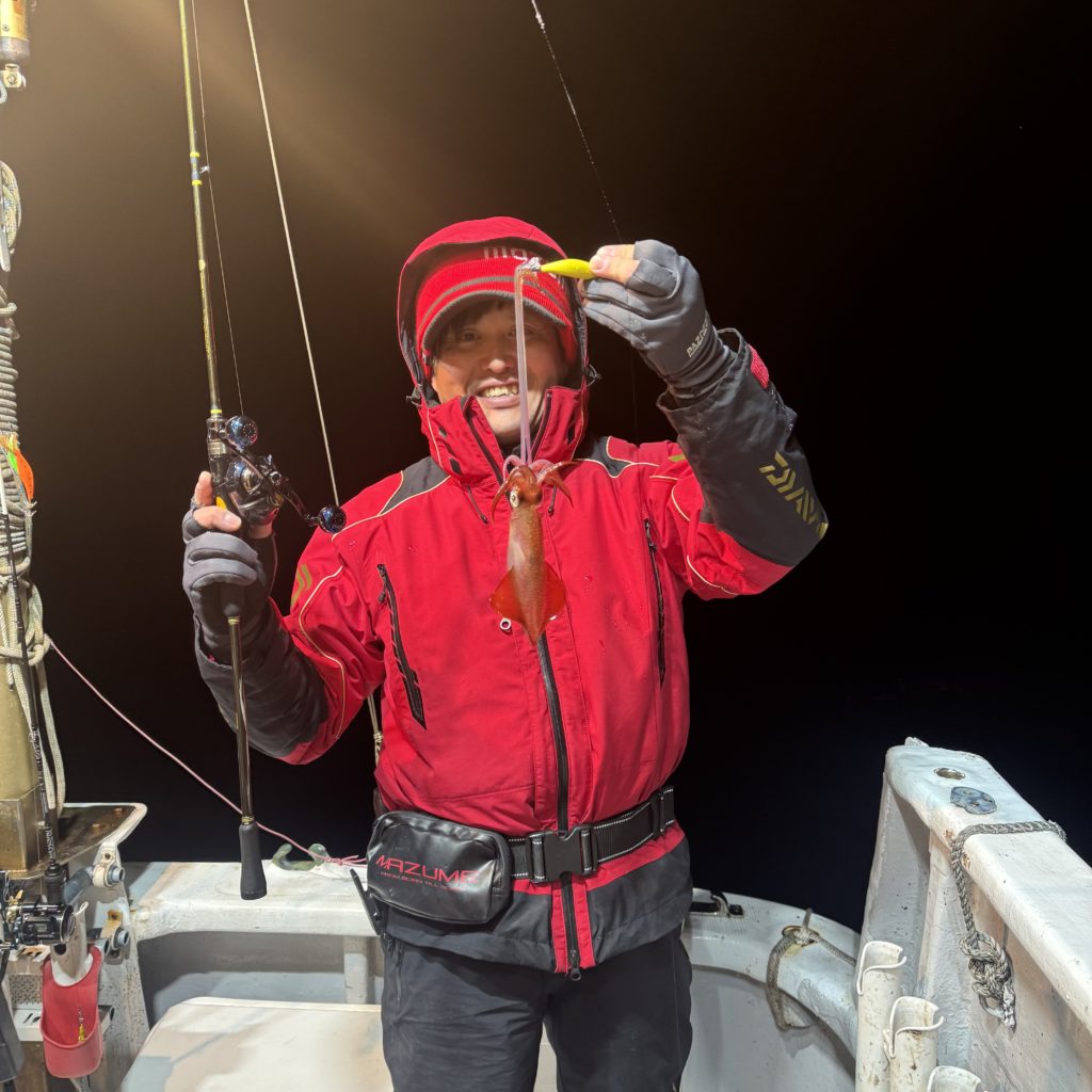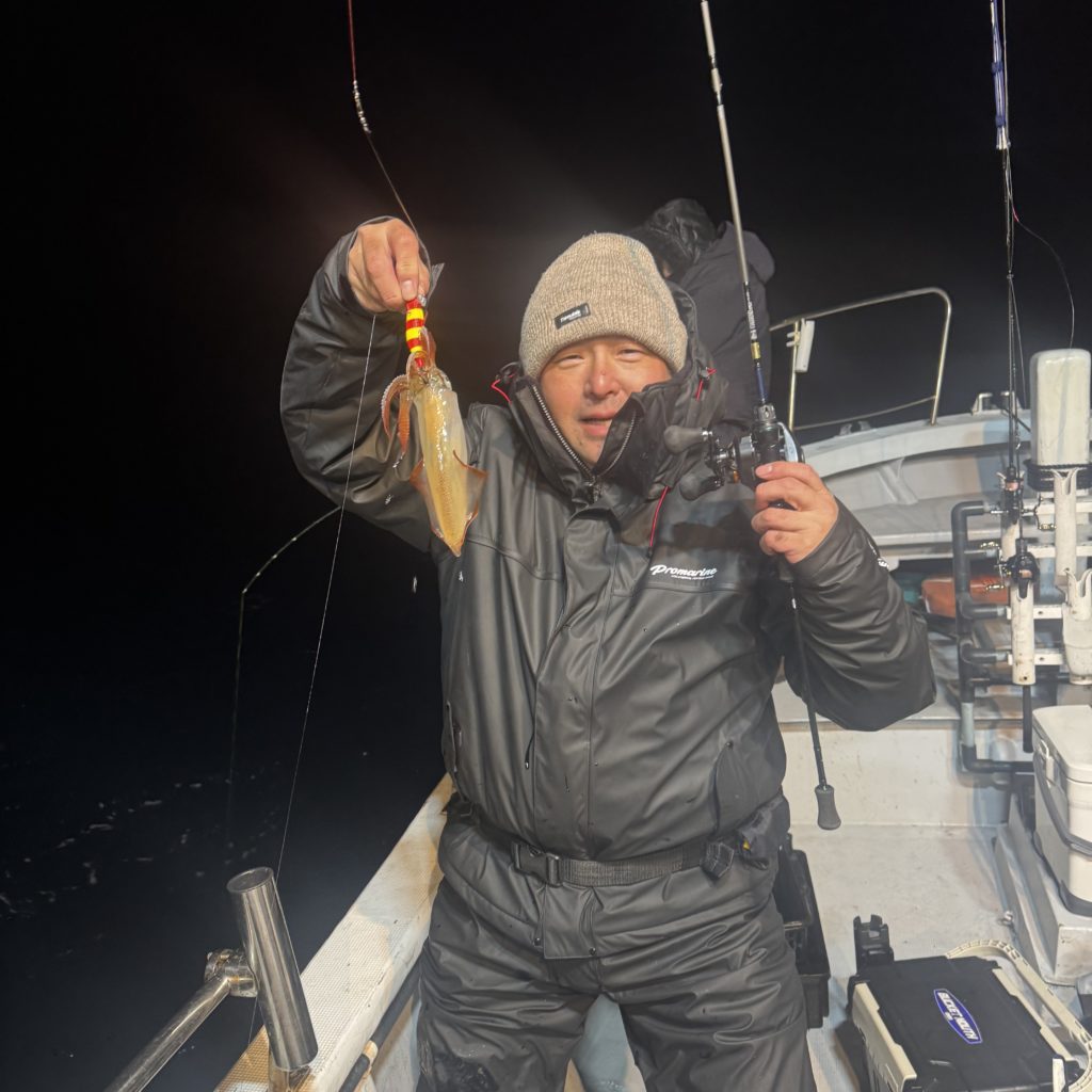 集魚灯を点けてしばらくすると、ケンサキイカから始まりヤリイカもポツポツヒット 🦑