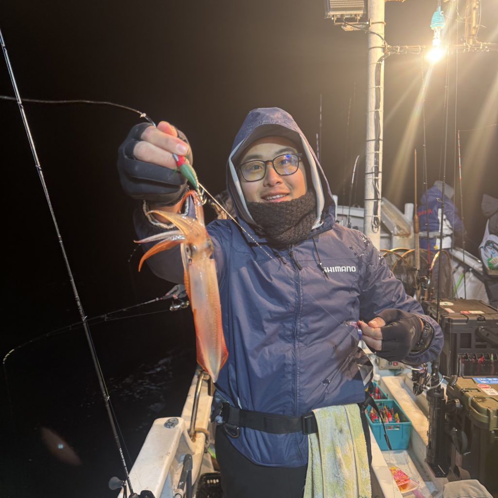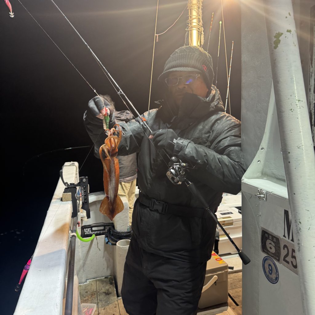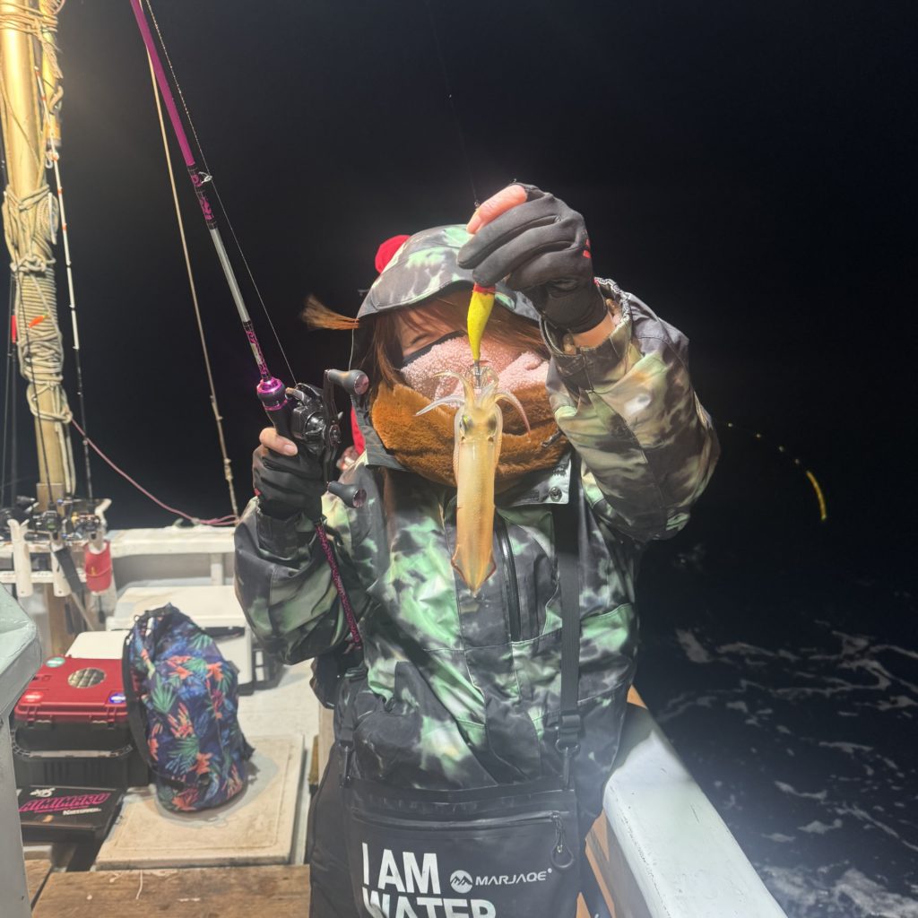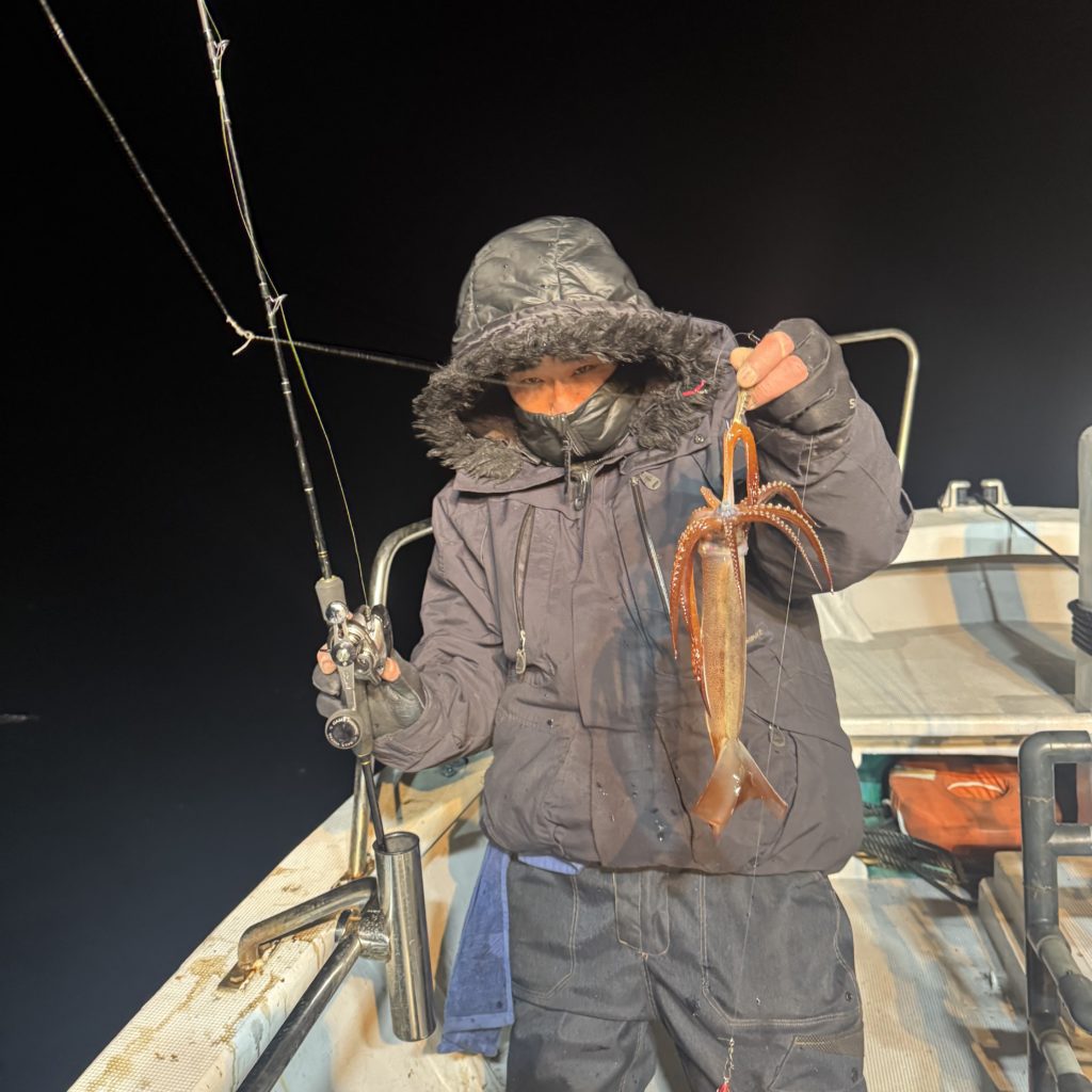 集魚灯を点けてしばらくすると、ケンサキイカから始まりヤリイカもポツポツヒット 🦑