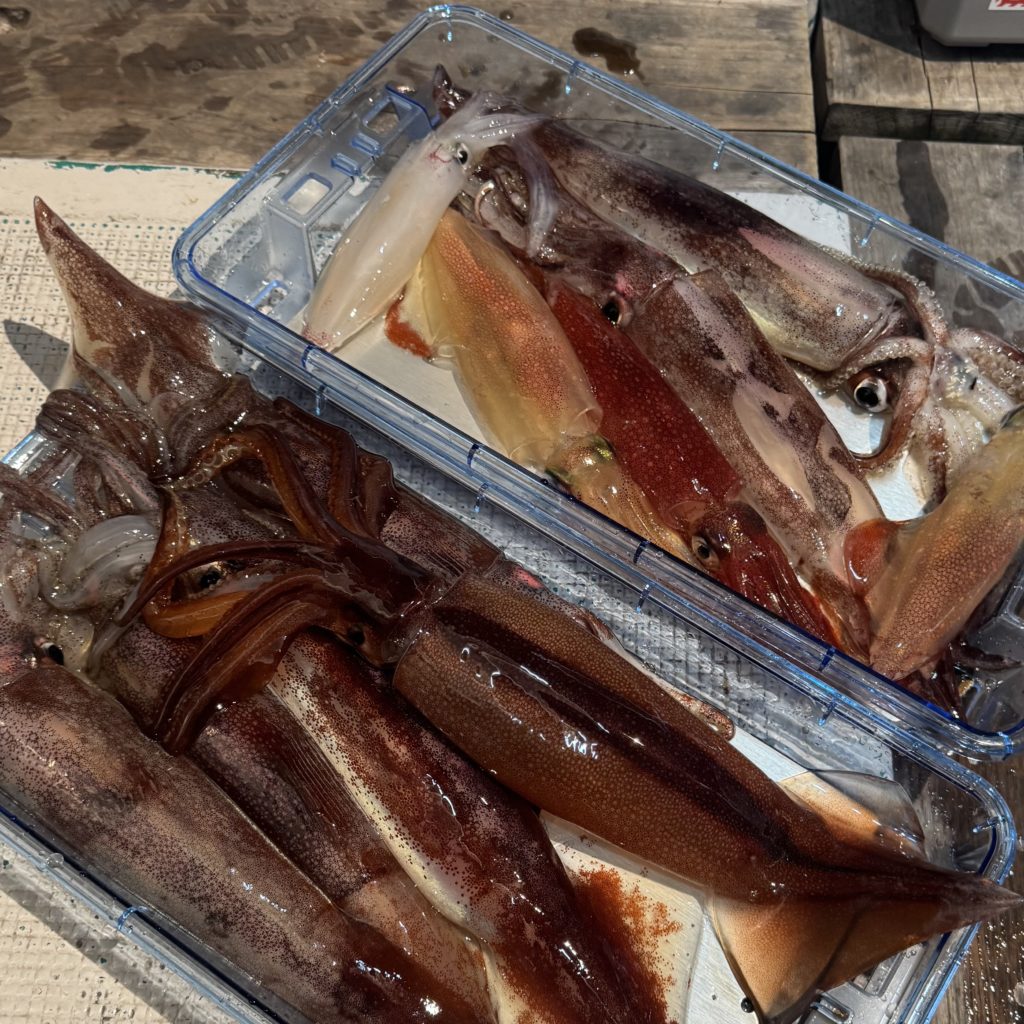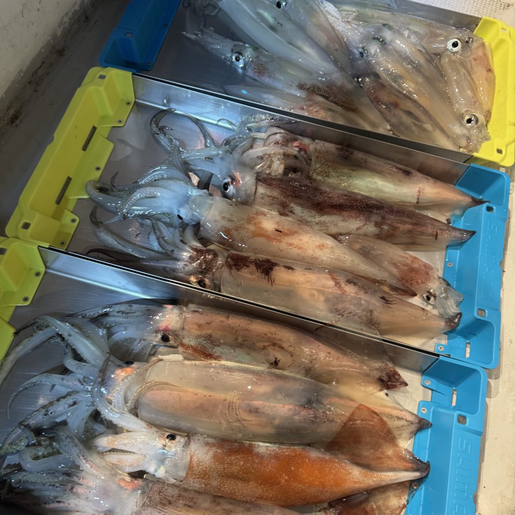 ヤリイカもサイズ良く、パラソル混りで数を伸ばしていただきました🎶