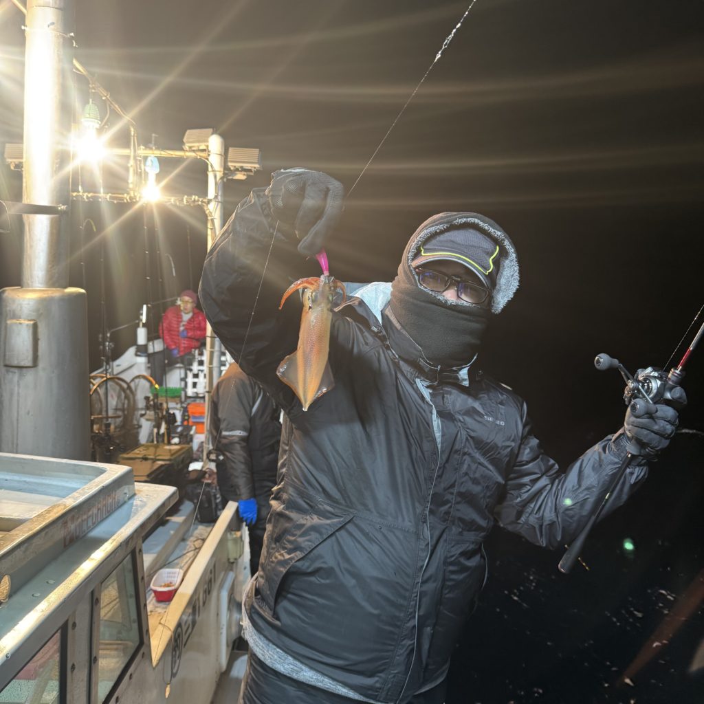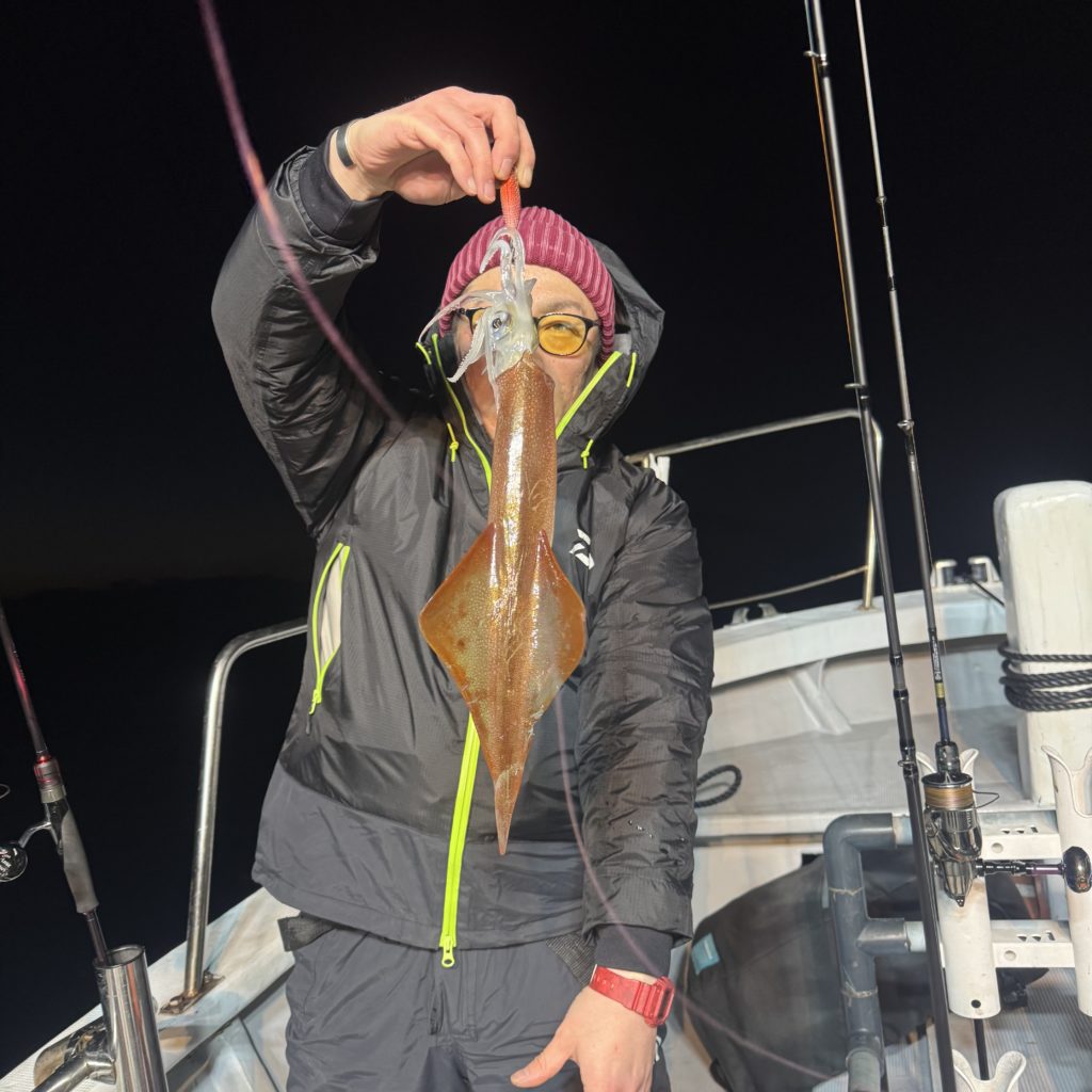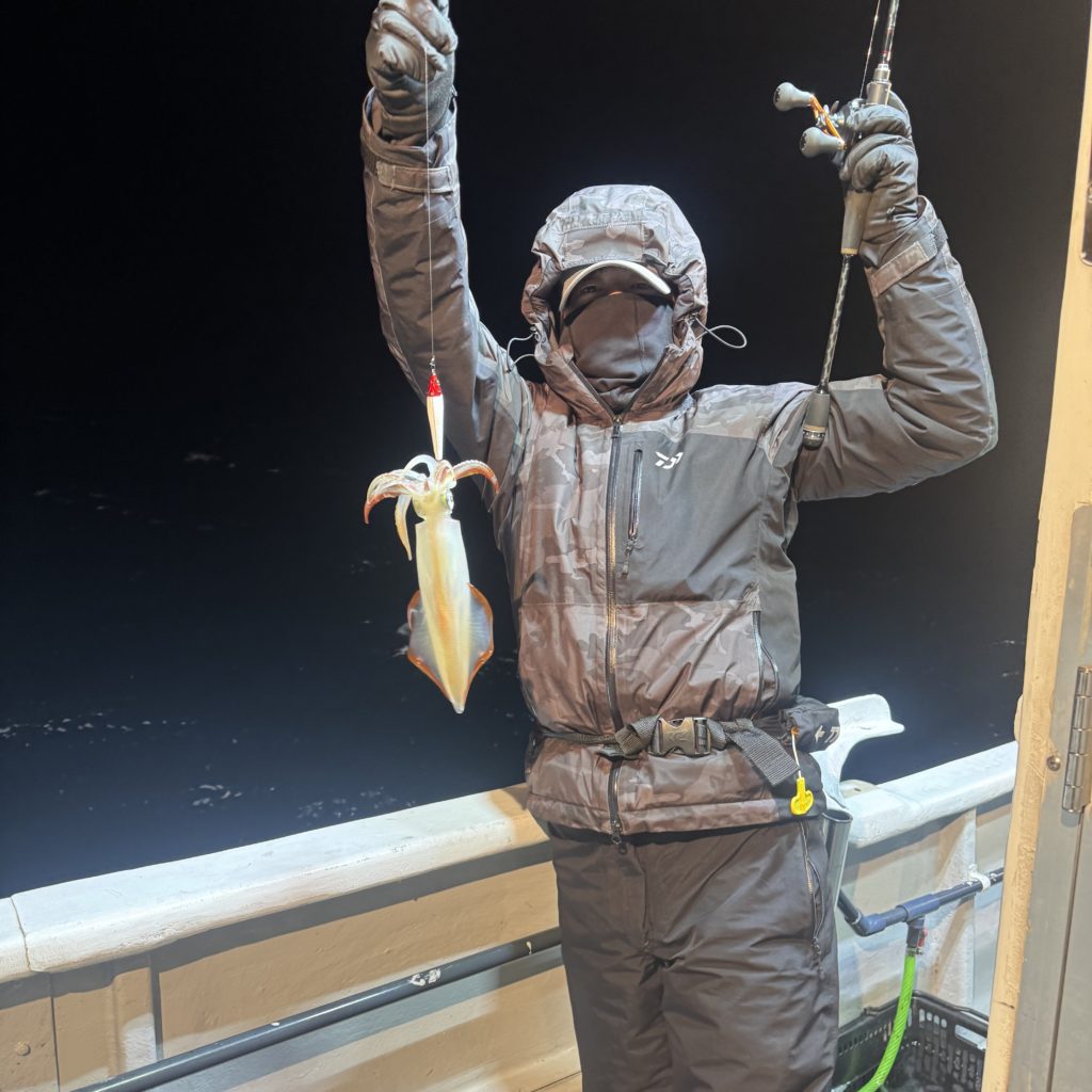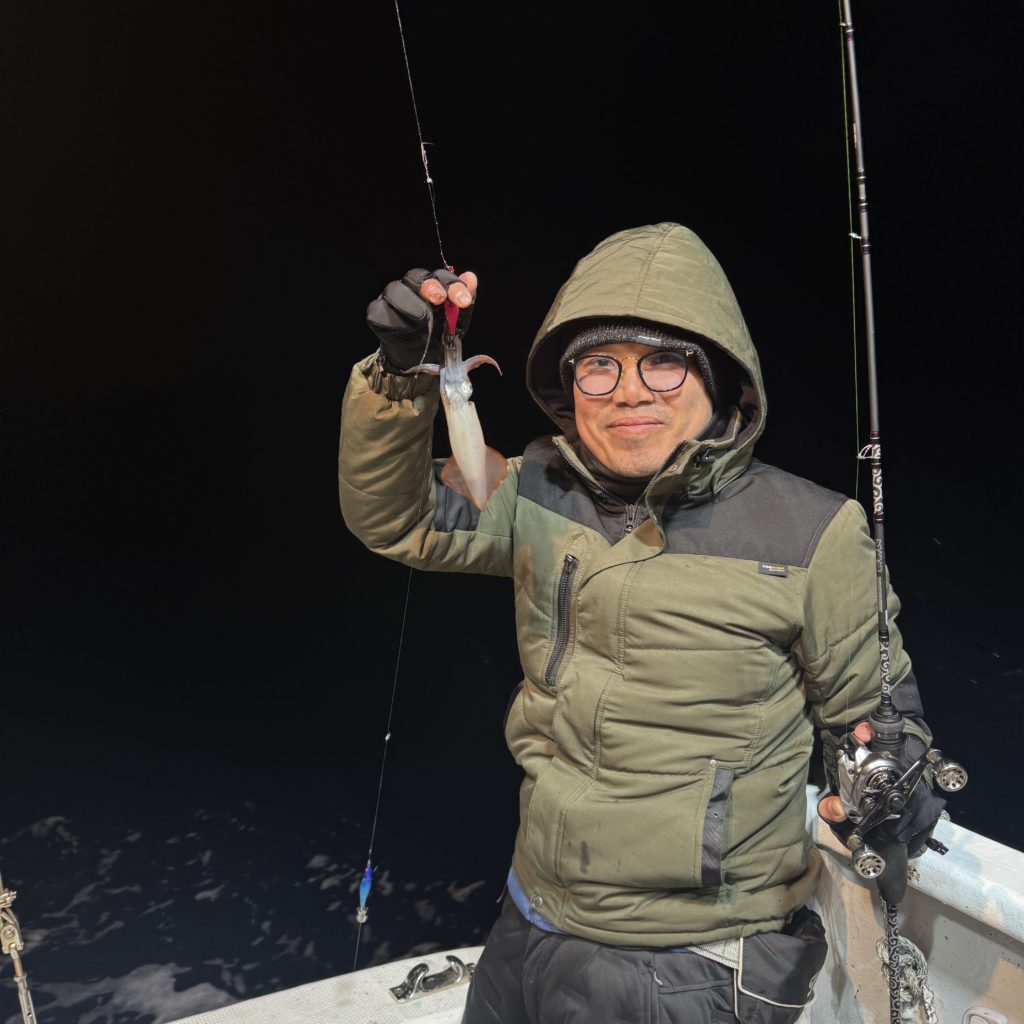 風が強く釣り状況でしたが、何とか前半からケンサキイカ、ヤリイカがポツリ、ポツリ…