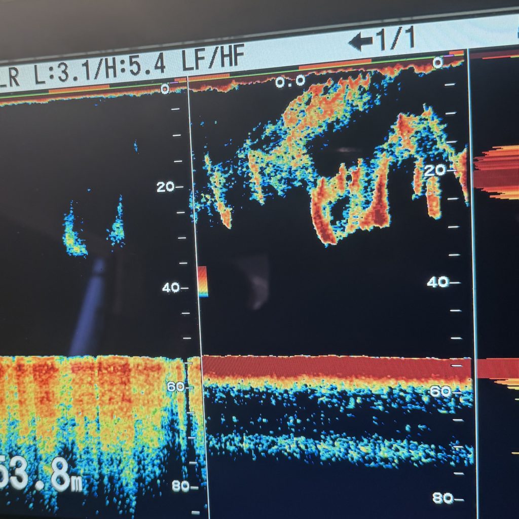 ベイト反応はよく入ってくるのですがなかなかベイト反応には付いてなく、ほとんどがボトム付近でのヒットでした🦑
