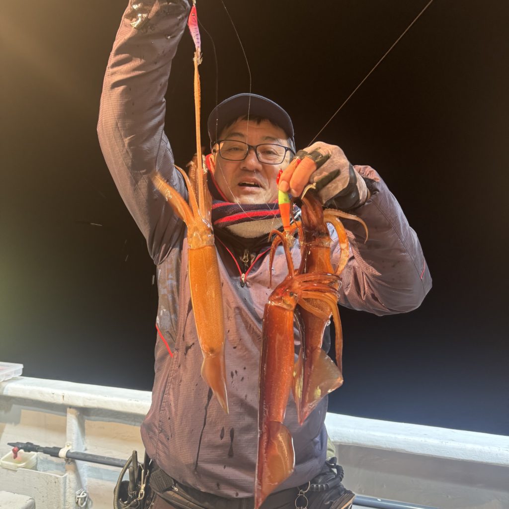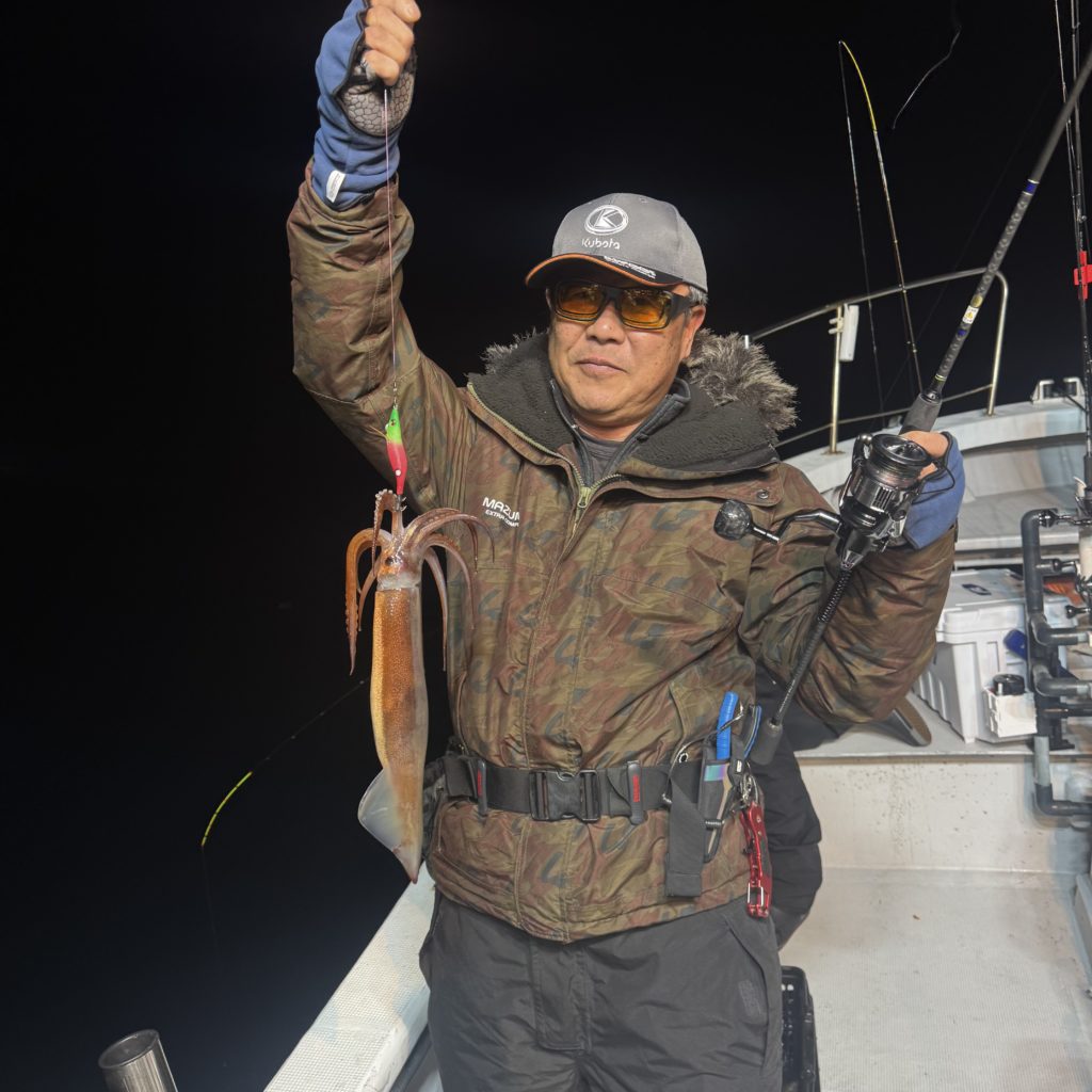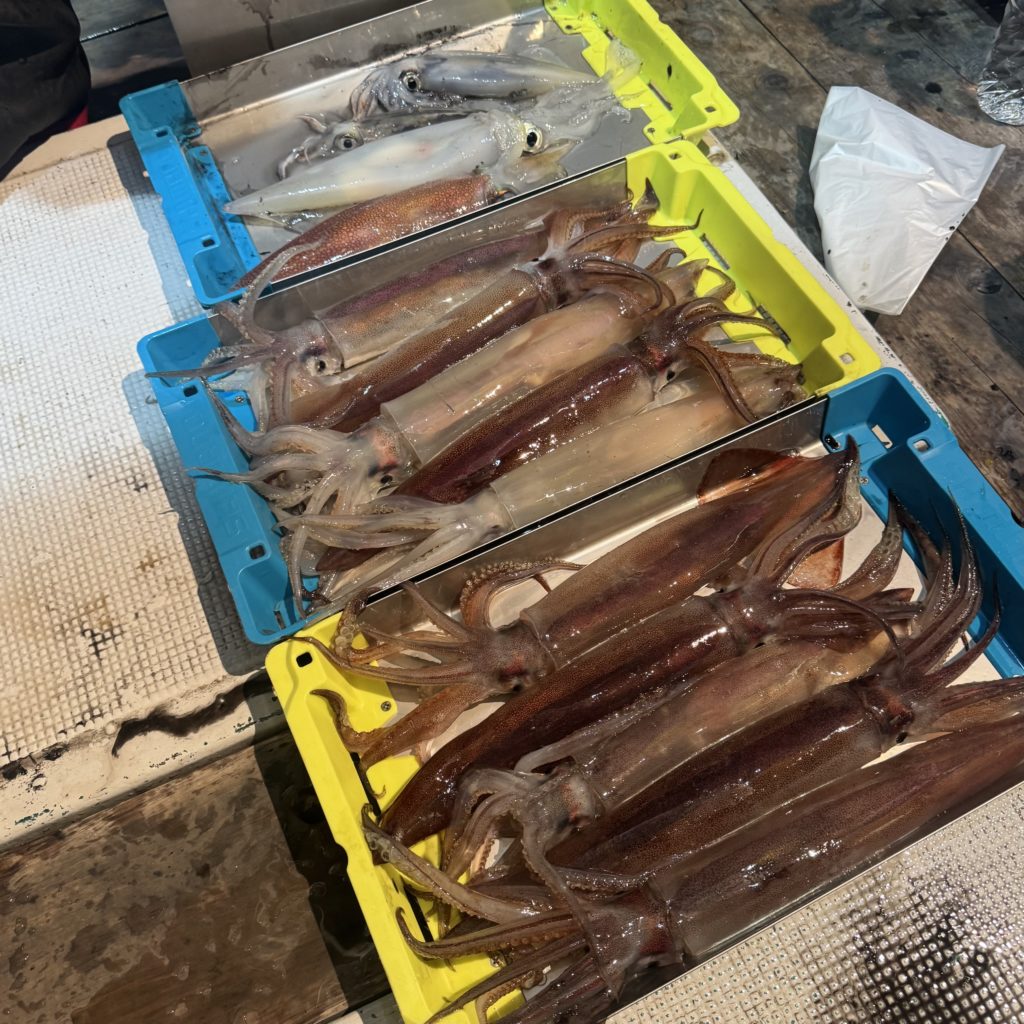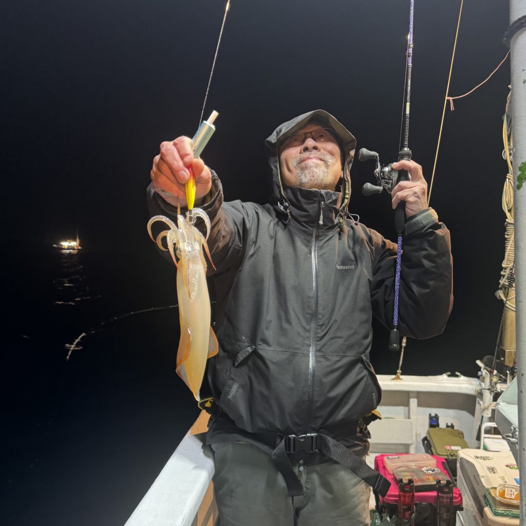 集魚灯が効き出すとスルメイカもポツポツとヒットし、中盤は少し厳しい時間帯もありましたが、後半に浅棚でスルメイカのプチラッシュ突入!