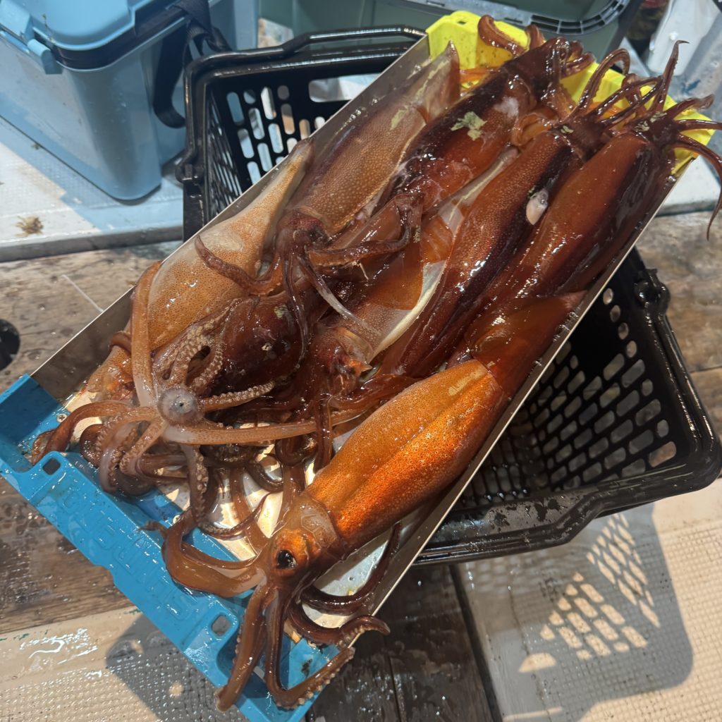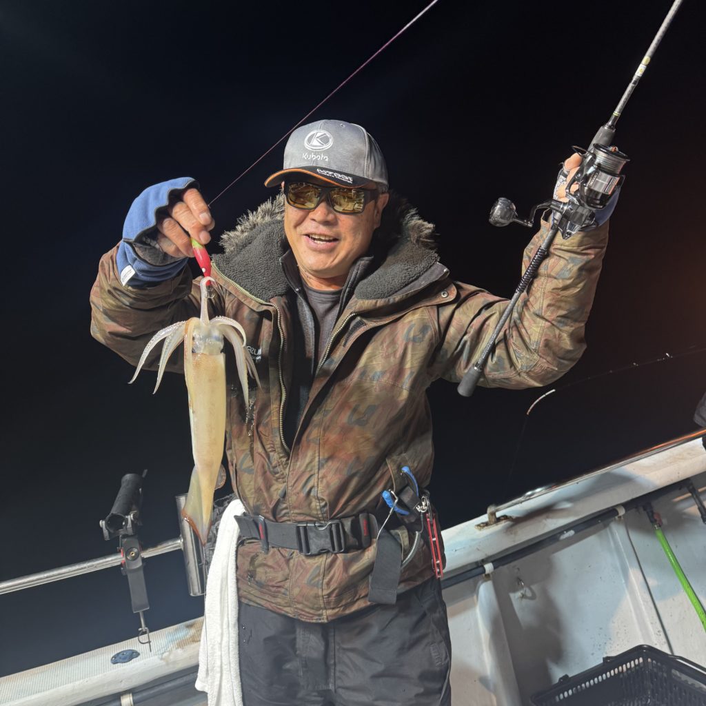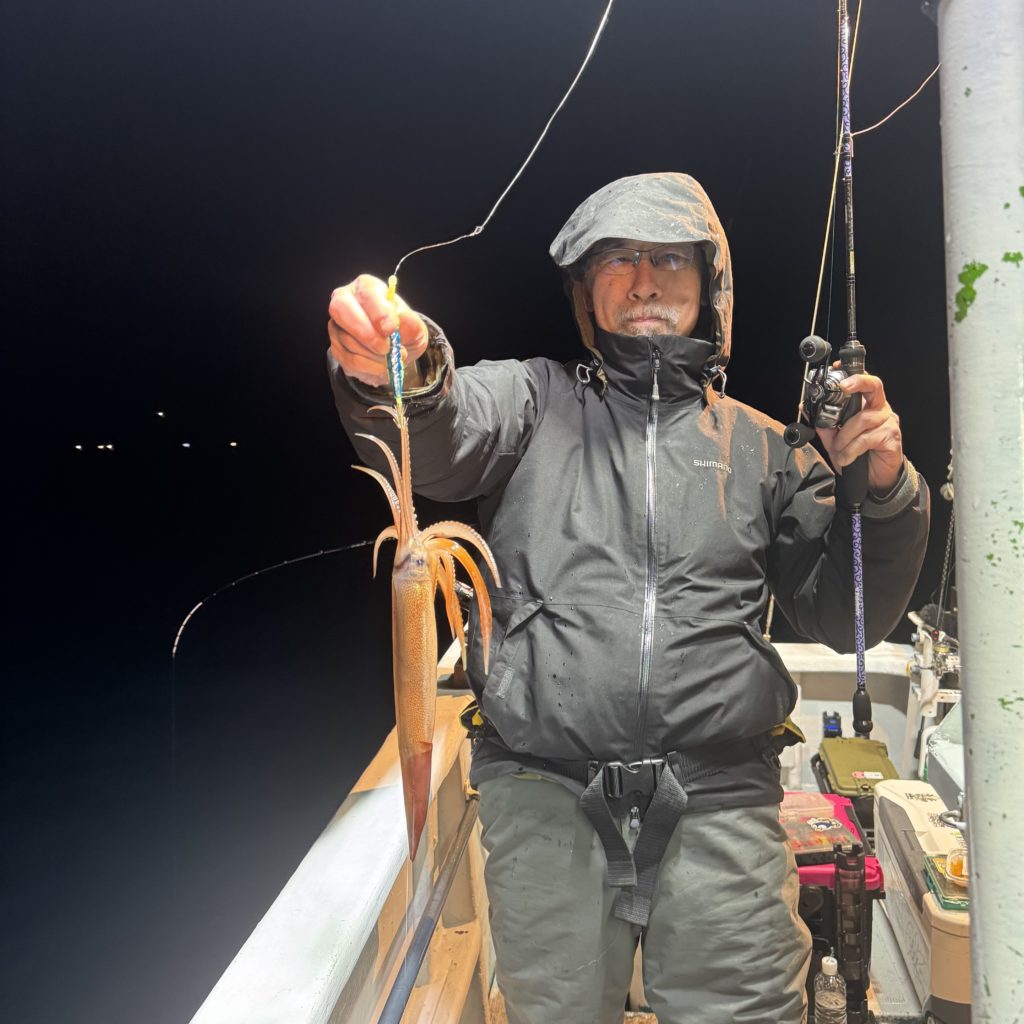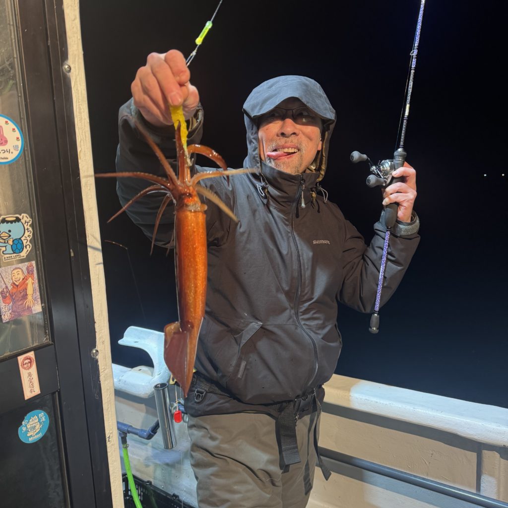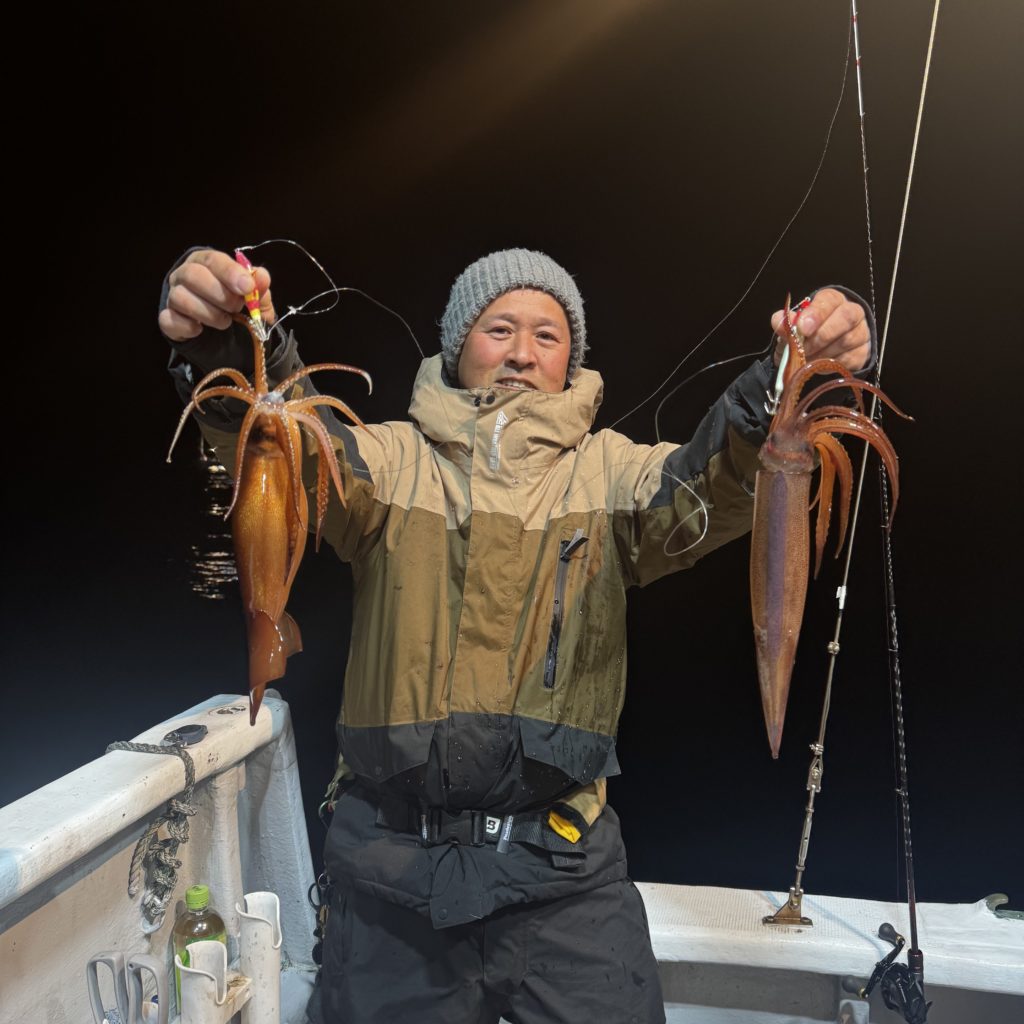 集魚灯が効き出すとスルメイカもポツポツとヒットし、中盤は少し厳しい時間帯もありましたが、後半に浅棚でスルメイカのプチラッシュ突入!