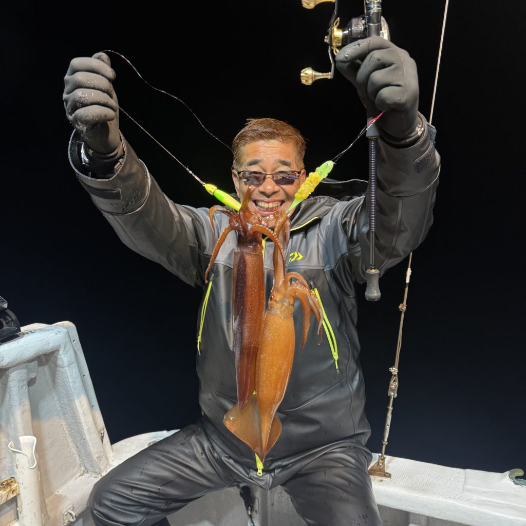 スルメイカを狙っていたお客様は20〜30mで連発しましたが地合いの様な活性は無く、それでも皆さん最後まで頑張っていただきました🙌