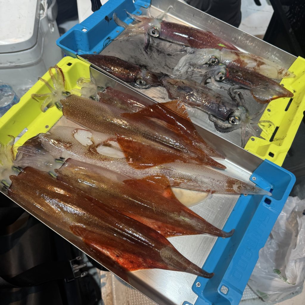ボトムを狙ってもらうと良型のヤリイカ、ケンサキイカが飽きない程度にあたってくれました🦑🎶