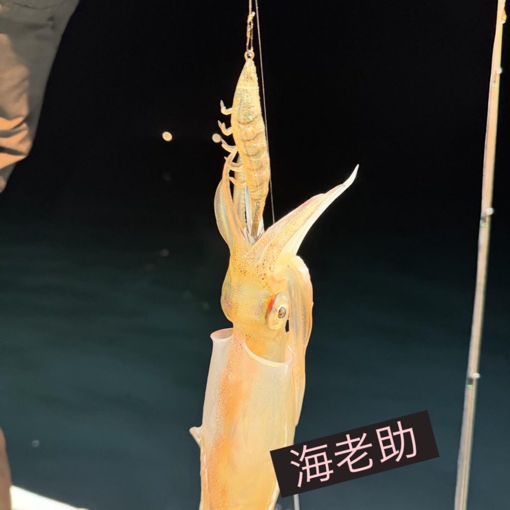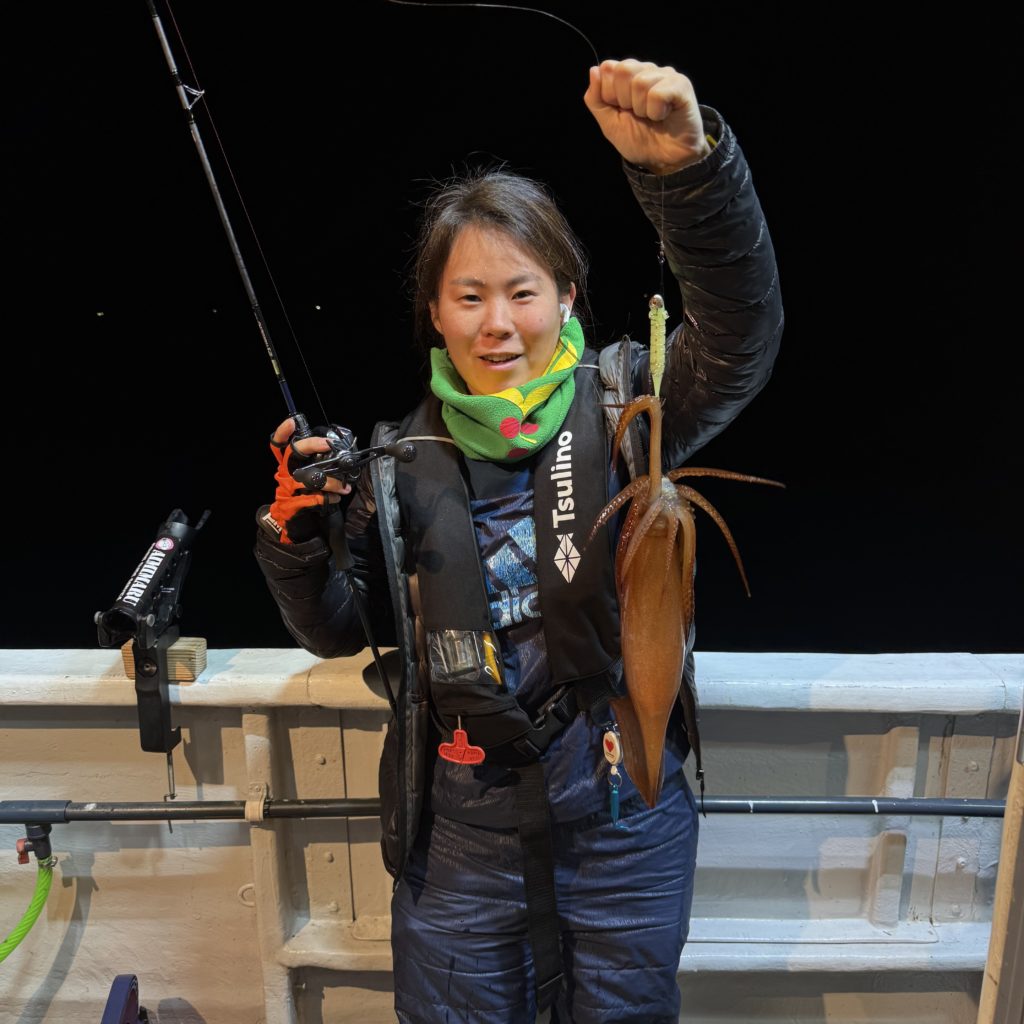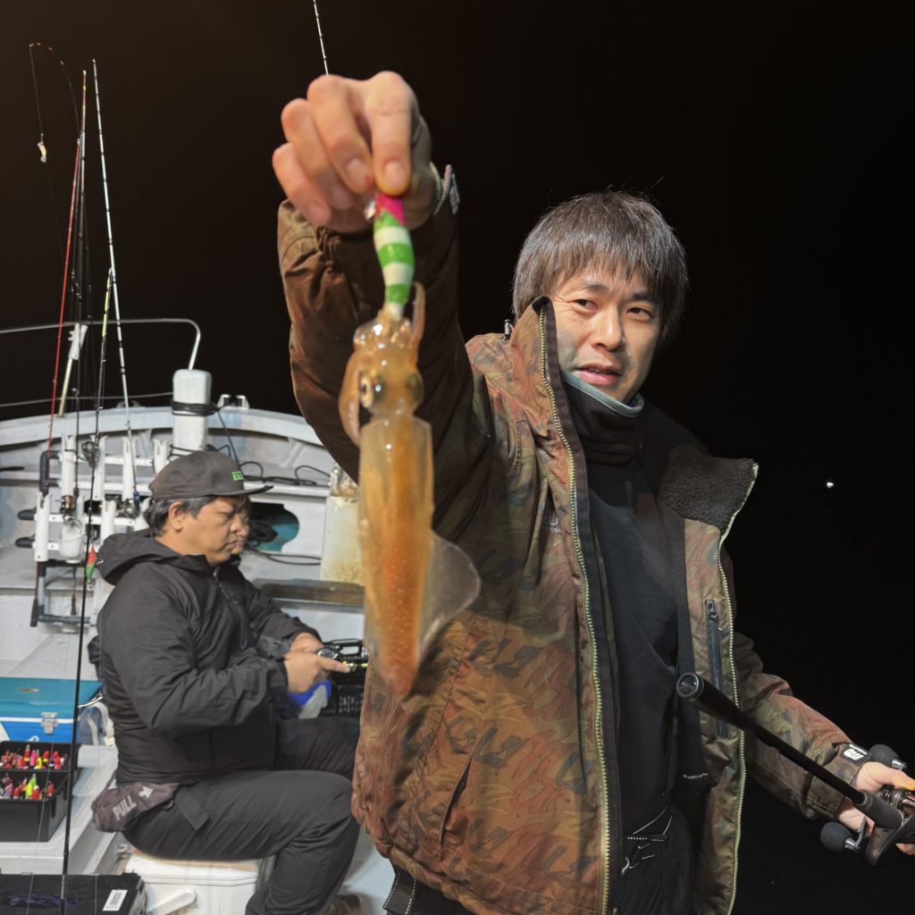 前半はベイト反応も少なく、中盤にようやくベイトが固まり出したタイミングでスルメイカがヒット!