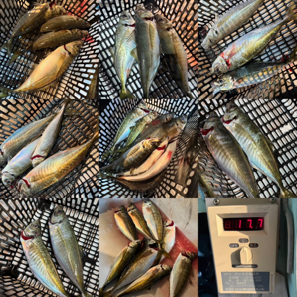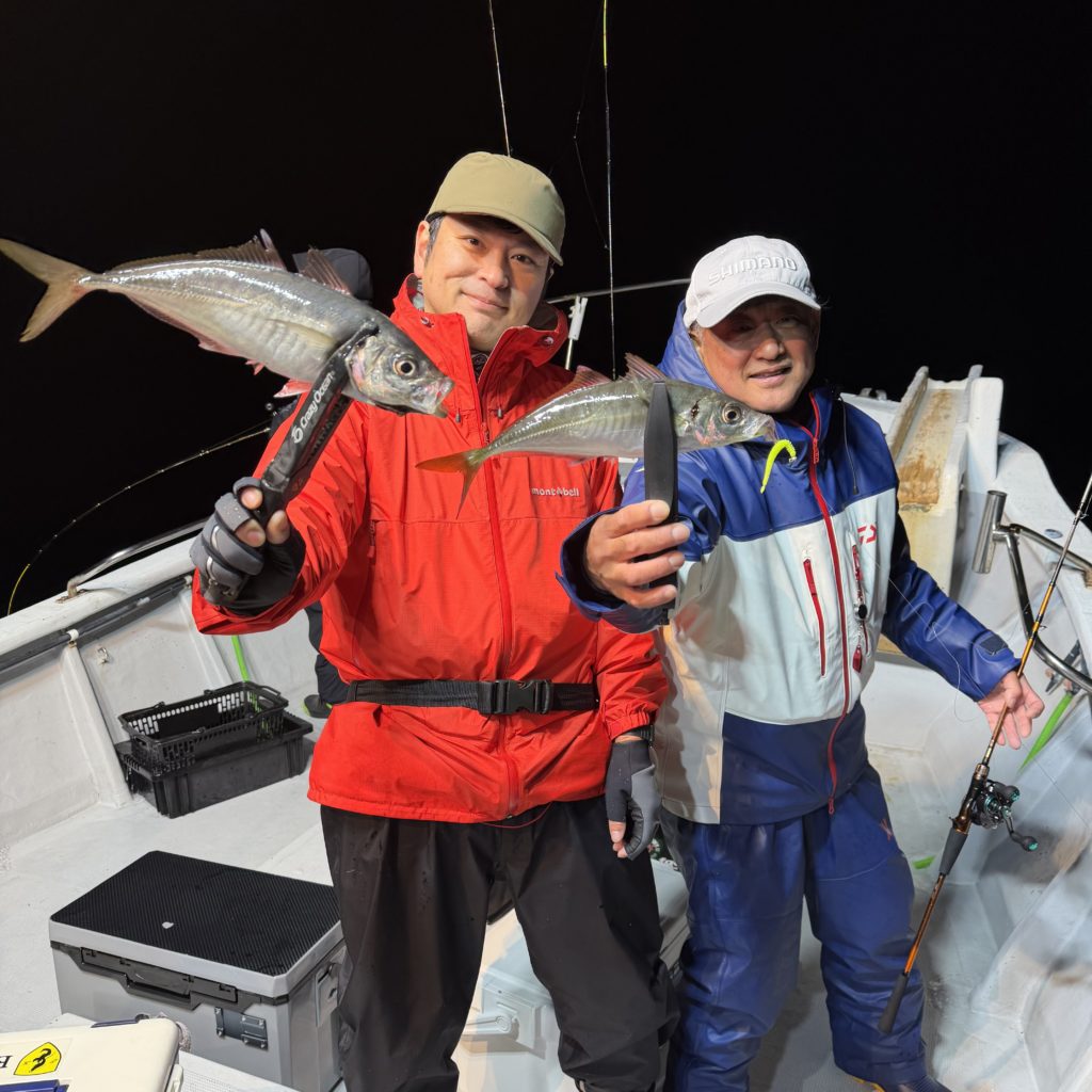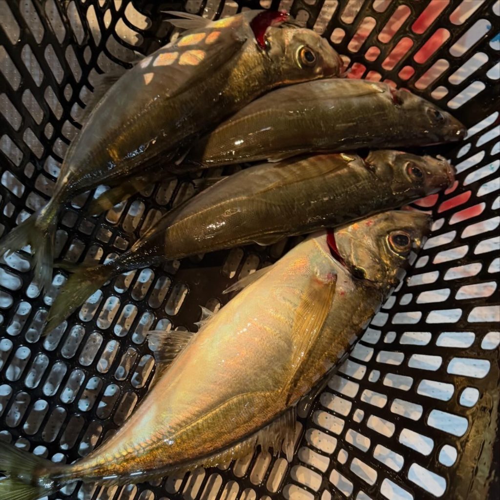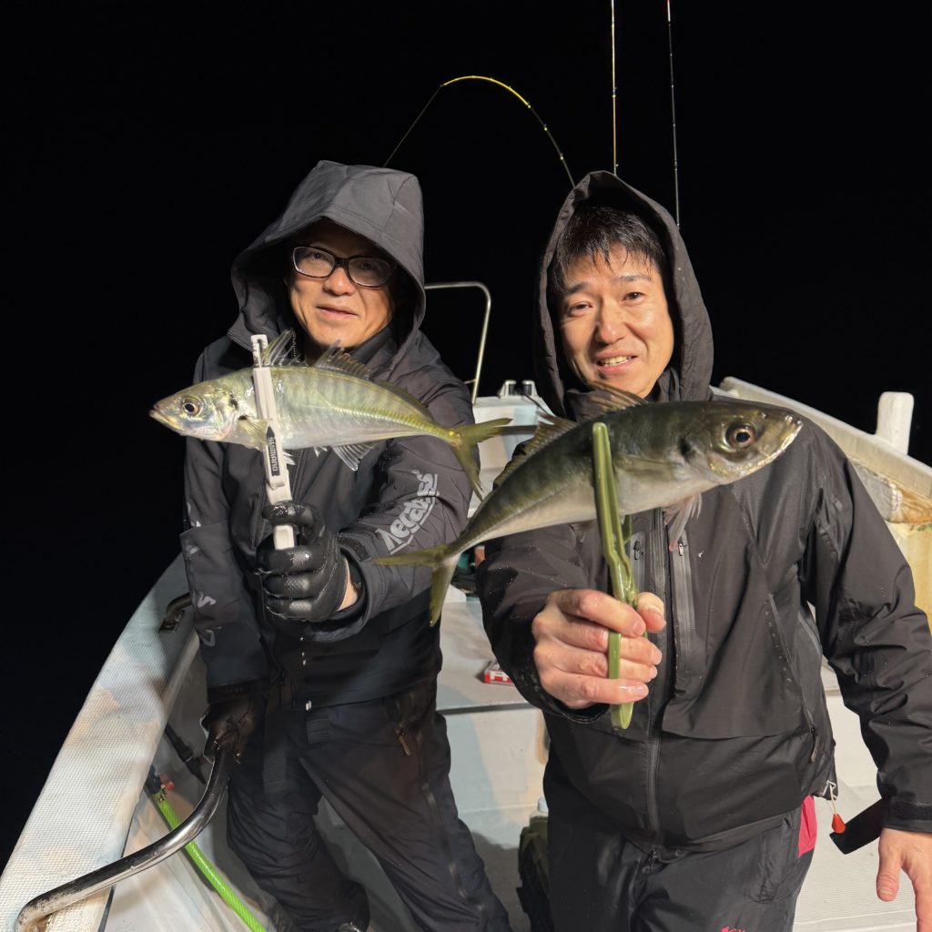早い時間帯からボトム付近にアジの反応が入りだすとパタパタとヒットしますが、反応が抜けるとまた沈黙時間😑 アタれば良型混じり🐟🎵